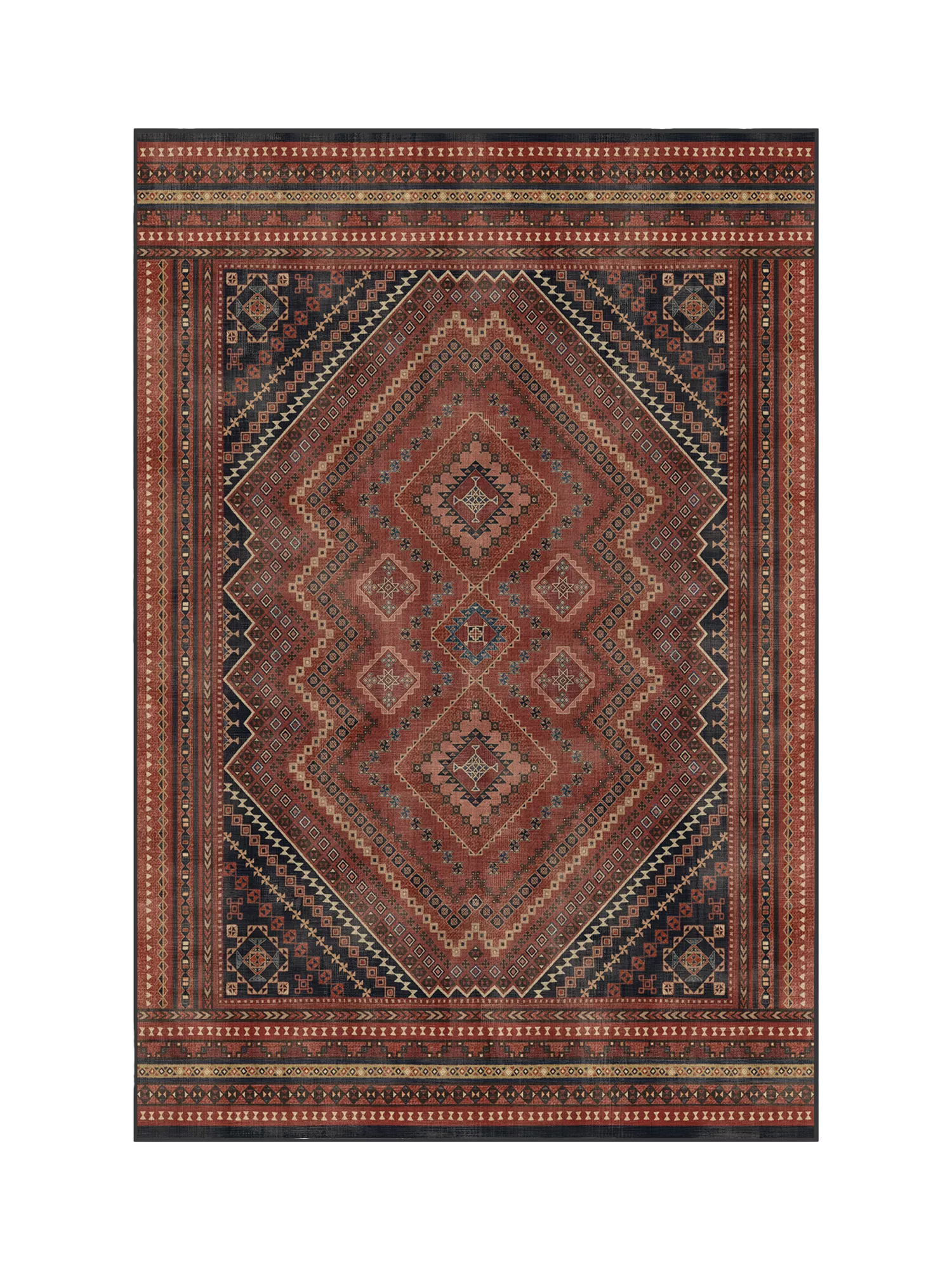 Geometric meets traditional. This Kaden rug features a central diamond medallion surrounded by repeating shapes. Water-resistant, stain-resistant, and machine-washable. Colours may vary slightly according to your device and the lighting in your space.