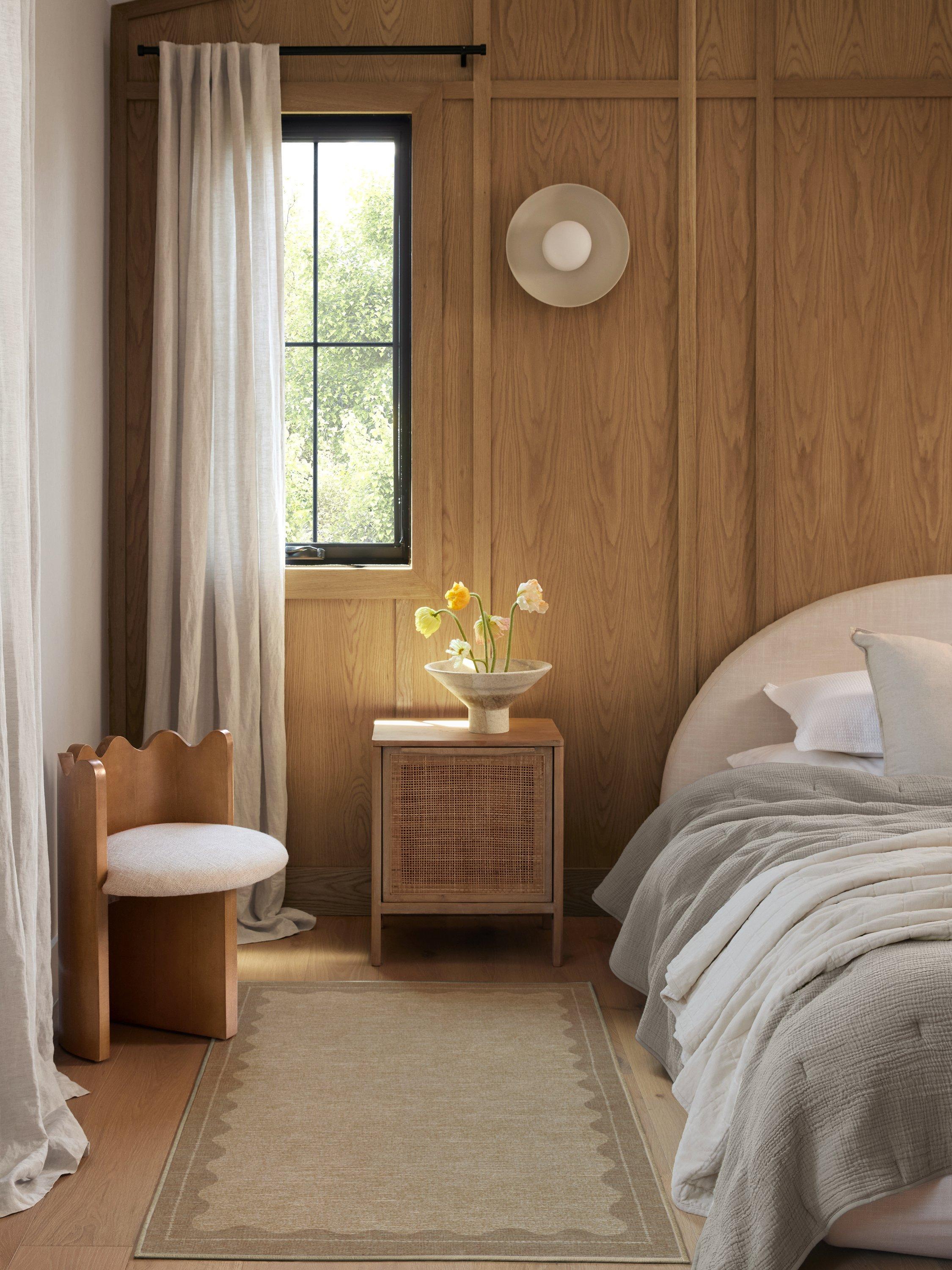 Less is more. The Orla Rug features a whimsical scallop frame complemented by a contrast background to create a design reminiscent of a hand-knotted configuration. Water-resistant, stain-resistant, and machine-washable. Colours may vary slightly according to your device and the lighting in your space.