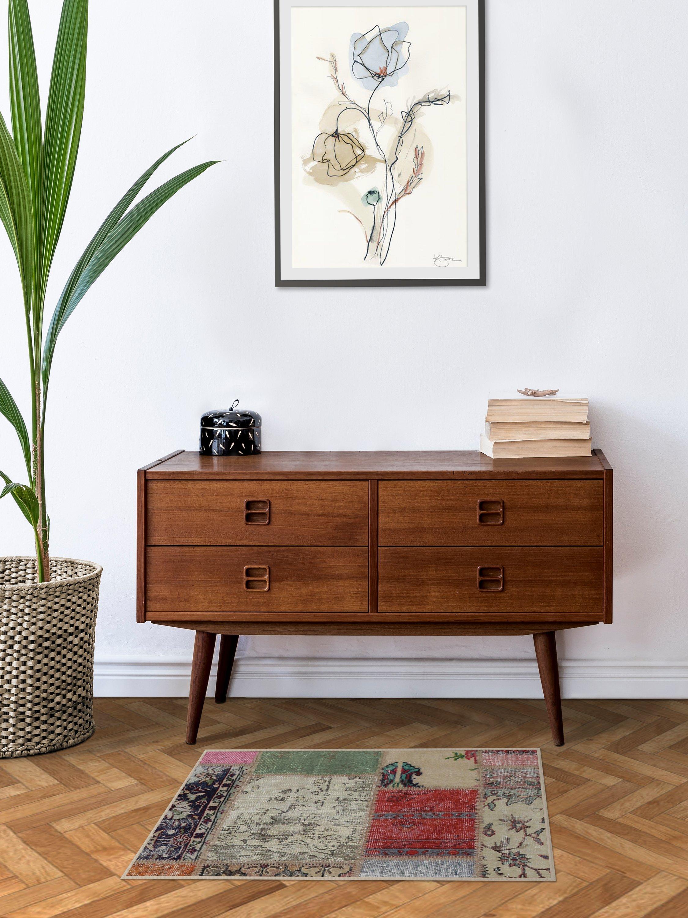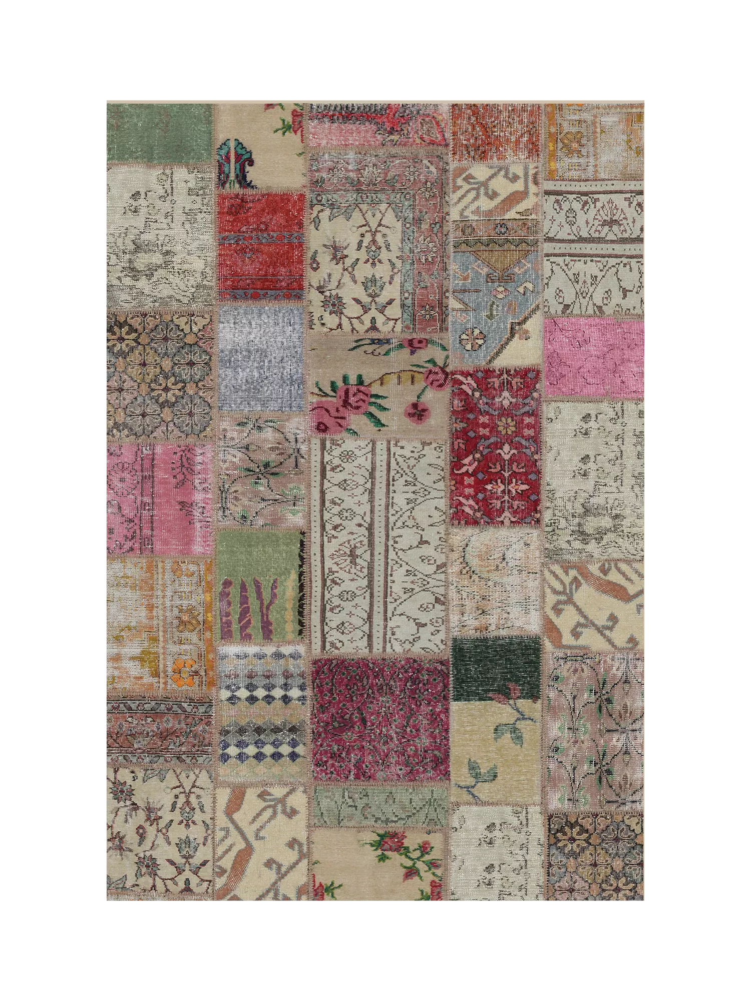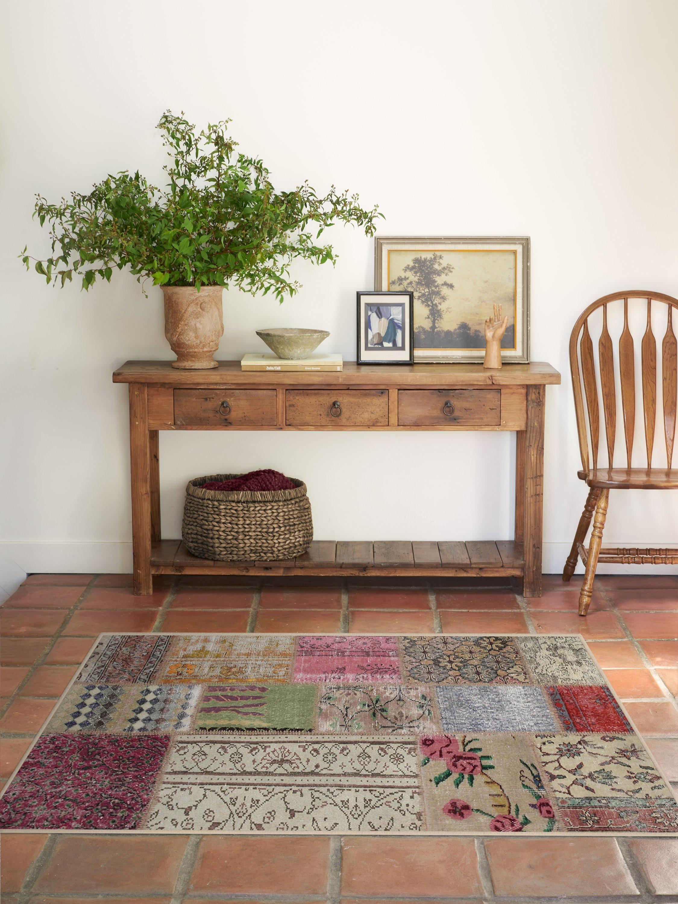 The beautiful Patchwork Boho Rug is a one-of-a-kind design that will instantly add character to any space in your home. Its mixed-floral patchwork motif includes an array of rich and vibrant hues. This head-turning piece will add drama to any modern, bohemian, or shabby chic interior.