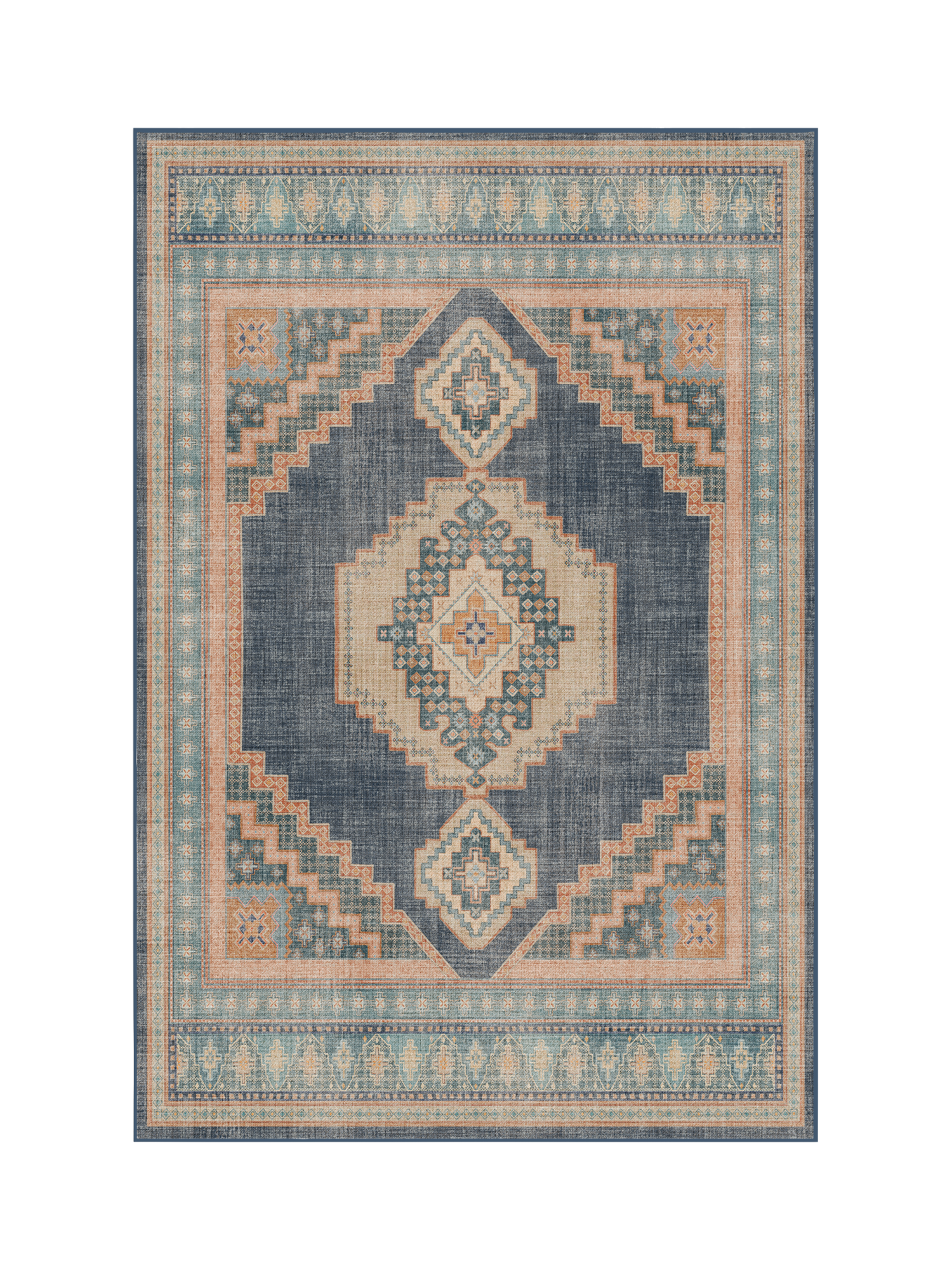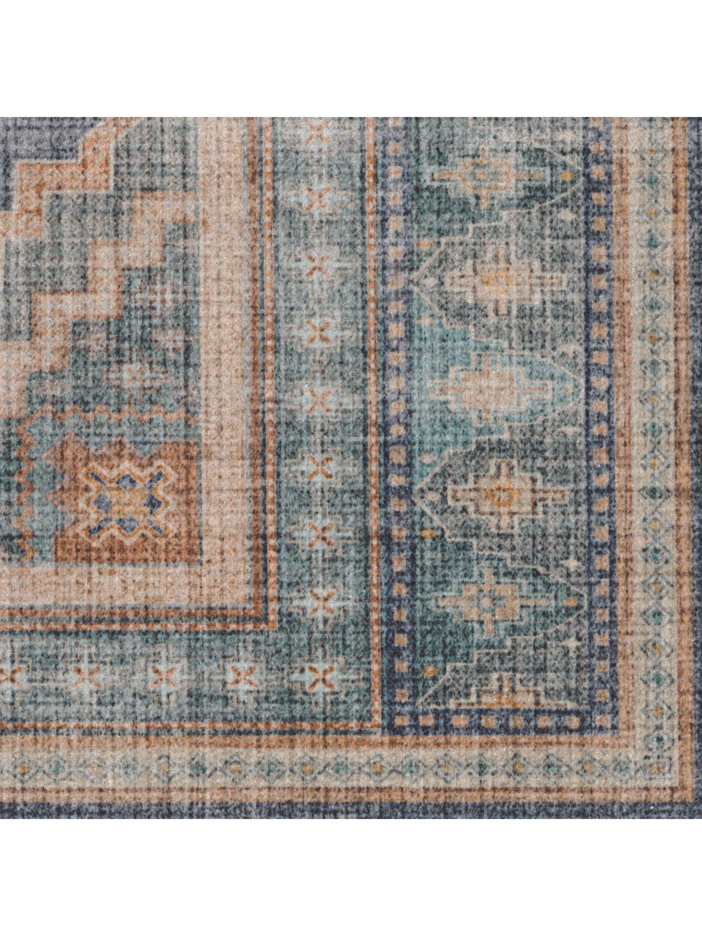Elevate your favourite space with the distressed Rayne Rug. Inspired by intricate artistry, this globally-inspired design features an ornate border and medallions. Water-resistant, stain-resistant, and machine-washable. Colours may vary slightly according to your device and the lighting in your space.