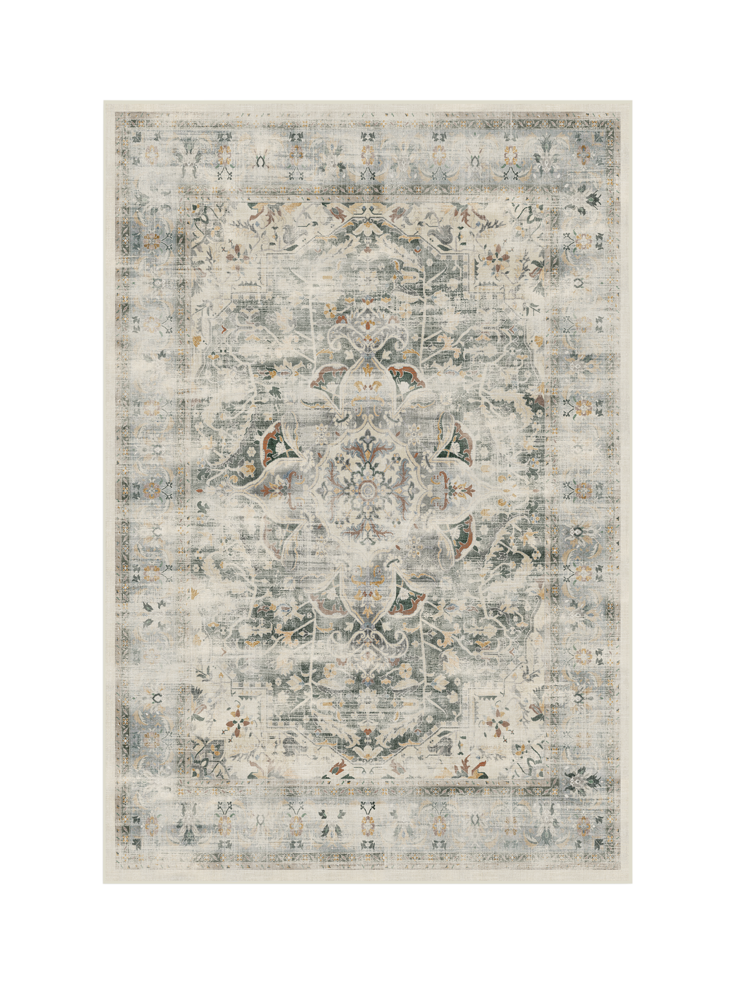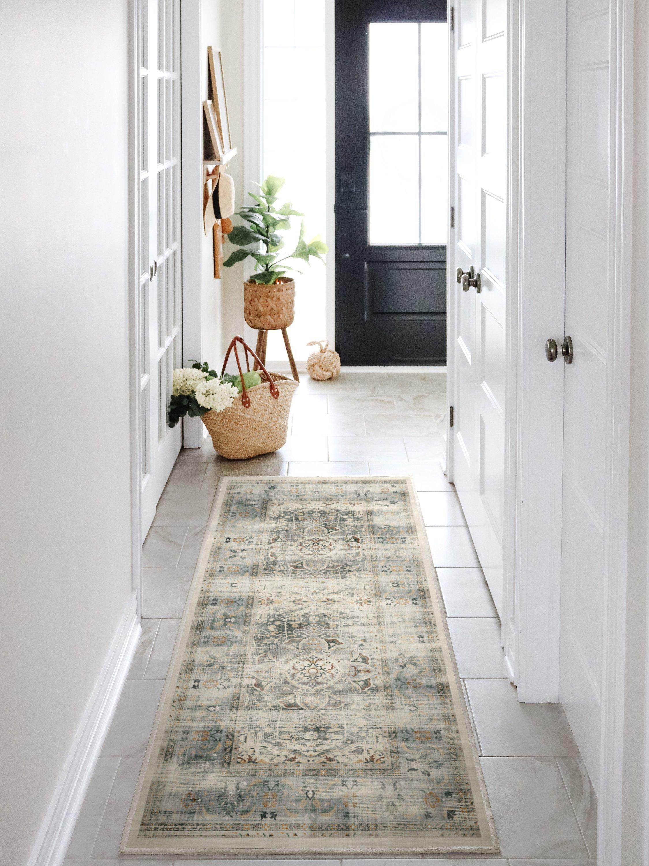 Vintage with a touch of chic. Warm and rustic, beautiful shades blend together in this rug to create a richly distressed design featuring a floral medallion and border. Water-resistant, stain-resistant, and machine-washable. Colours may vary slightly according to your device and the lighting in your space.