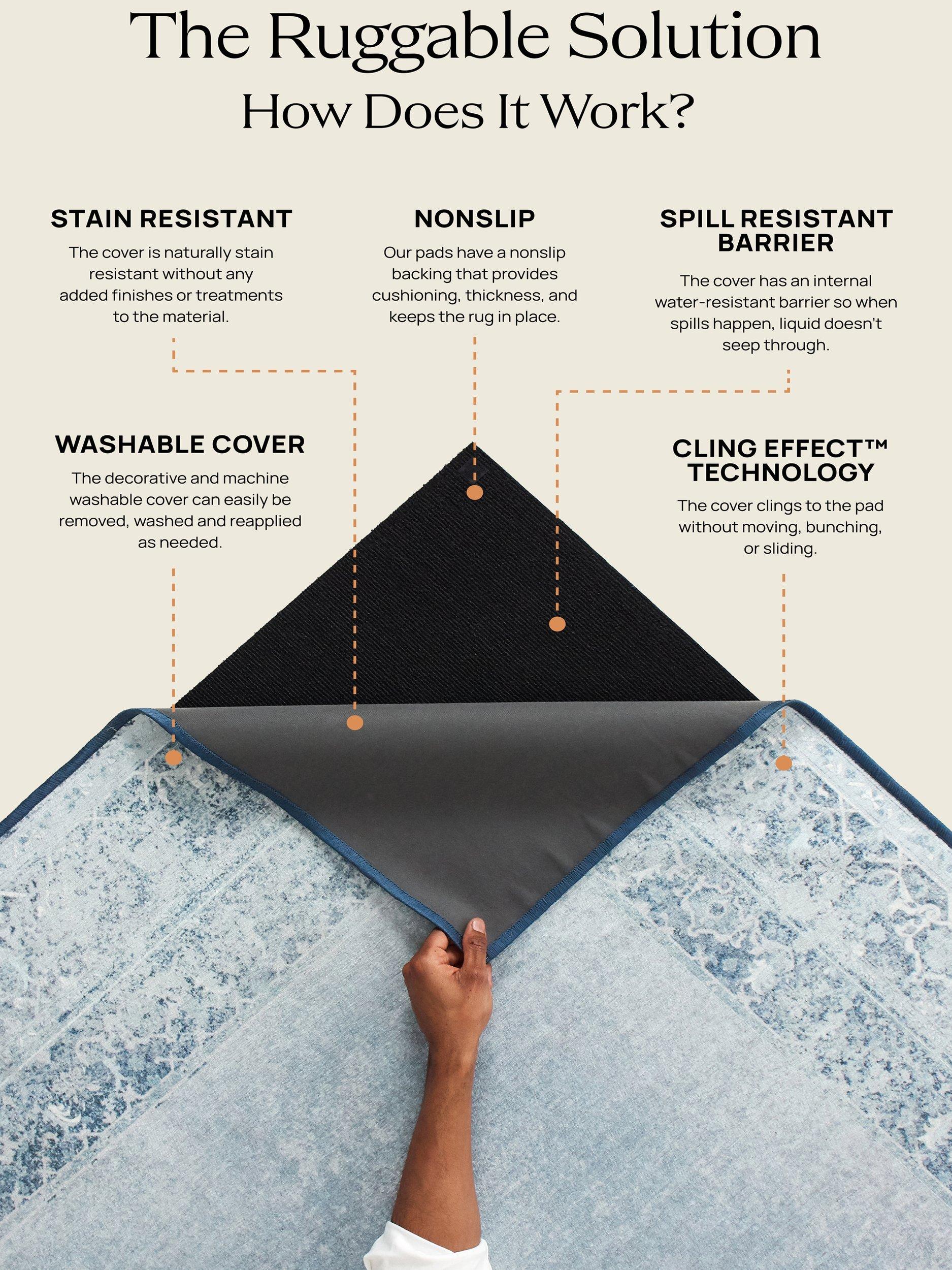 When it comes to washable rugs, Ruggable stands out from the pack. Thoughtfully designed and created to withstand whatever life throws at them: dirt, dust, spills, and even pet accidents. The rugs are fully machine washable, making it easy and affordable to keep them clean. The low-pile, flatwoven washable rugs feature a non-toxic, water-resistant barrier that shields your floors from everyday stains, spills, and unwanted odours. The rug pads feature non-slip latex-free backing to keep your rug in place. Rugs look new again after each wash and they have water-resistant protection that doesn't deteriorate after washing. The 2-piece system allows the non-slip grip to stay out of the washing machine and your rug to stay in place. Ruggable rugs are pet-friendly, kid-friendly, and life-friendly. No stress over spills, soft for tiny toes & paws, and safe & non-toxic.