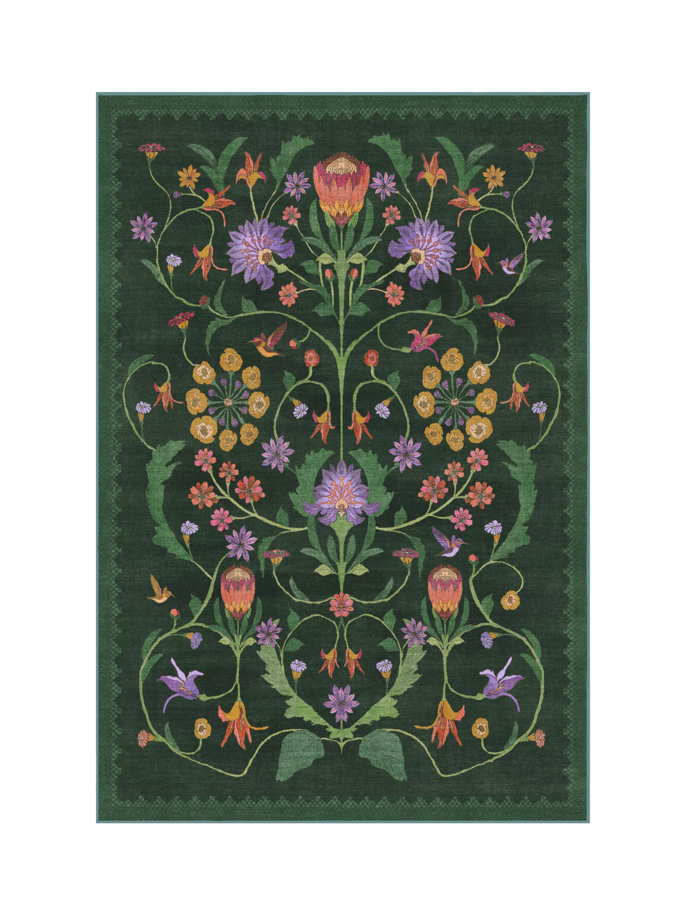 Celebrate a lasting legacy with the Iris Apfel Protea Rug. Inspired by floral fabrics from Iris' own collection, this botanical design features vivid, mirrored floral motifs that attract the sweetest hummingbirds in a garden-like setting. Water-resistant, stain-resistant, and machine-washable. Colours may vary slightly according to your device and the lighting in your space.