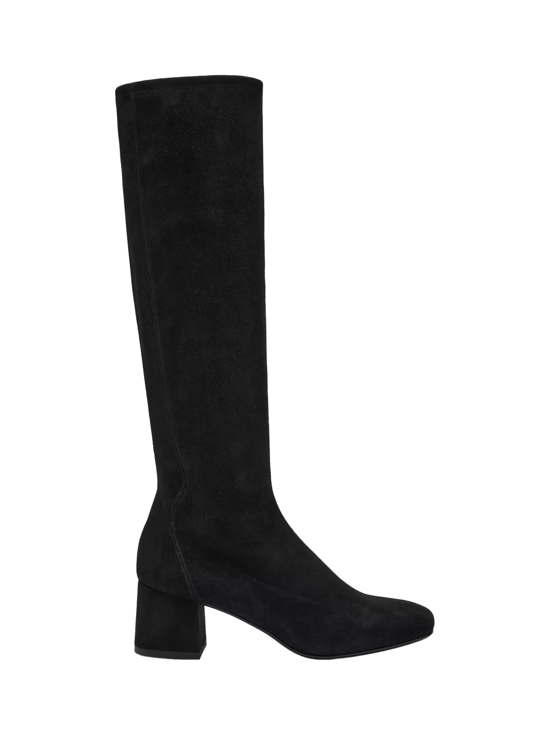 Harrington Tall draws power from proportion. The knee-high silhouette rounded toe and soft stretch fit create a fluid line while the block heel adds balance and quiet structure. Sleek sculpted and easy to wear.