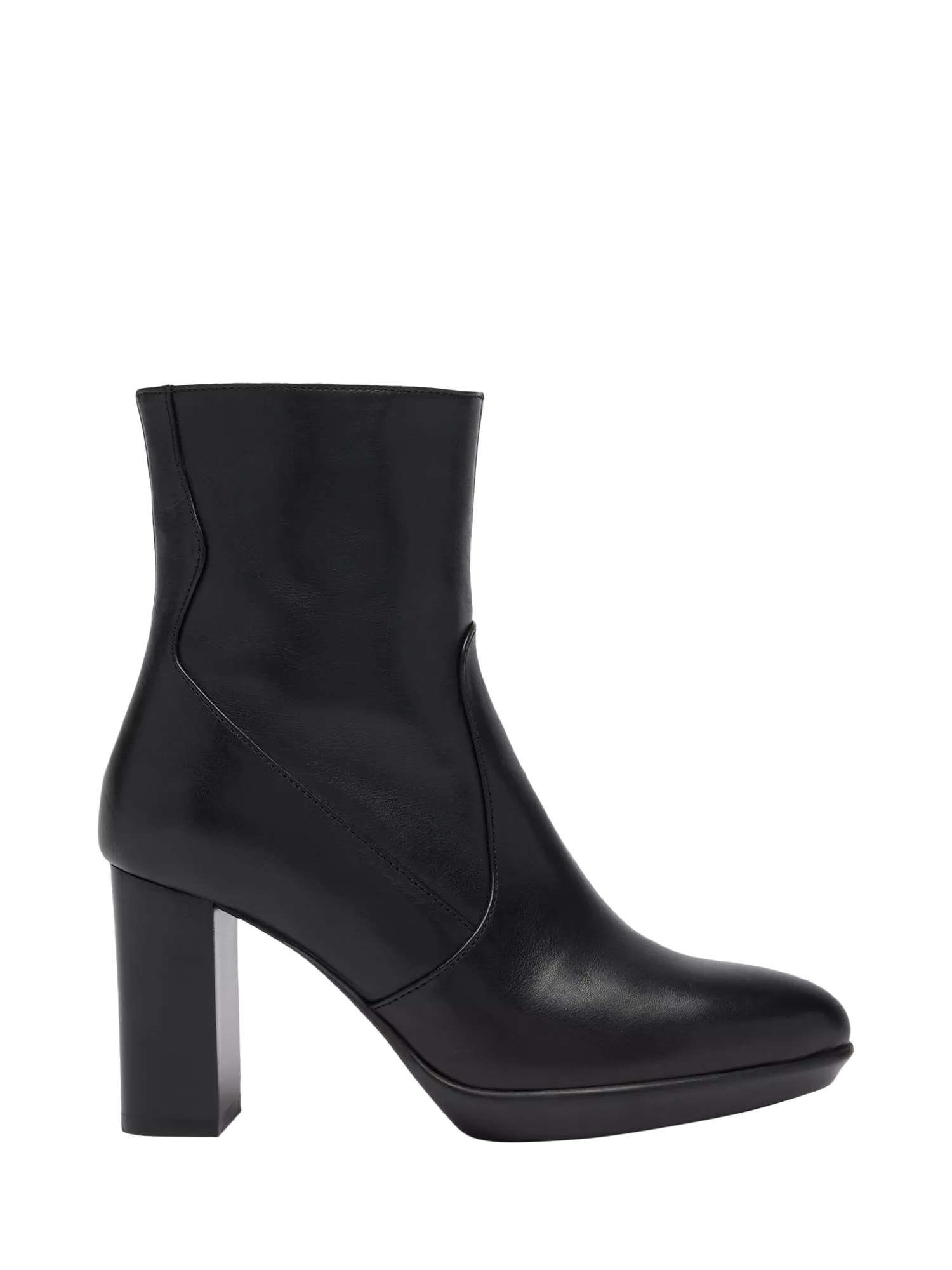 The Hatton leather boot brings a sculpted update to the heeled ankle boot. Set on a block heel with a subtle platform, the silhouette is defined by a pointed almond toe and a topline that cuts just above the ankle for a streamlined finish.