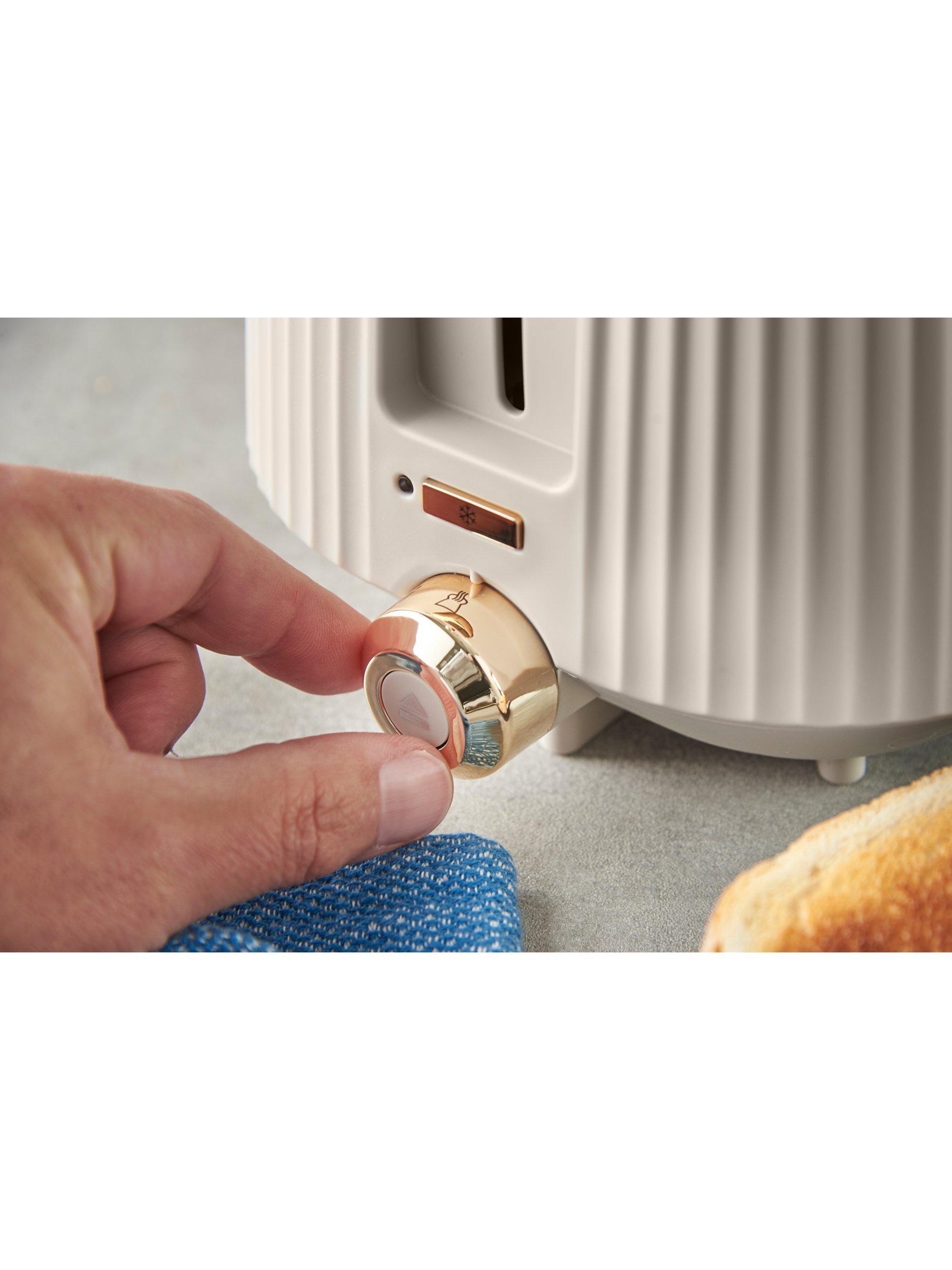 An elegant fluted exterior sits in contrast to the brushed stainless-steel trim, making the Russell Hobbs Brontë 2 Slice Toaster a stylish addition to your kitchen worktop.