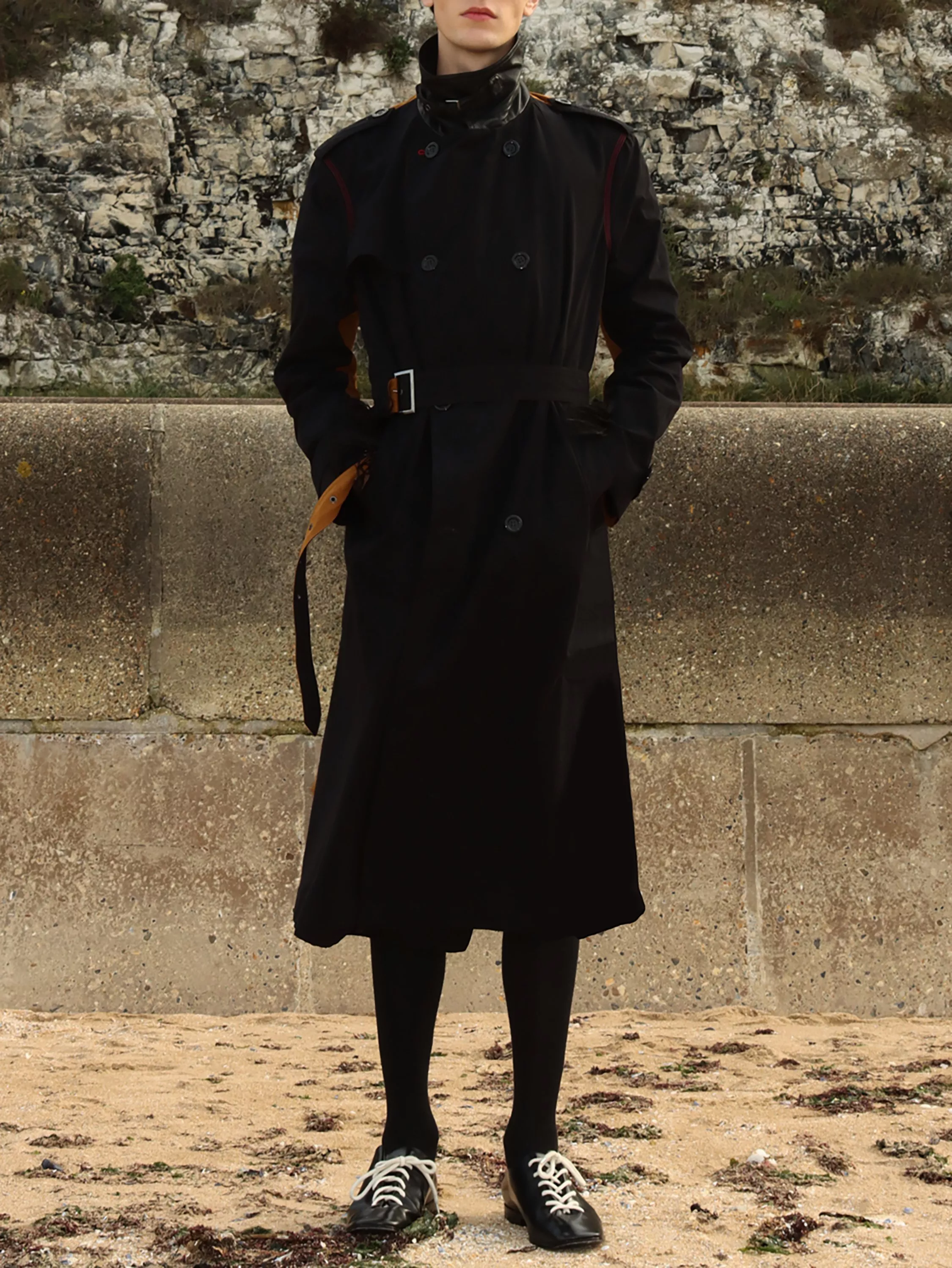 A two-tone colour trench coat, cut in a brushed technical cotton fabric for lasting quality.