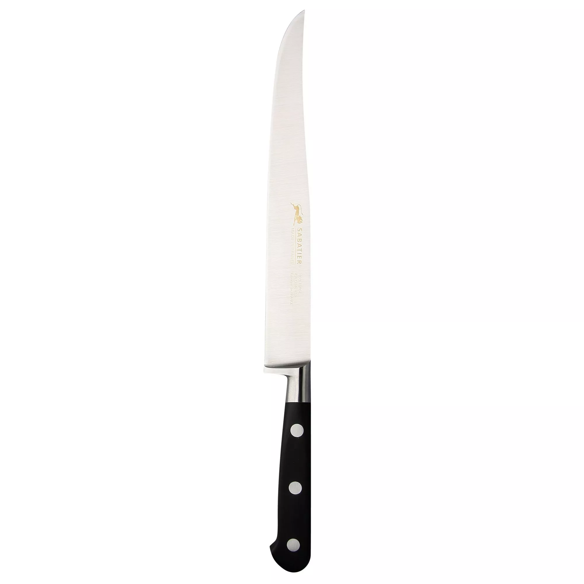 Superb quality knife with a fully forged, corrosion-resistant stainless steel blade and an anti-slip full tang handle with silver-coloured rivets.