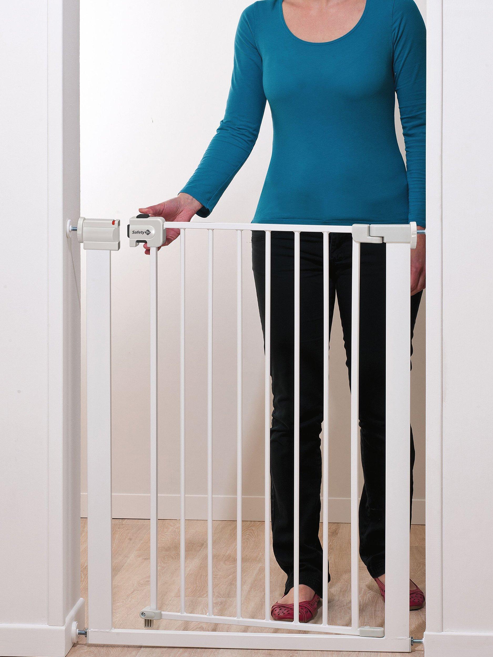 At 91cm high, the Easy Close Extra Tall baby gate is taller than standard Safety 1st safety gates. This baby gate can be used to keep dogs out and is tall enough to stop 2-year-olds from climbing over it. This tall child gate combines the simplicity and quality you'd expect from a Safety 1st gate. It has a U-shaped pressure fit power frame, double locking option and slam-to-shut closing system.