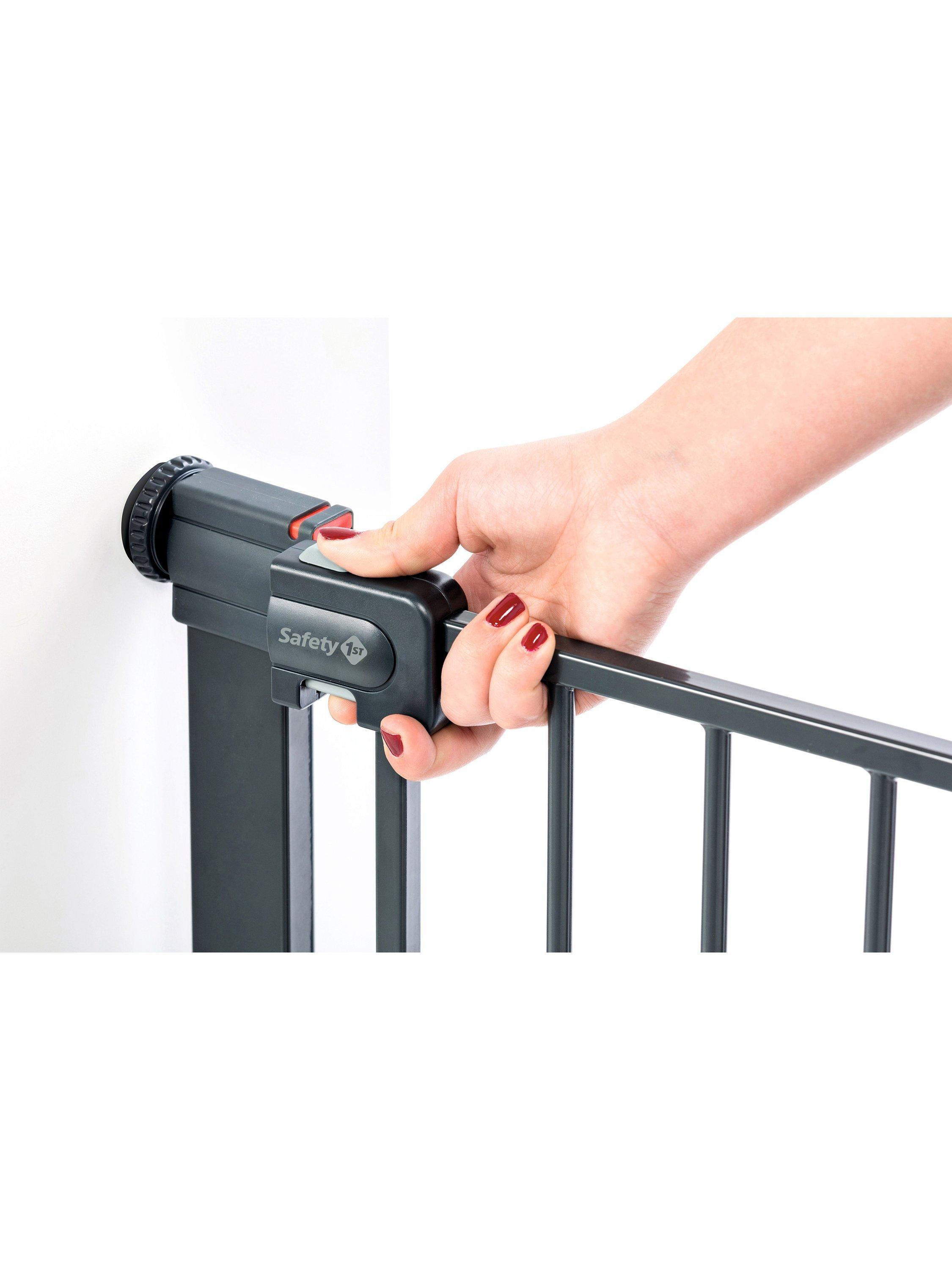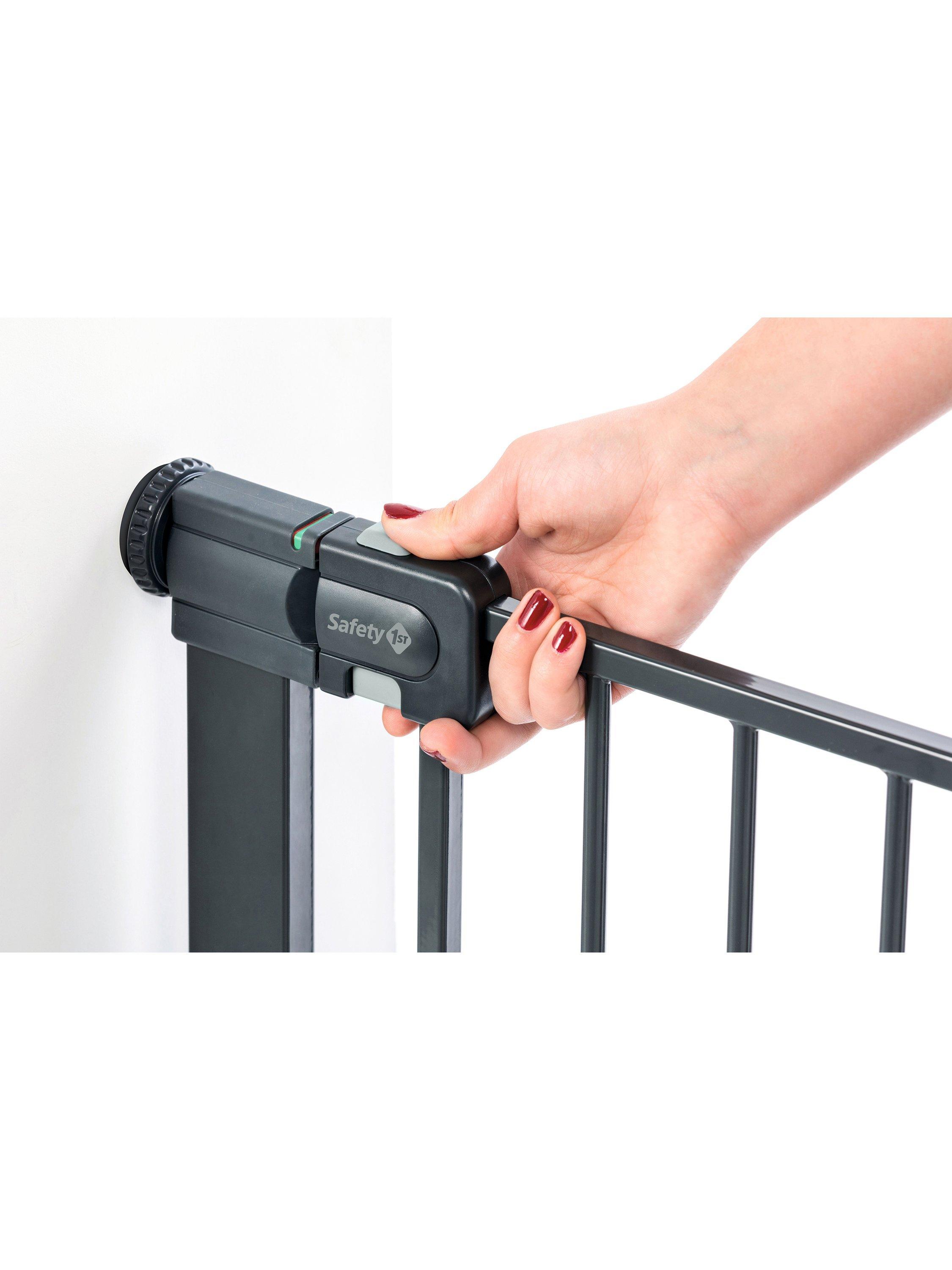 The Safety 1st Easy Close Metal safety gate with SecureTech® combines simplicity and safety in a U-shaped pressure-fit gate. The SecureTech® indicator in the new handle design ensures that the gate is securely installed and properly shut.
