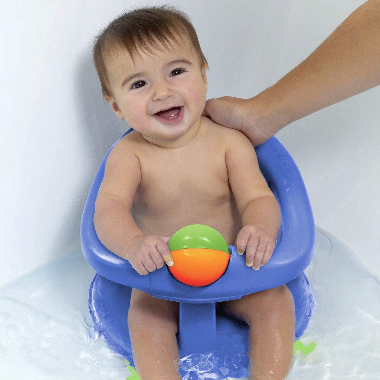 Sat on four suction pads to offer a stable and secure base, this bath seat has a unique 360º swivel that lets you turn your baby for easy bathing whilst the rotating ball keeps little bathers entertained.