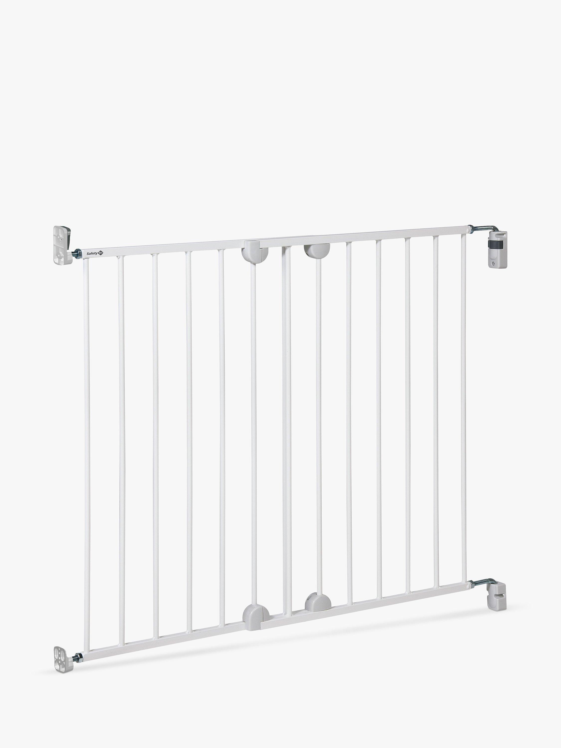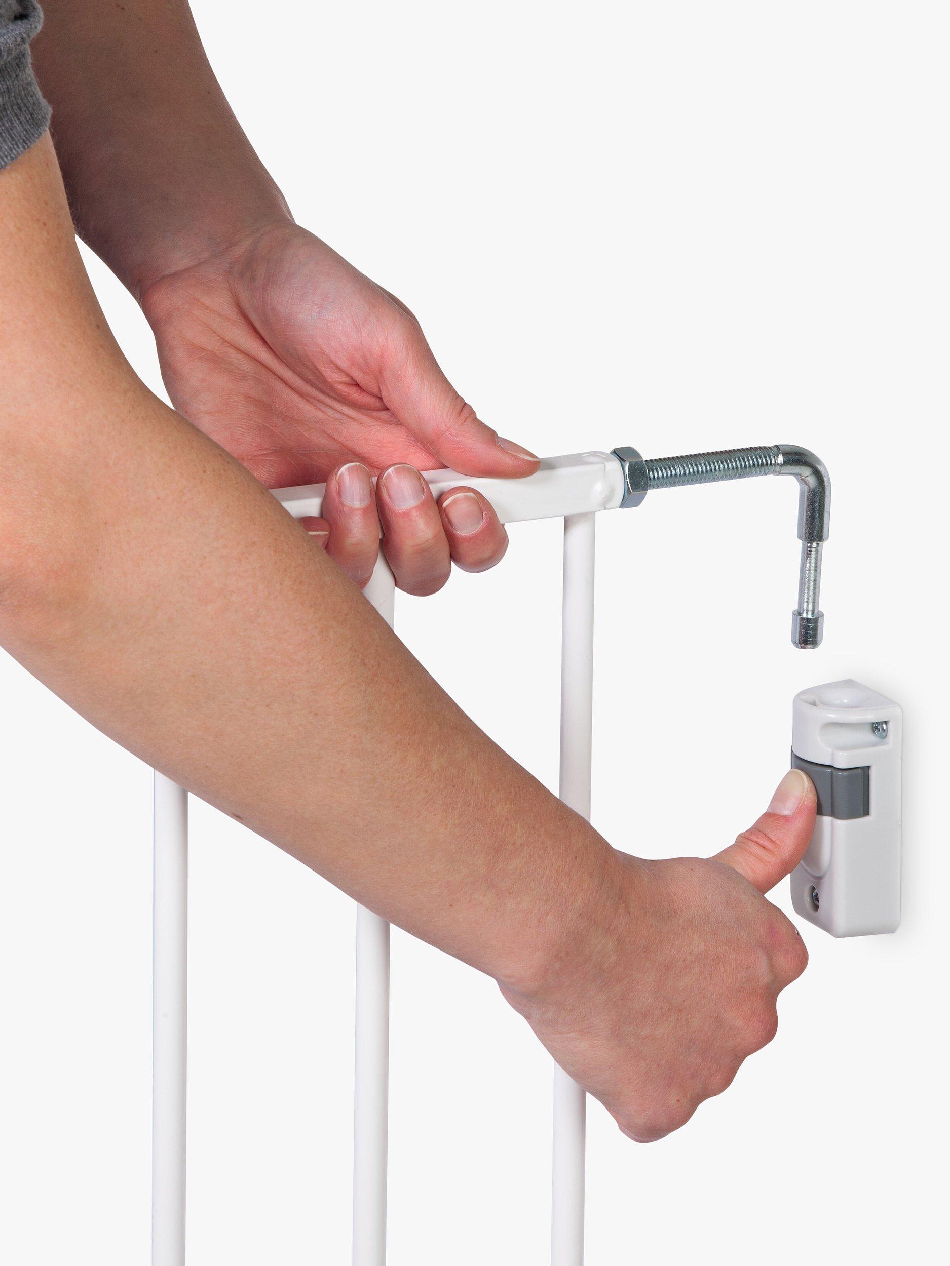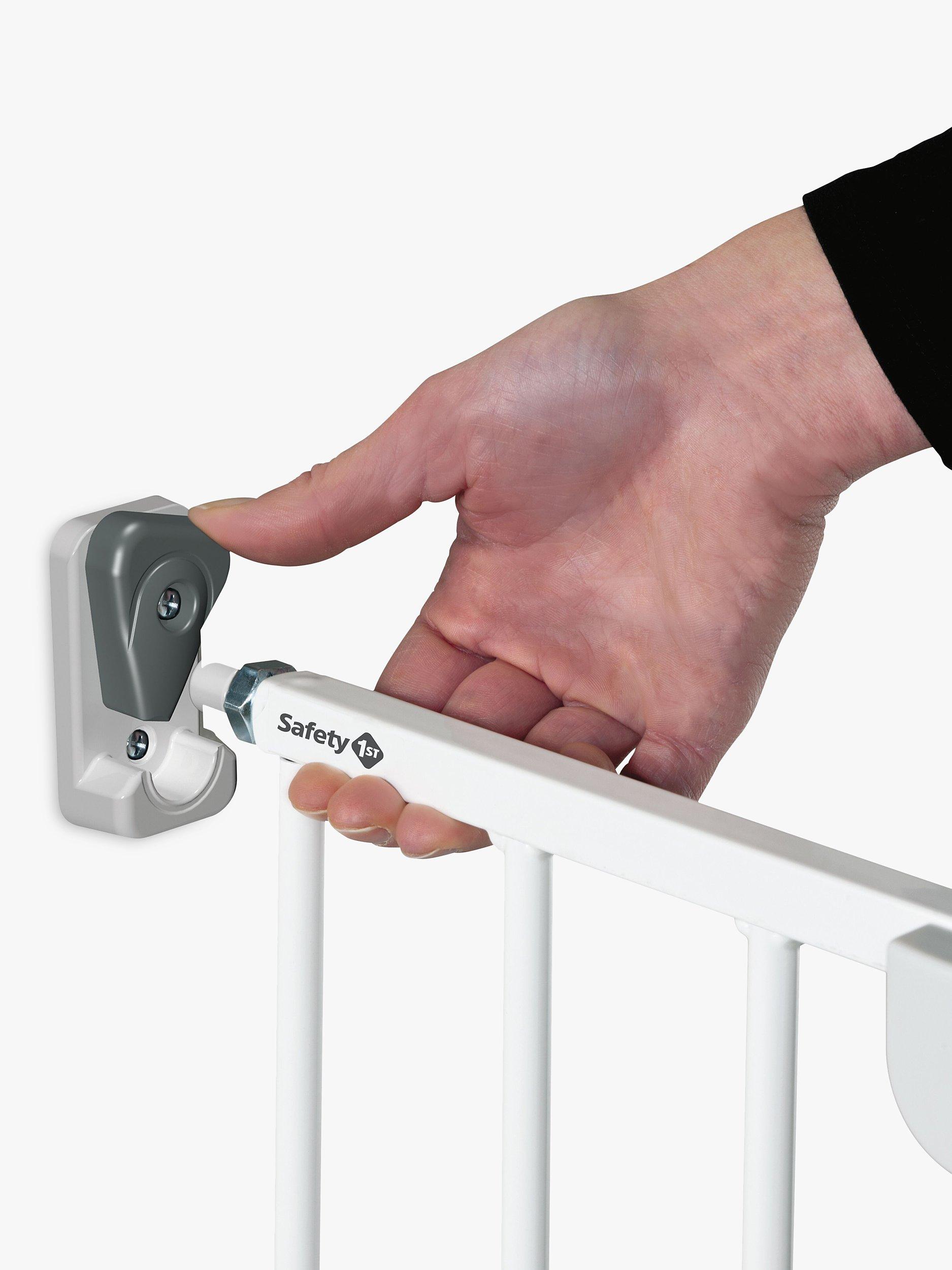 The Safety 1st Wall Fix Extending Metal Gate fits openings from 62cm to a maximum of 102cm with no need for extensions. This wide baby gate that opens in both directions is convenient to use, plus there's no step-over bar to cause a trip hazard. This safety gate is easy to install at either the top or bottom of stairs and can be removed quickly with the simple release mechanism.