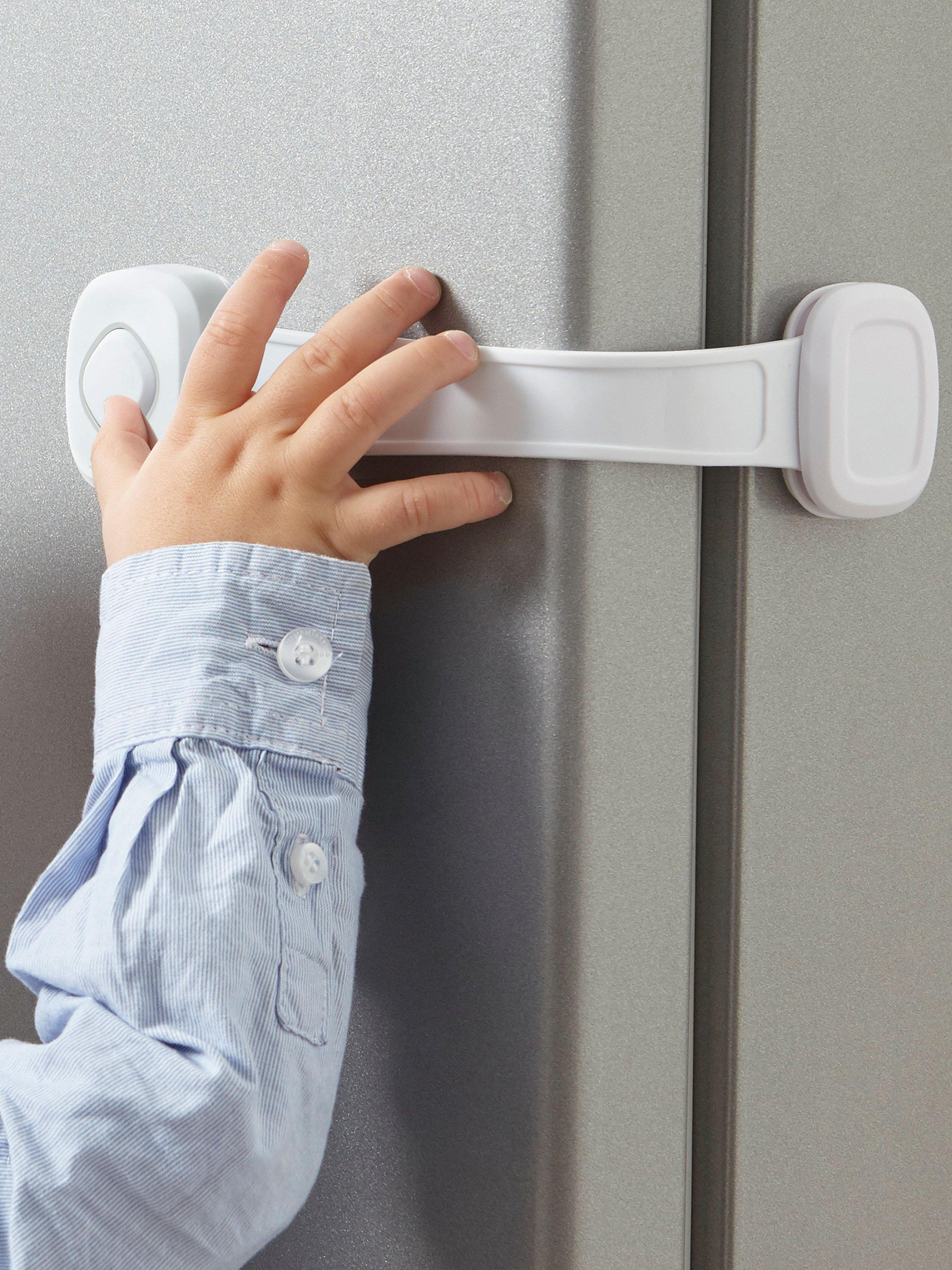 Curious kids try to get into anything and everything, but the range of Safety 1st Outsmart locks helps parents keep them out with the first decoy button. Children will think that the decoy button opens the lock, but pushing on it has no effect. Instead, the flexible surface hides the secret button to open the lock. It can be used to secure a variety of appliances and cabinets, with a flexible strap for a custom fit. Easily attached with an adhesive (no drilling required) and then removable when no longer required.