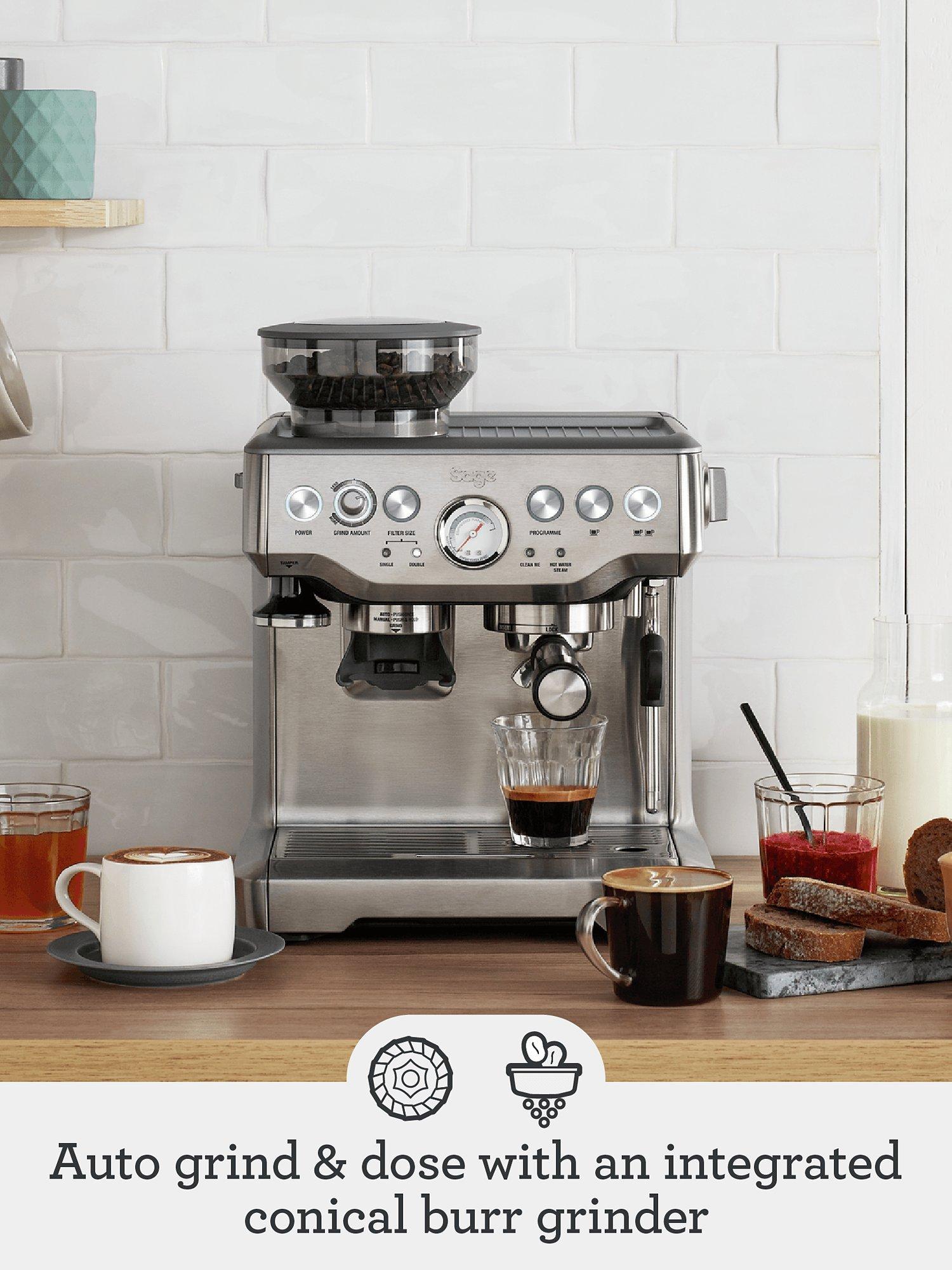 Developed by Sage, the Barista Express is here to give you the ultimate cup of coffee. Designed on the principle that ingredients taste better when fresh, the Barista Express prevents degradation of the quality of beans by grinding them directly into the filter for you, to extract their full flavour. The whole process, from bean to coffee, takes less than a minute.