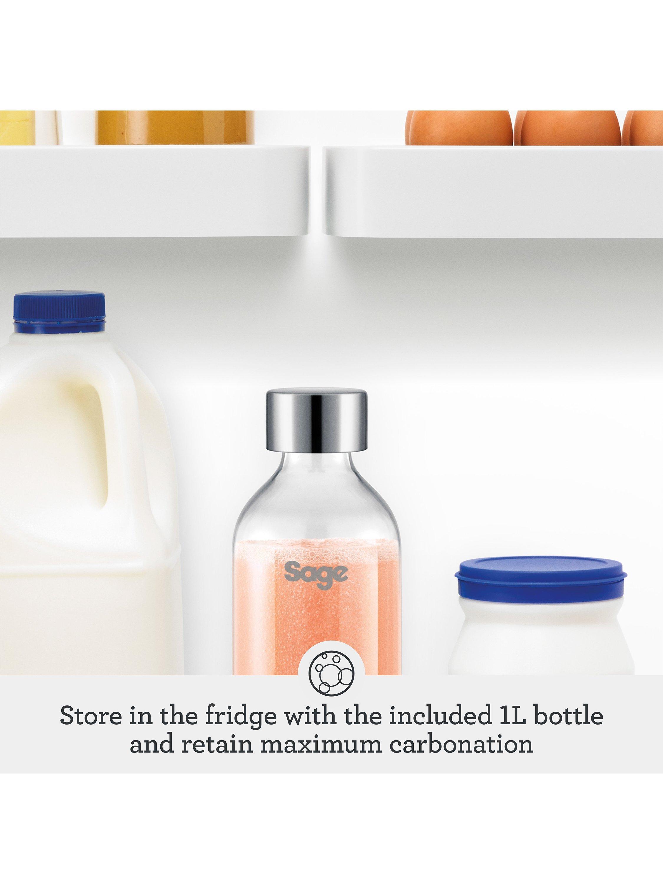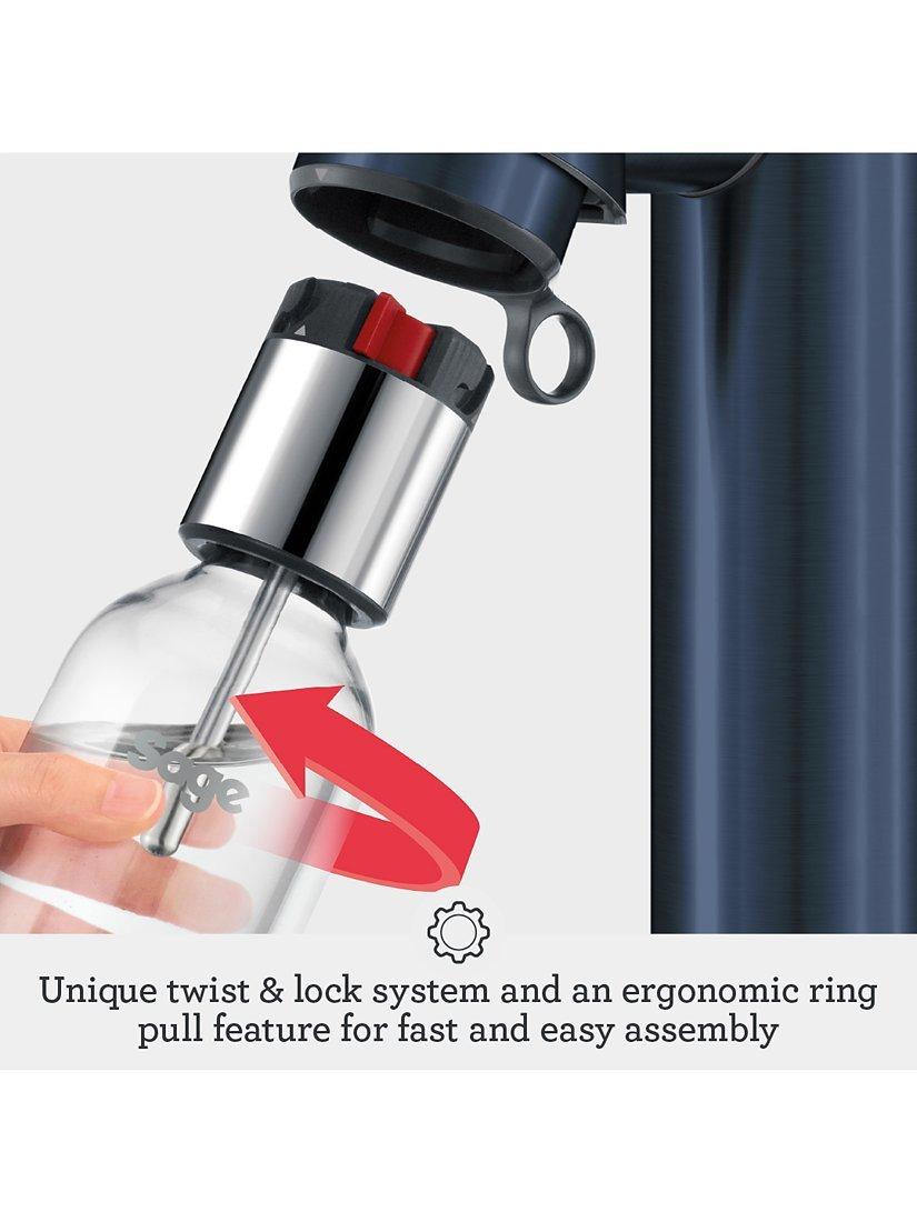 Use with standard screw type 60L CO2 canister. CO2 canister not included. Included accessories: the Fusion Cap™, 1L bottle with stainless steel cap and base, cleaning brush, funnel & sieve.