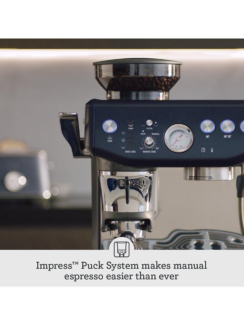 Create third wave specialty coffee at home from bean to espresso in less than a minute. The best of the Barista Express with the Impress Puck System. Helping you to achieve the perfect dose and a precise tamp while reducing the grinds on the machine and bench top.