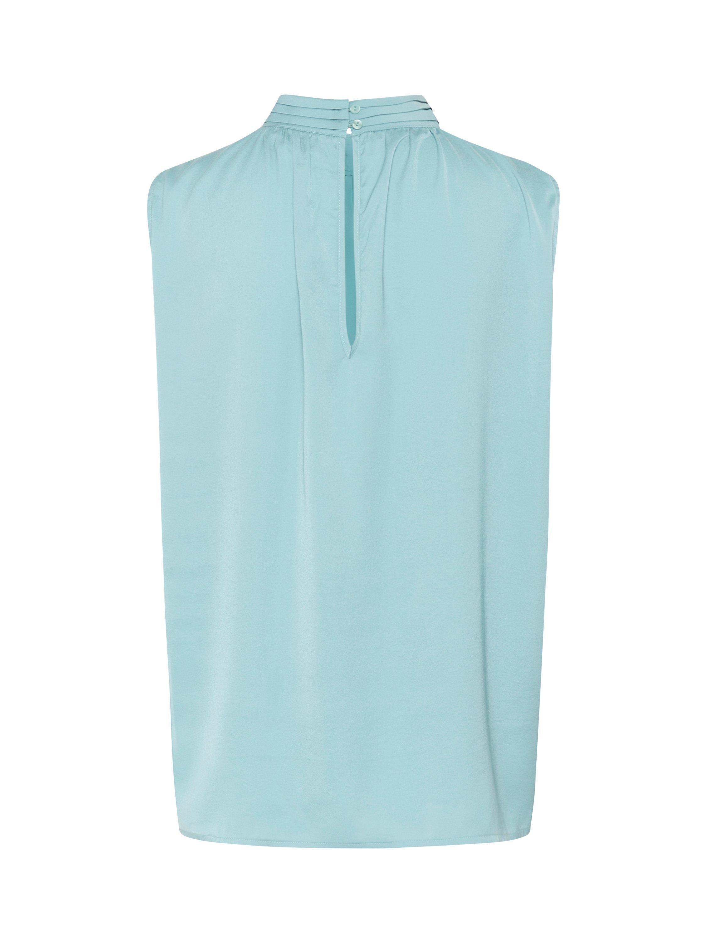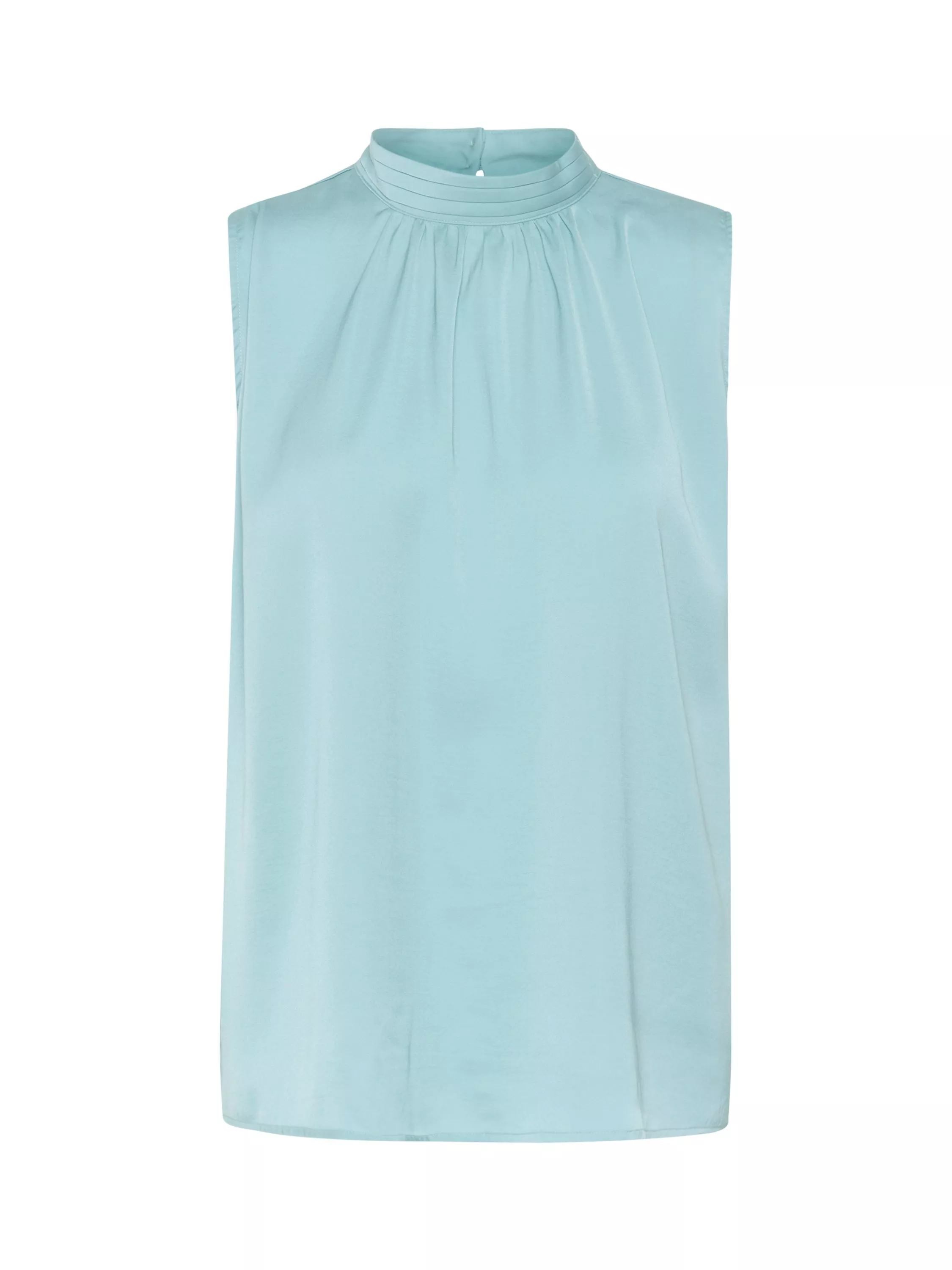 Made from soft satin, this sleeveless blouse from Saint Tropez featured a gathered high neck with a keyhole and button fastening to the back.