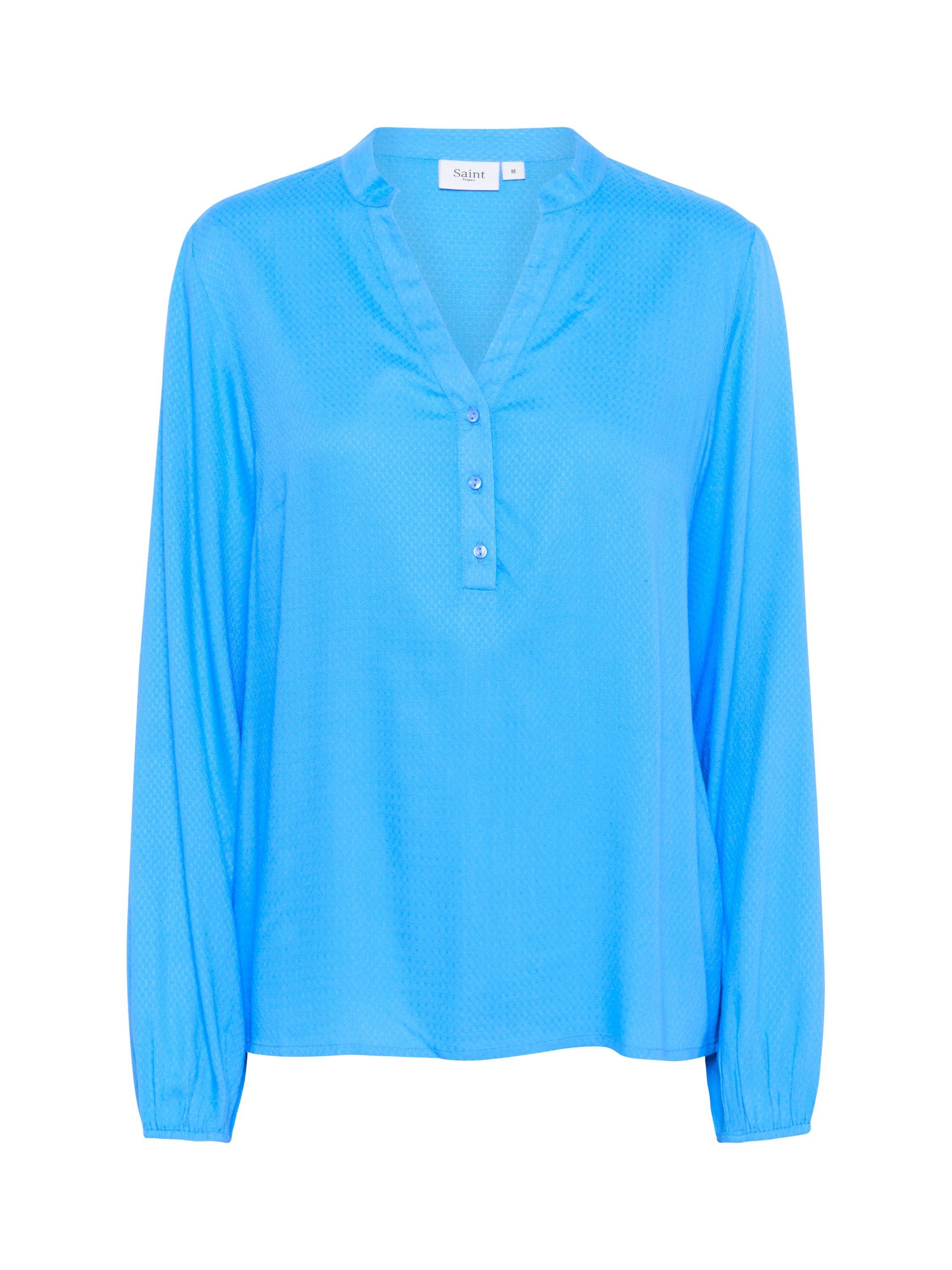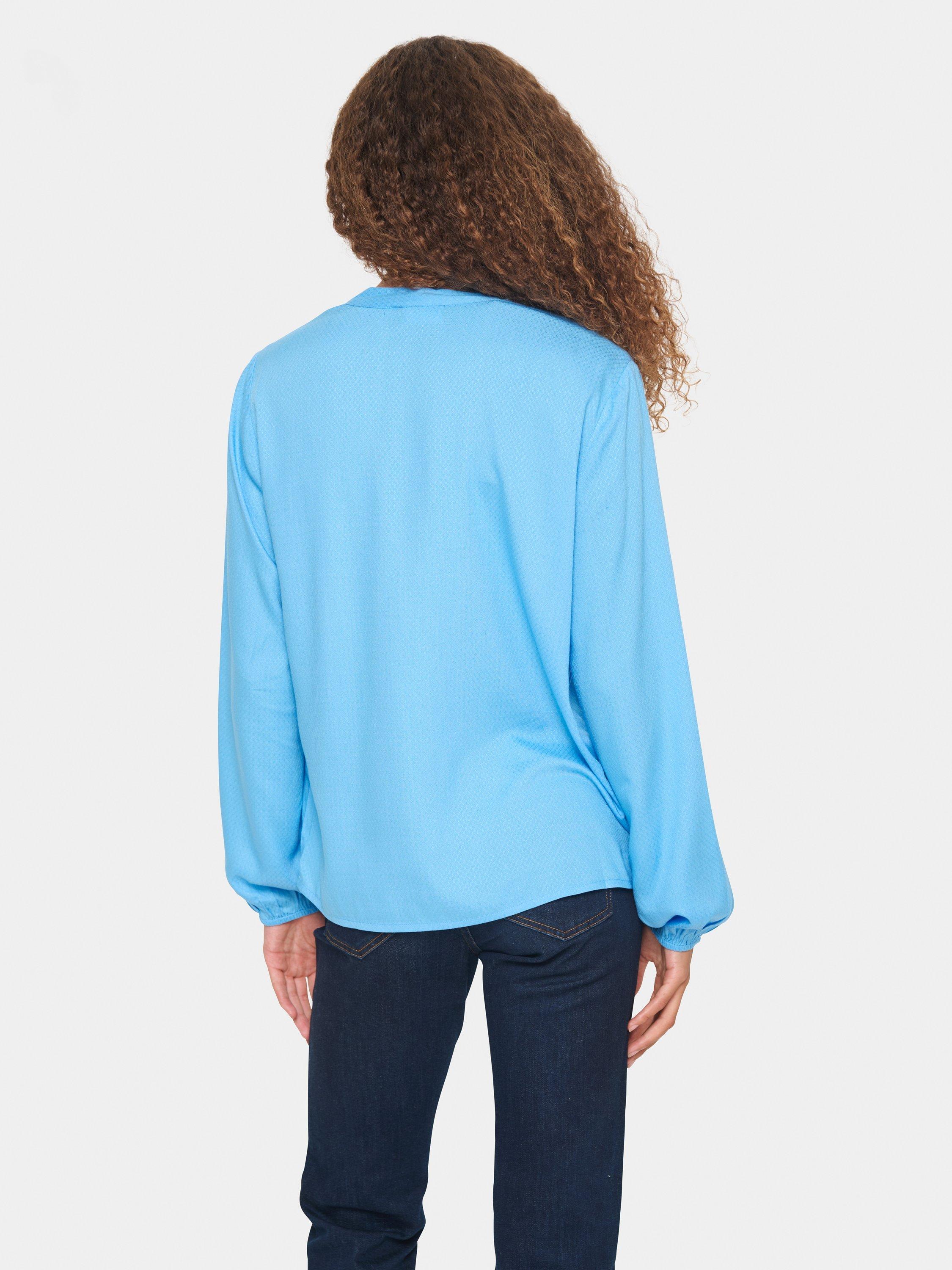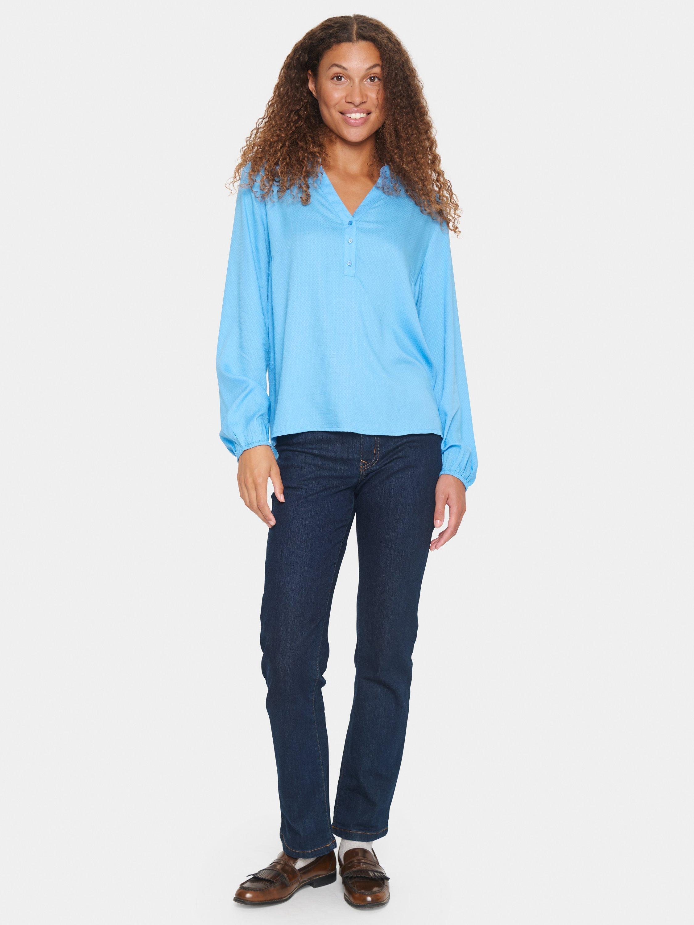 The Campanula blouse is an easy-to-wear style, that will fit perfectly in this seasons wardrobe. It has a V-notch neckline with a henley button stand and band collar. The sleeves are long and loose, and they are gathered in an elastic edge. The blouse has a casual fit and is cut at the hips.