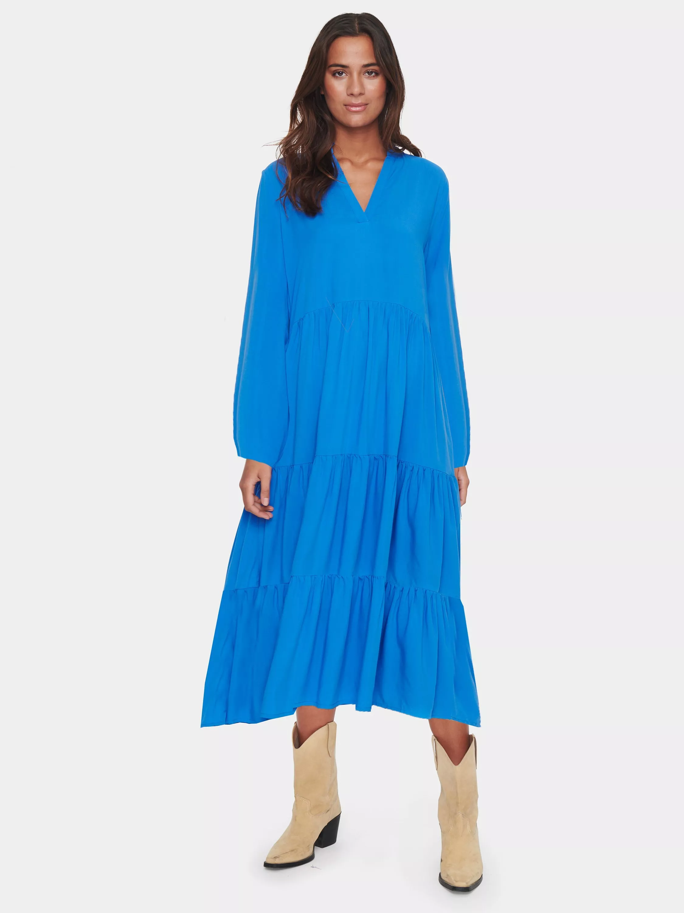 The Saint Tropez woven dress offers a relaxed fit and midi length, ideal for a variety of occasions. This long sleeve dress eclipses seasonal trends with a classic design, made from fabric for a chicchoice.