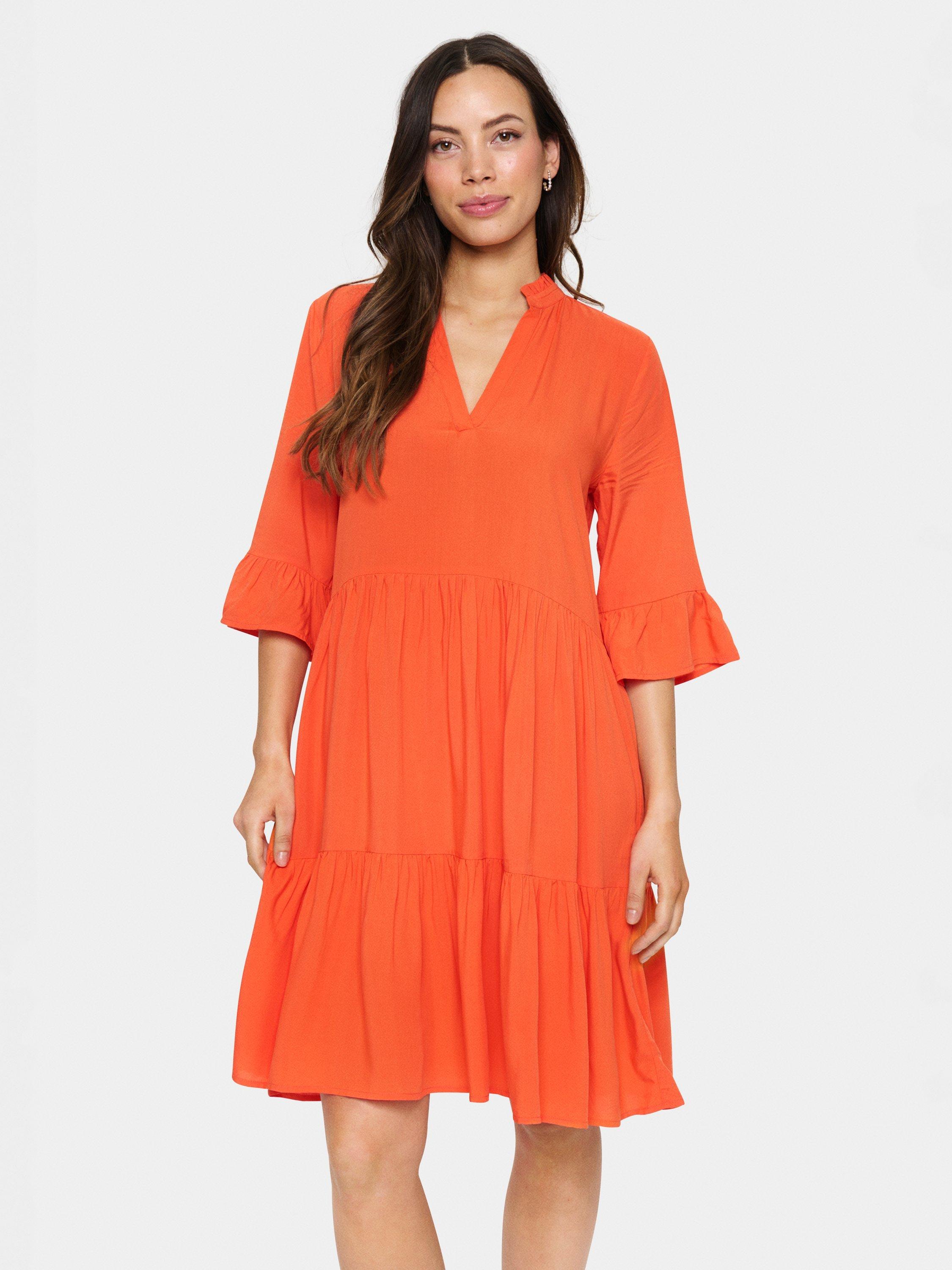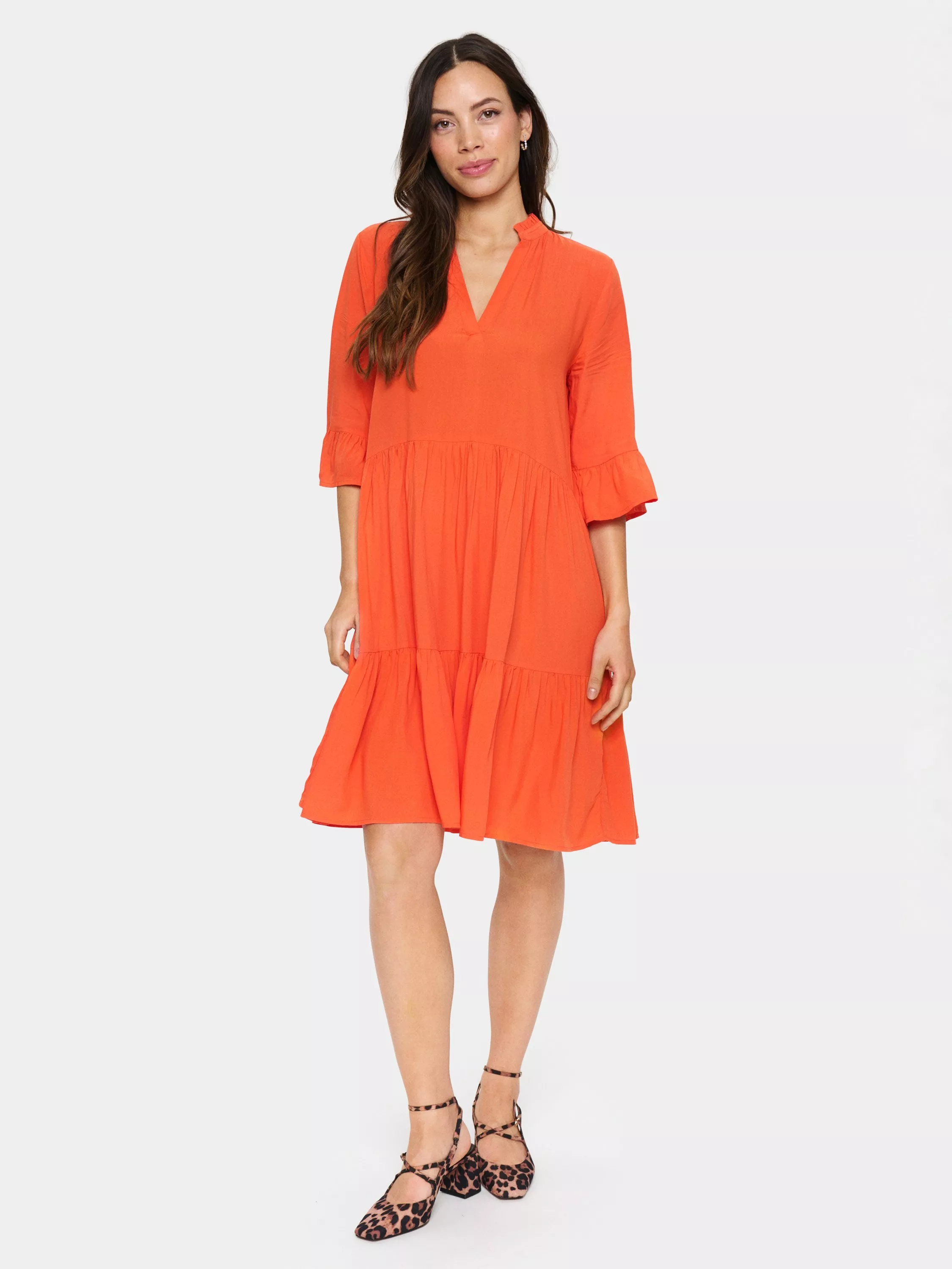 Tiered in a flattering A-line shape, this thigh-grazing dress from Saint Tropez is crafted from an airy viscose fabric. With a fuss-free but smart v-neckline and three quarter length sleeves, this style is the epitome of sheer minimalism.
