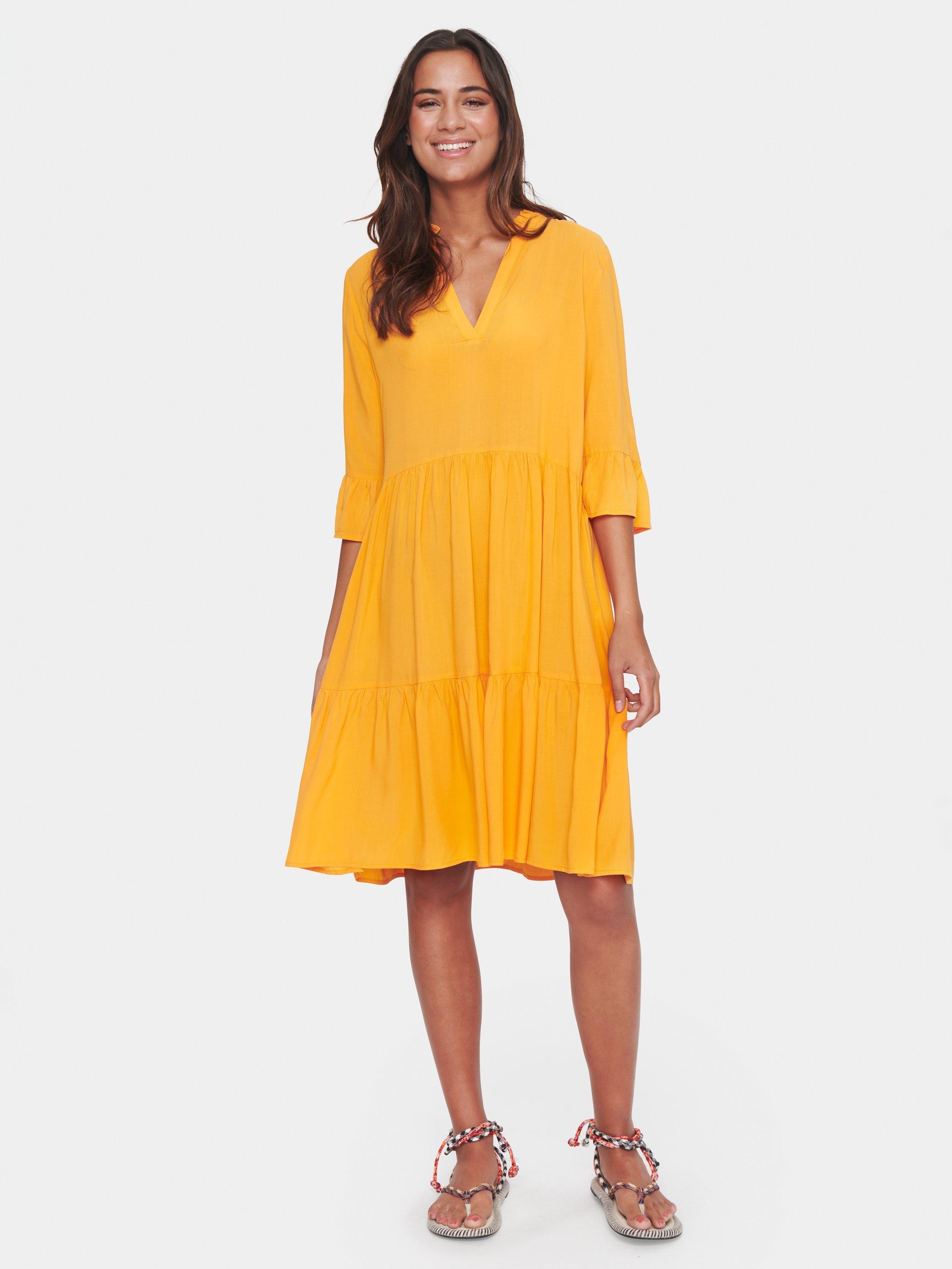 Offset with plenty of tiered layers, this knee length dress from Saint Tropez is crafted from an airy viscose fabric. With a universally flattering v-neckline and three quarter length sleeves, this style boasts a floral flourish for added appeal.