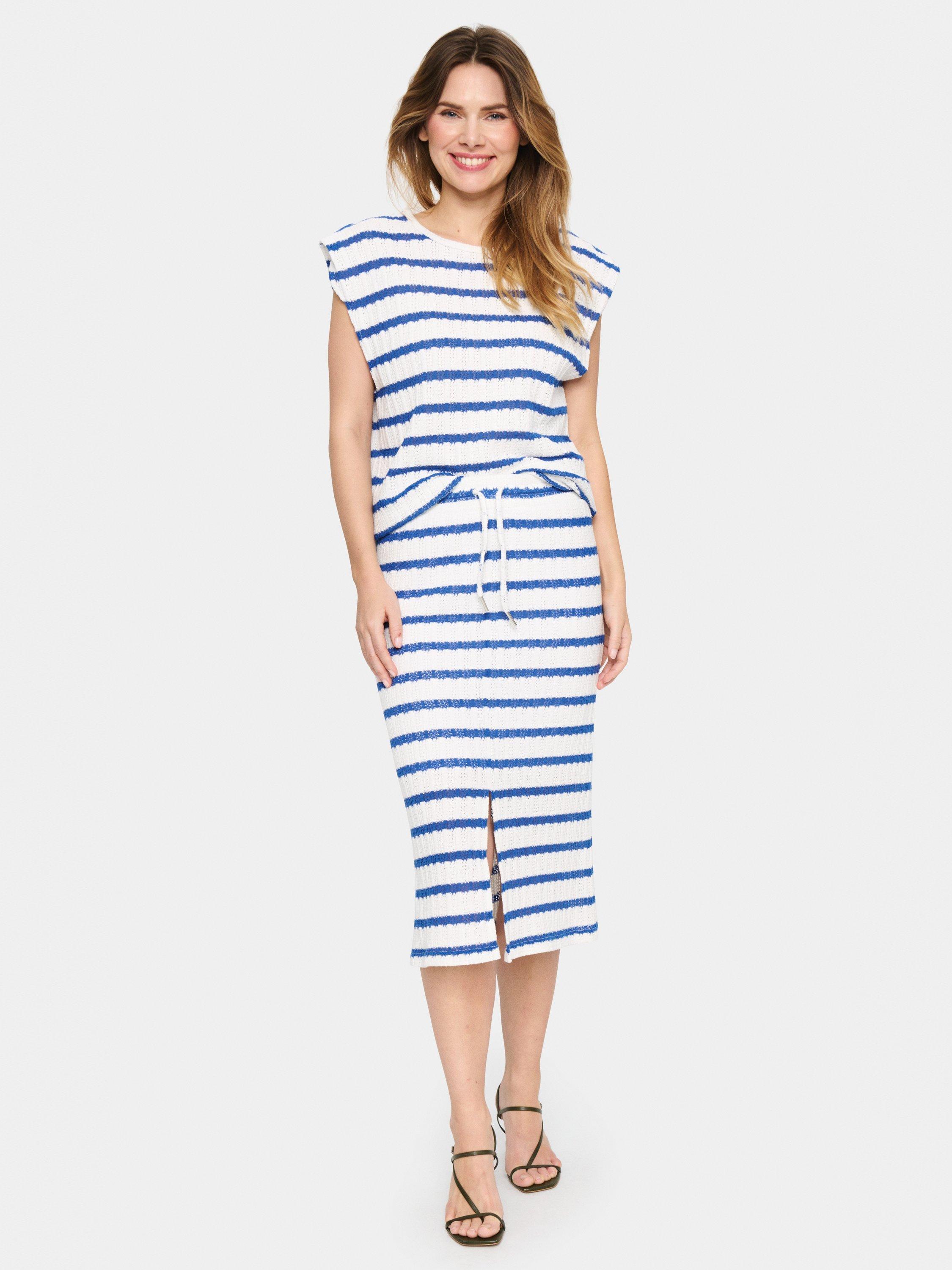 In an A-line silhouette, this midi skirt by Saint Tropez is adorned with stripes. Made from a cotton fabric blend, find countless ways to style this versatile piece.