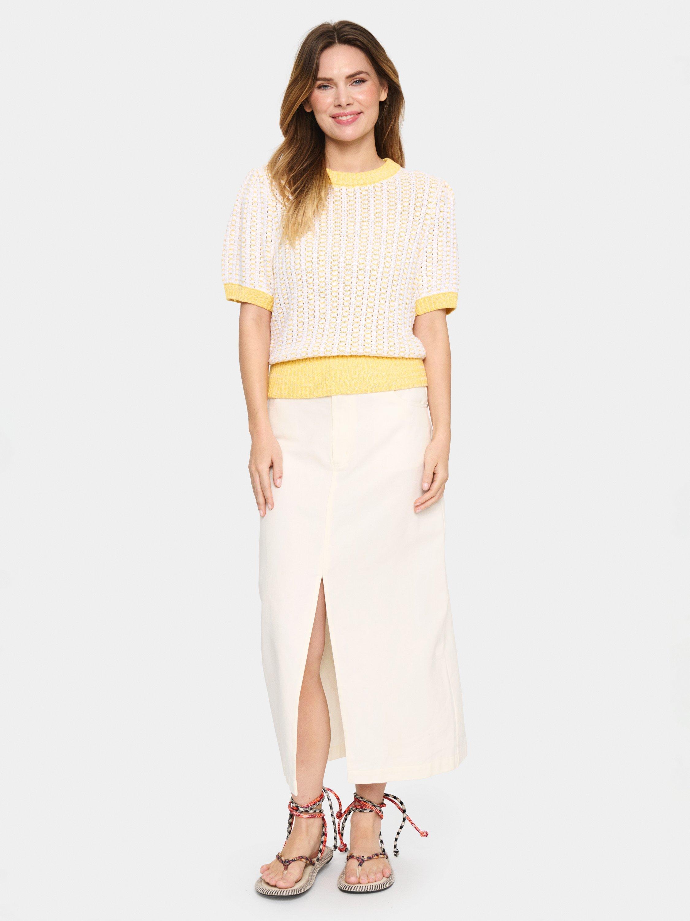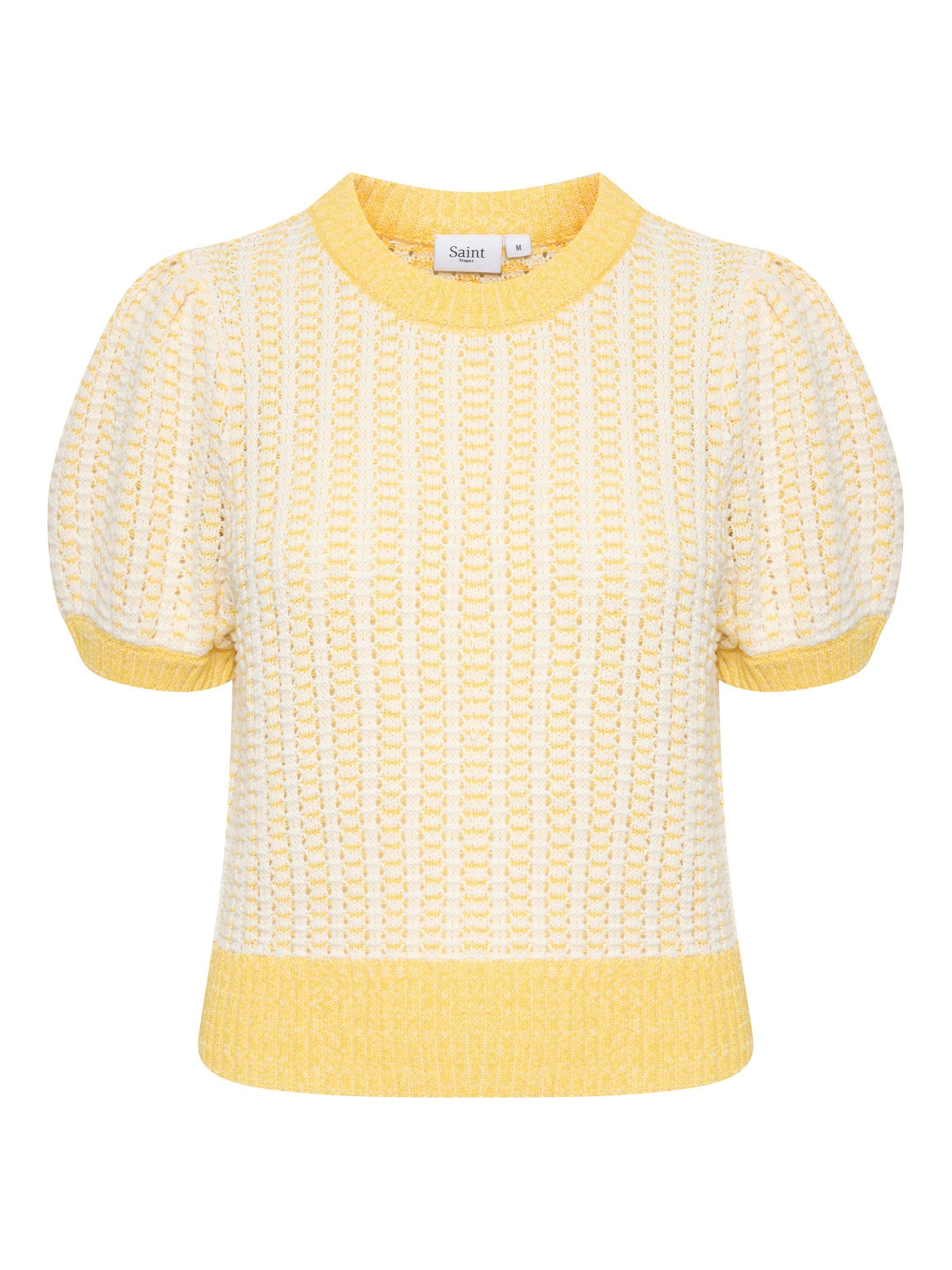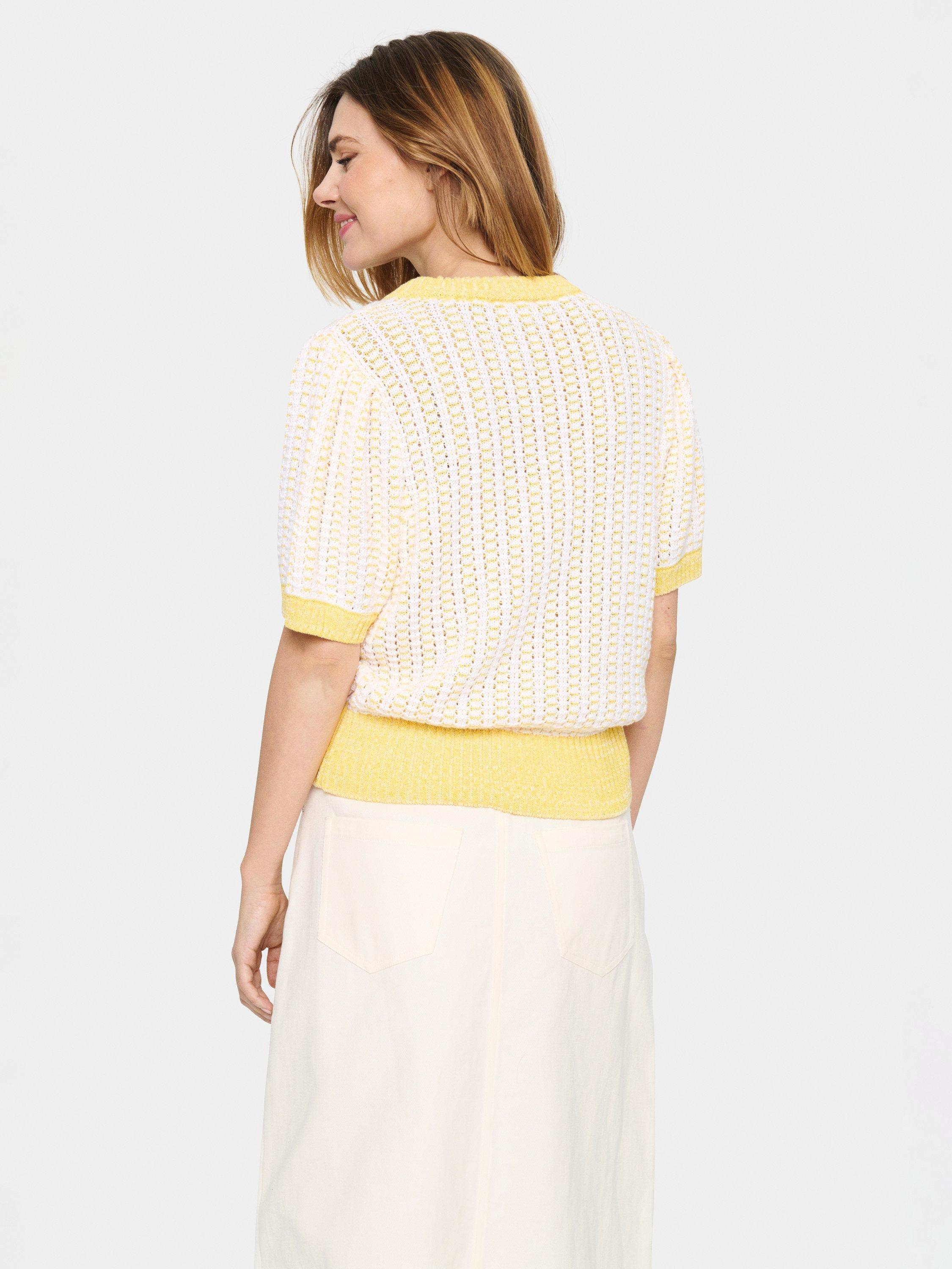 Cut with a crew neck and short sleeves, this open knit jumper by Saint Tropez is made from a cosy blend.