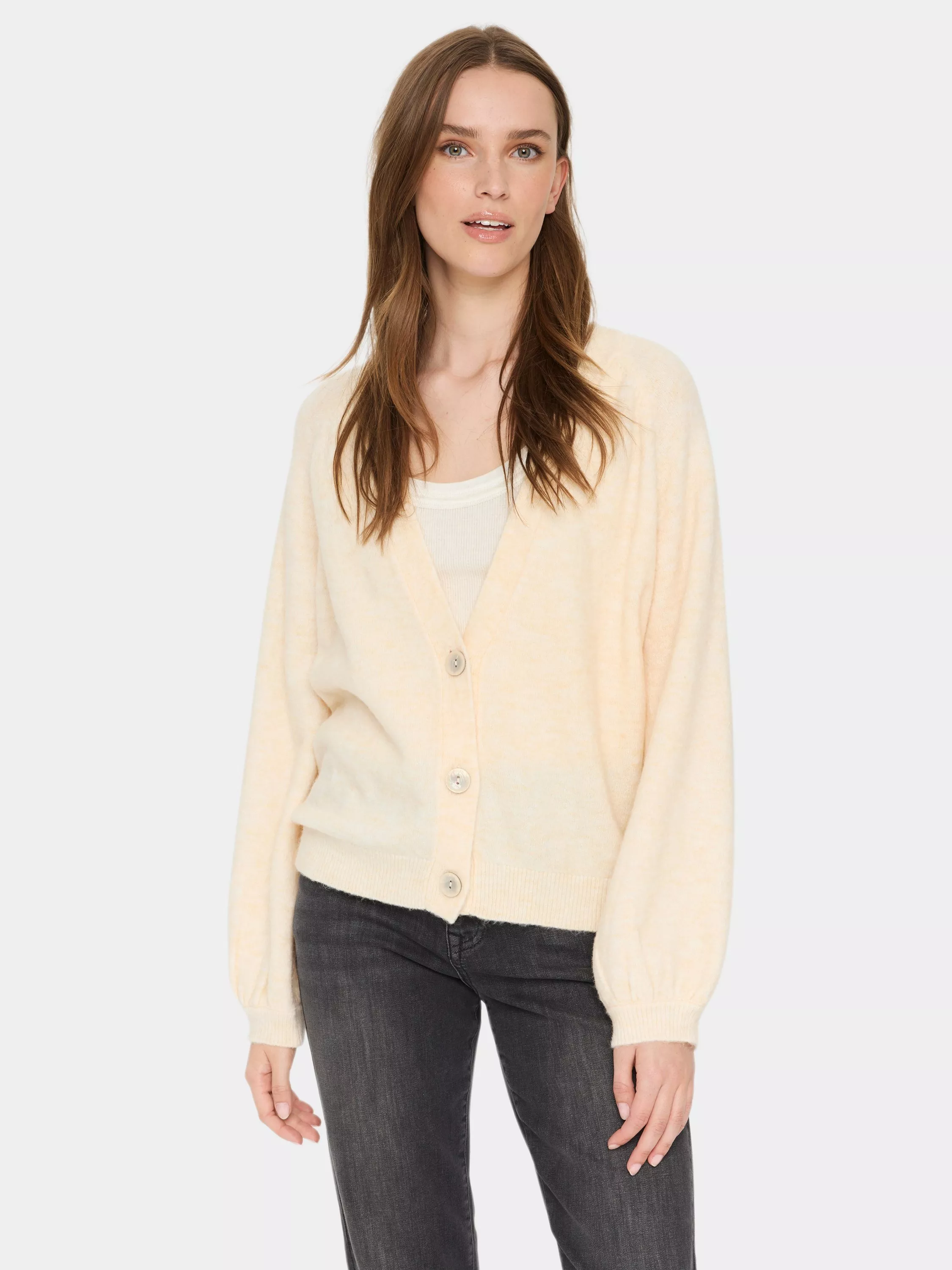 The Garbie cardigan is a simple must-have item, that will go great with any everyday outfit. It has a deep V-neck and button fastening, and it has a casual fit. The sleeves are long and loose-fitting raglan sleeves, and they are gathered in a narrow, knitted cuff.