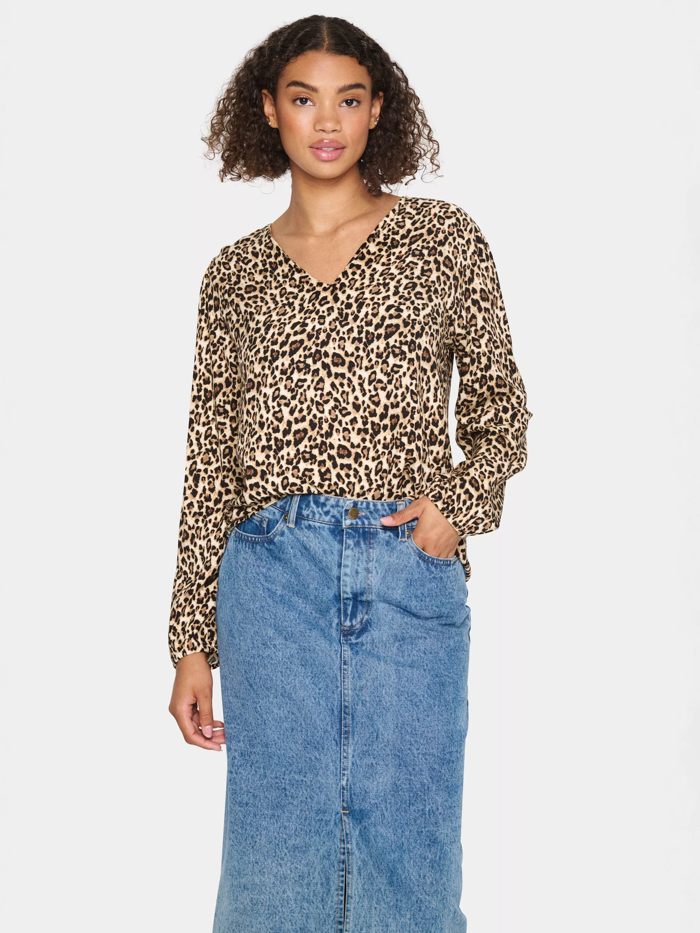 The Gasel blouse is the perfect addition to your wardrobe, and it can be used on any occasion. It has a flattering V-neck and a regular fit, and it is cut at the hips. The sleeves are long with a straight fit, and they are gathered in an elastic edge.