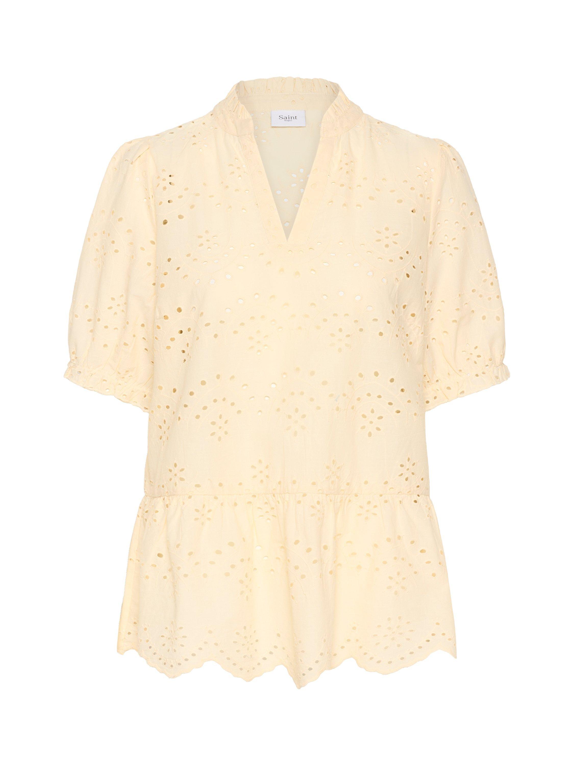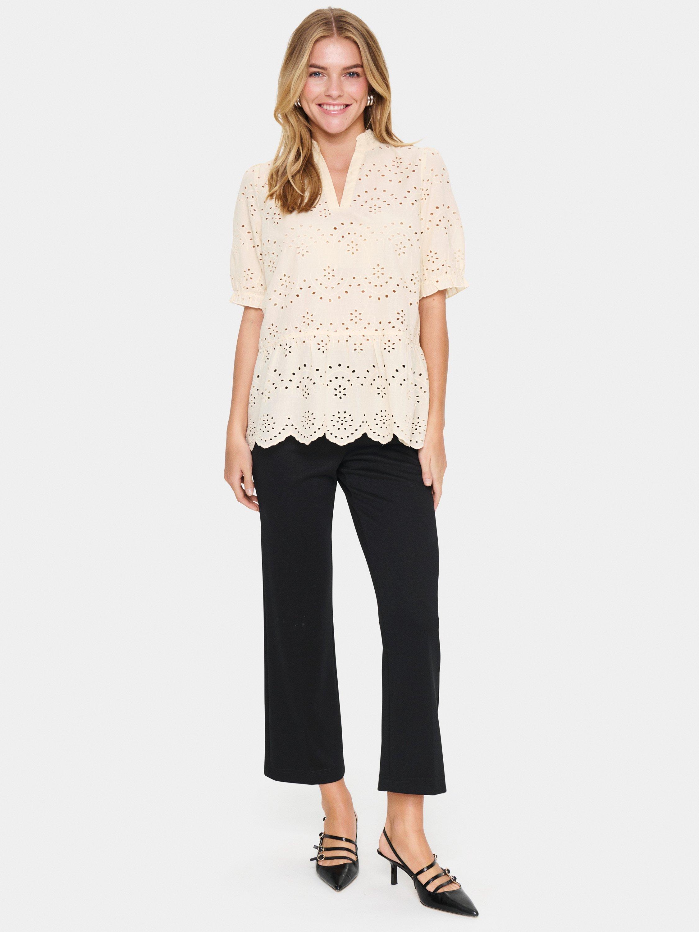 An effortless choice, this blouse from Saint Tropez is decorated with eyelet detail. Cut with a classic v-neck and short sleeves, it is light and breathable in cotton and is an easy daytime option.