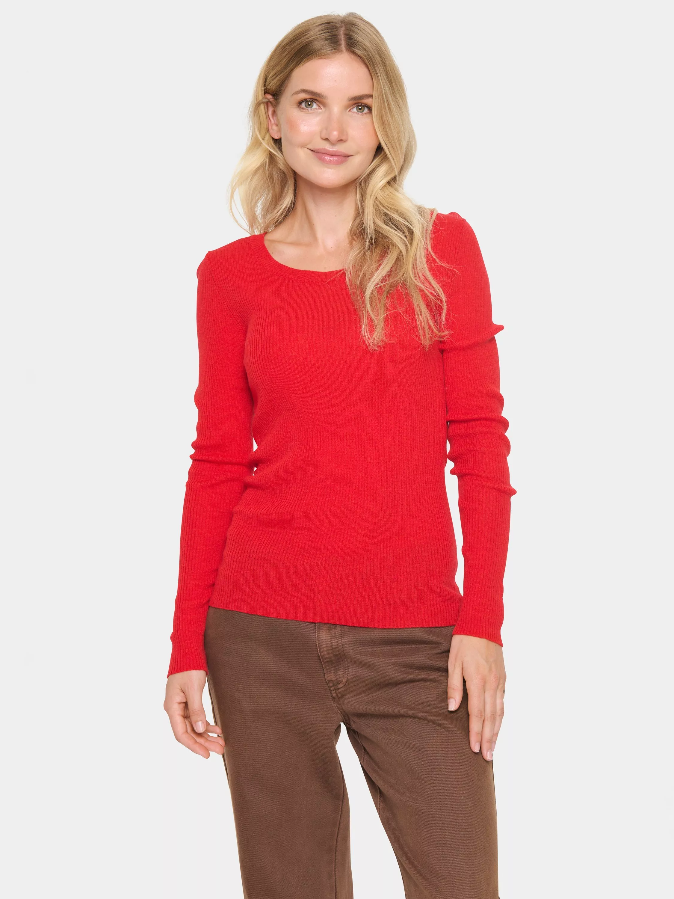 Simple and sweet with its round neckline and long sleeves, this slim fit jumper by Saint Tropez is made in a soft wool blended rib knit fabric,