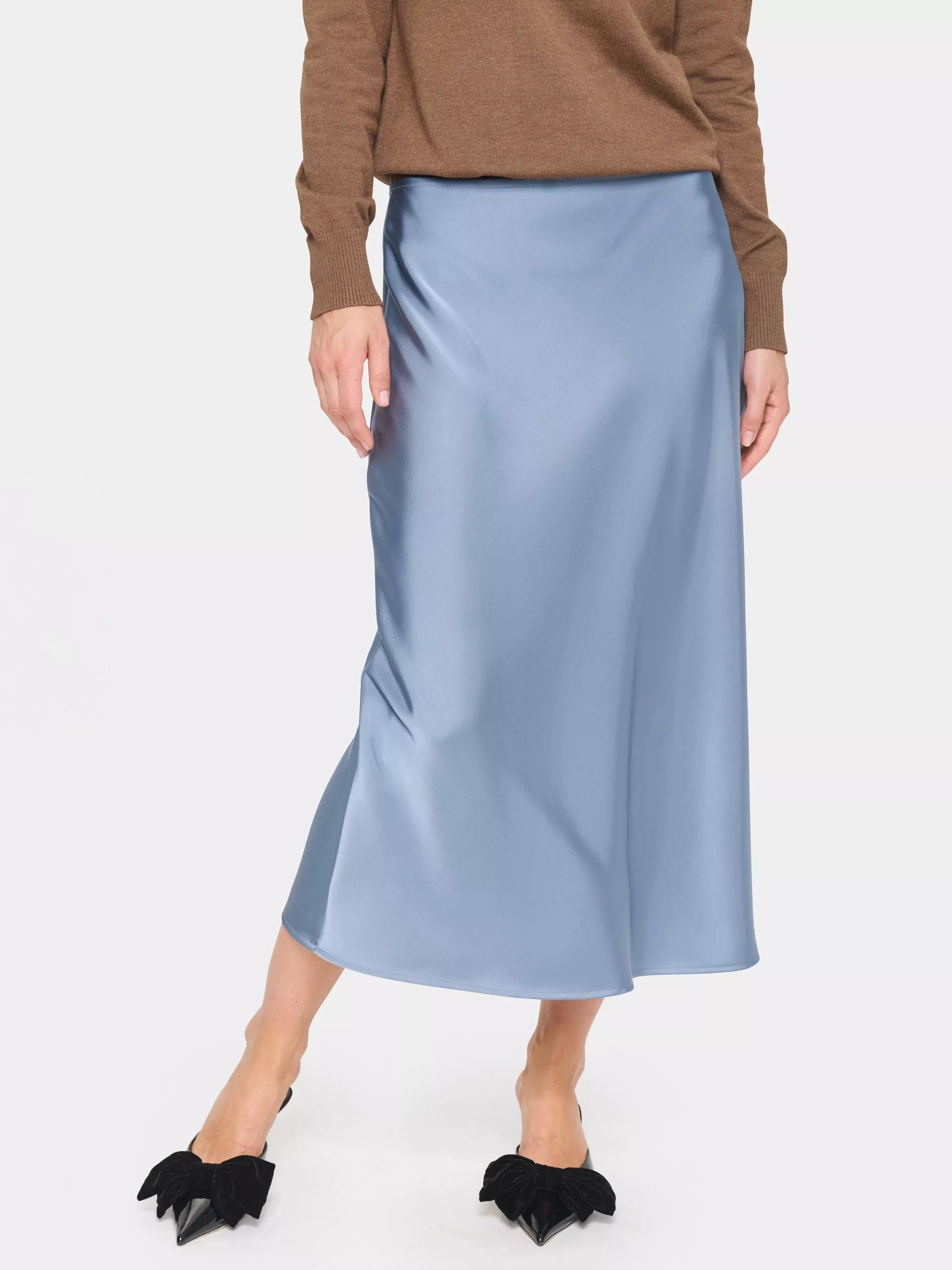 Cut to a languid profile, this light satin midi skirt by Saint Tropez needs no prints or accents to hold the spotlight.