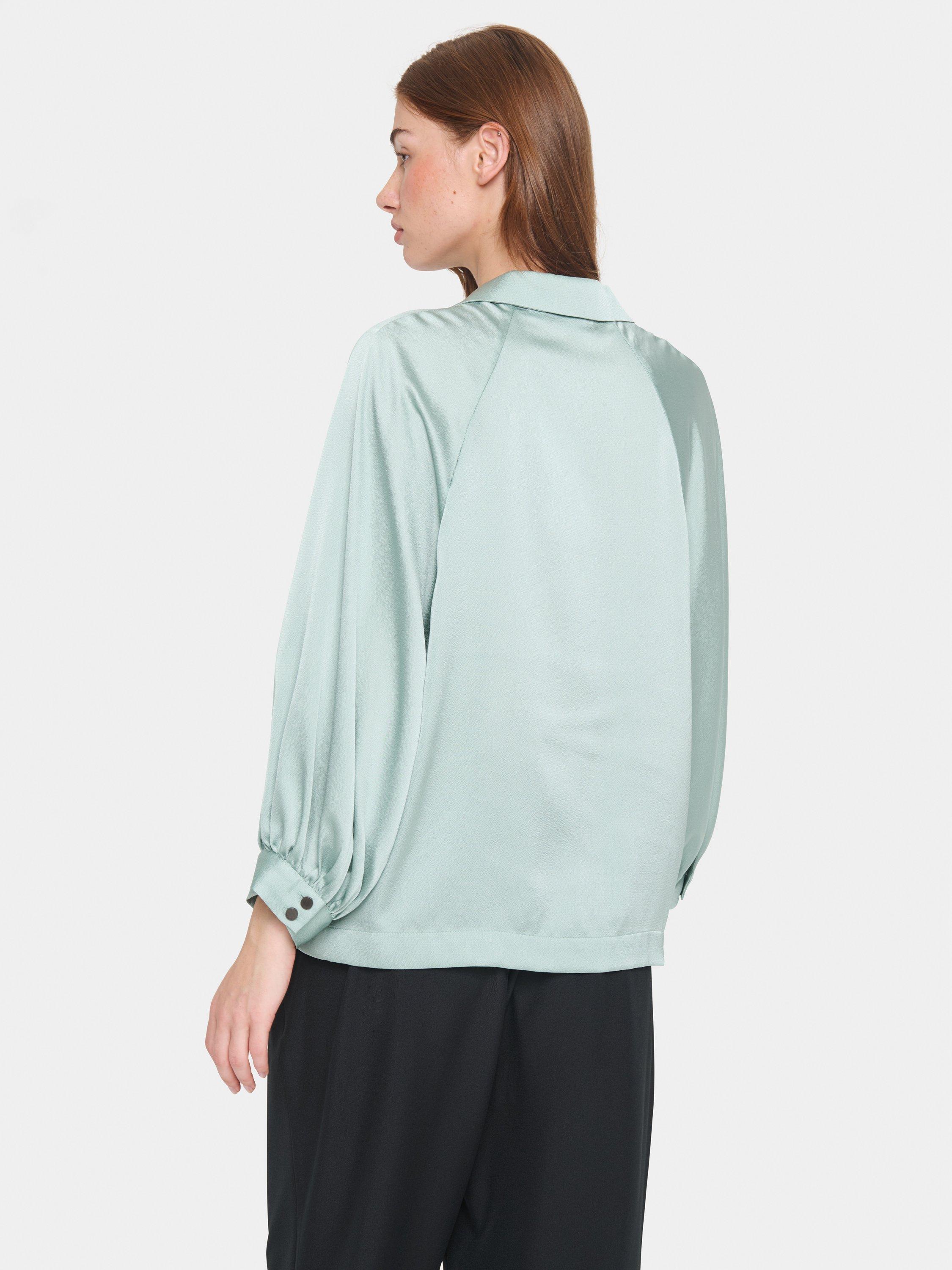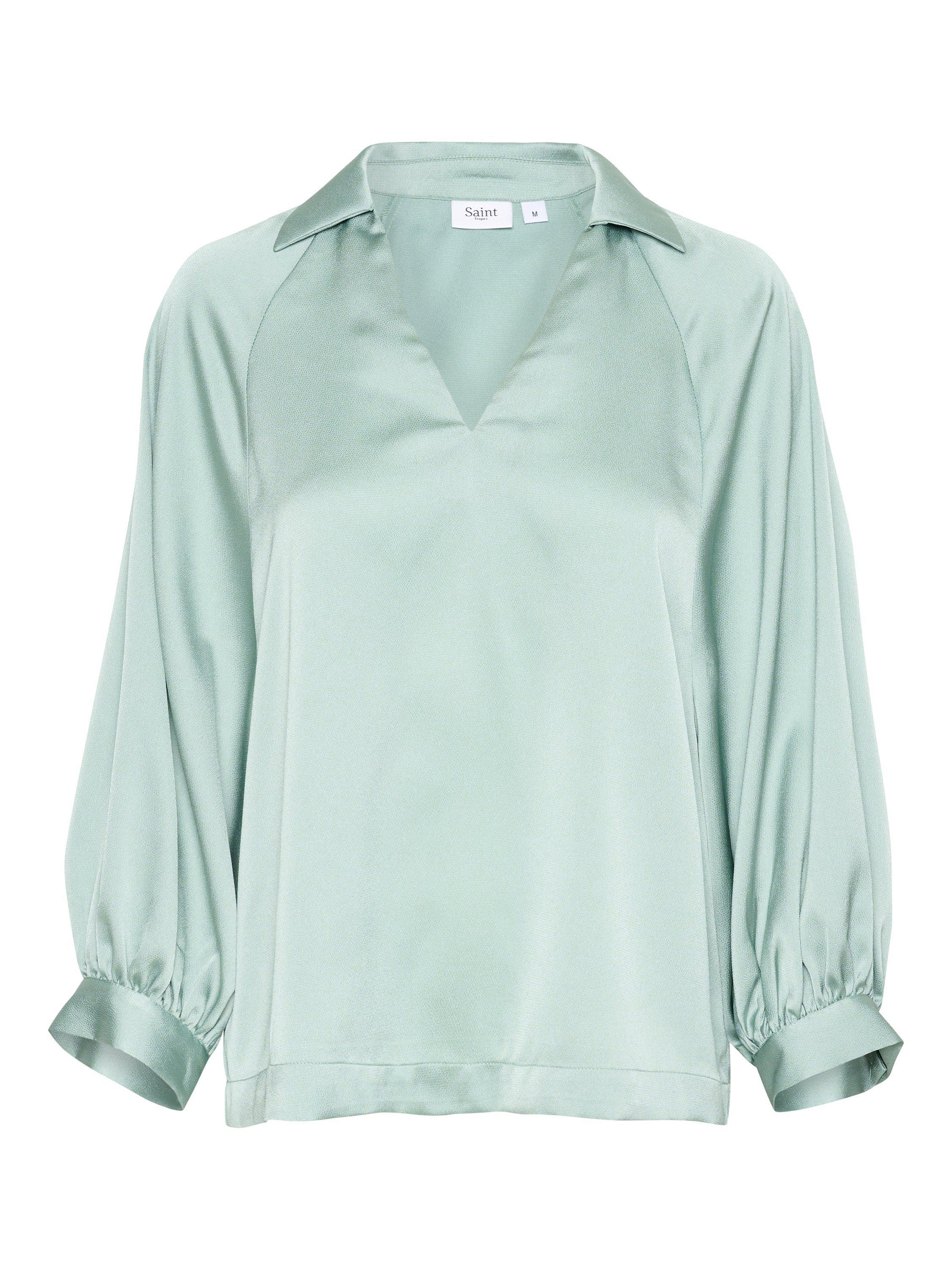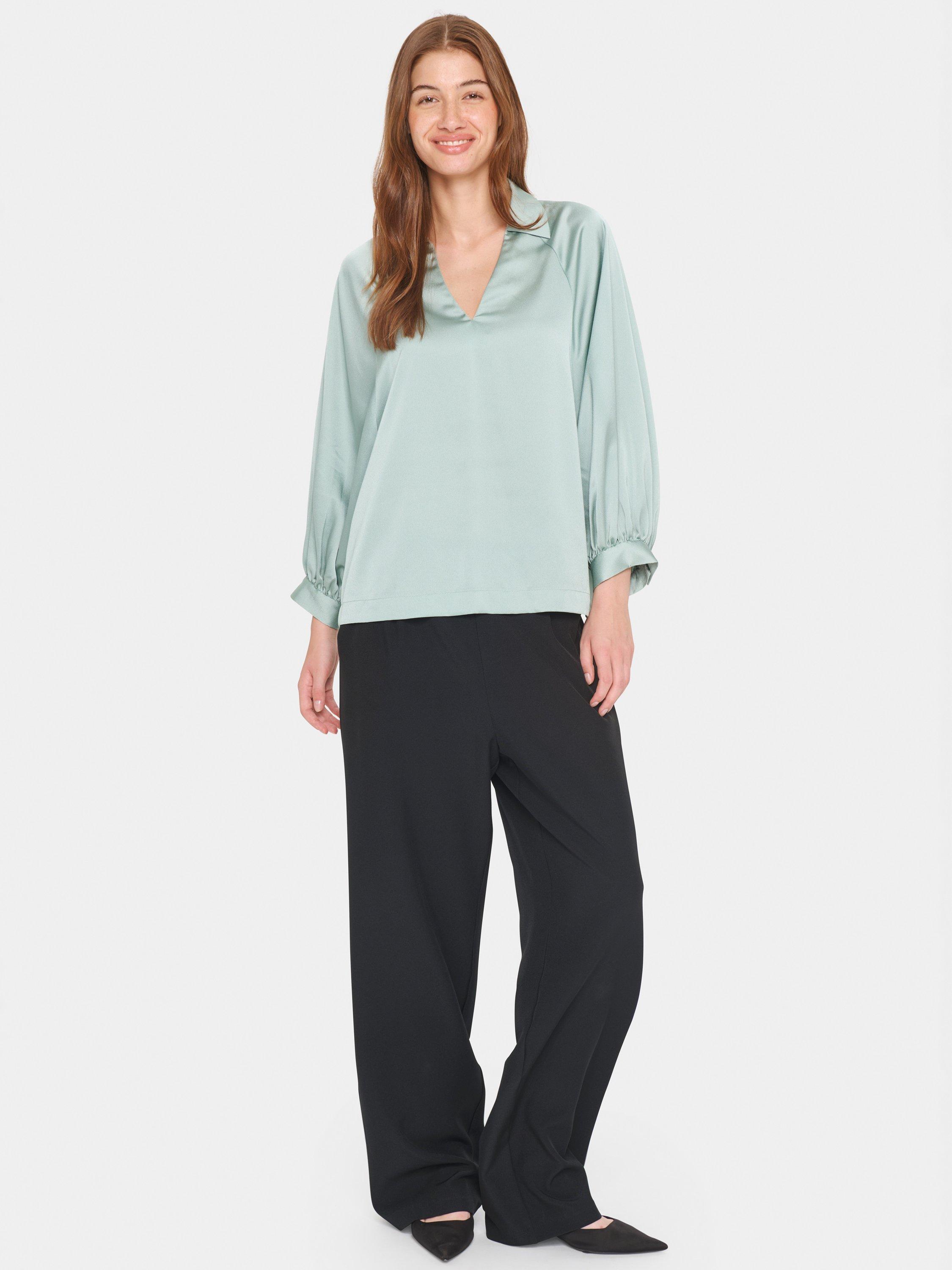 An essential addition to your wardrobe, this blouse from Saint Tropez is plain for easy mixing and matching. Framed with a v-neckline Johnny collar and cropped raglan sleeves gathered in loose, buttoned cuffs, it will look great with all kinds of separates.