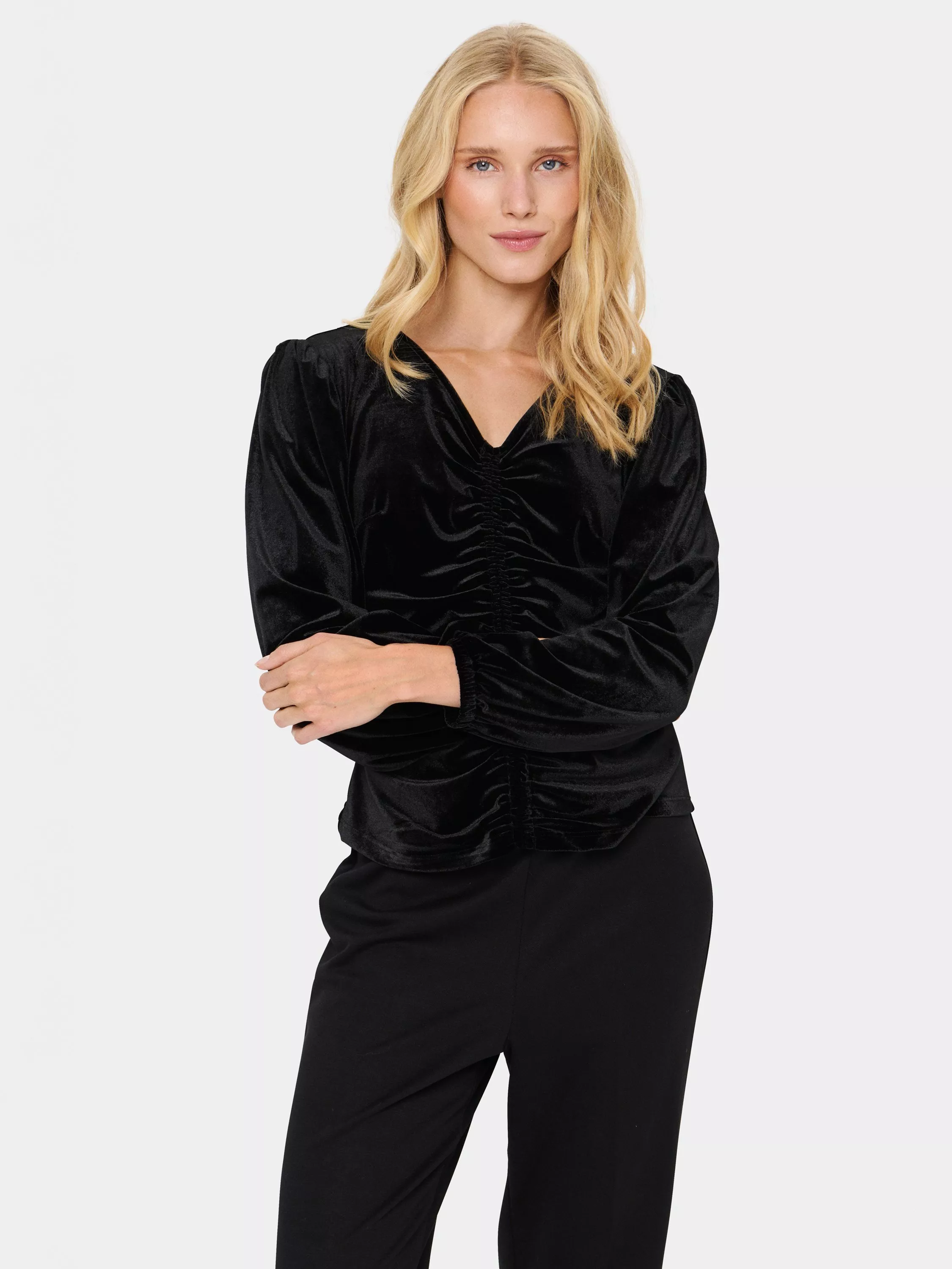 An effortless choice, this blouse from Saint Tropez is cut with a ruched v-neck, long sleeves and is made in a soft velvet fabric.
