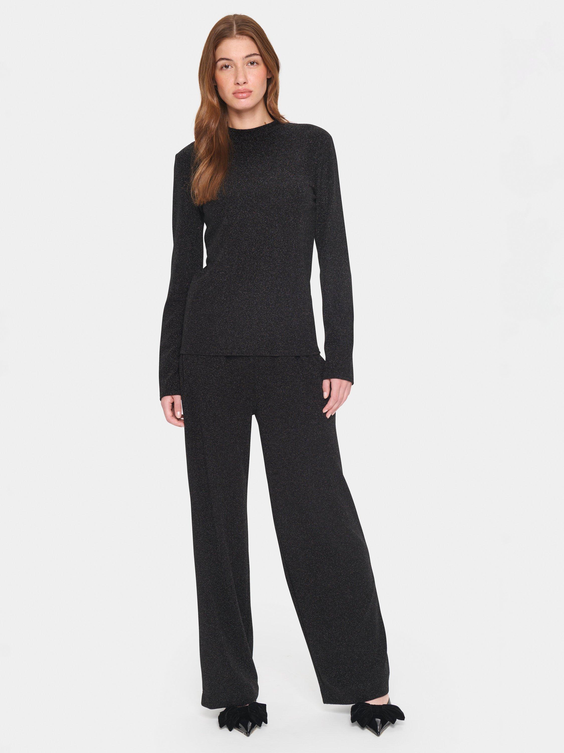 The Huma blouse is a simple and versatile top, and the perfect way to add a little sparkle to your outfit. It has a high neck with button fastening at the back, and it is made in a soft and glittery fabric. The sleeves are long, and the blouse has a slim fit and is cut at the hips.