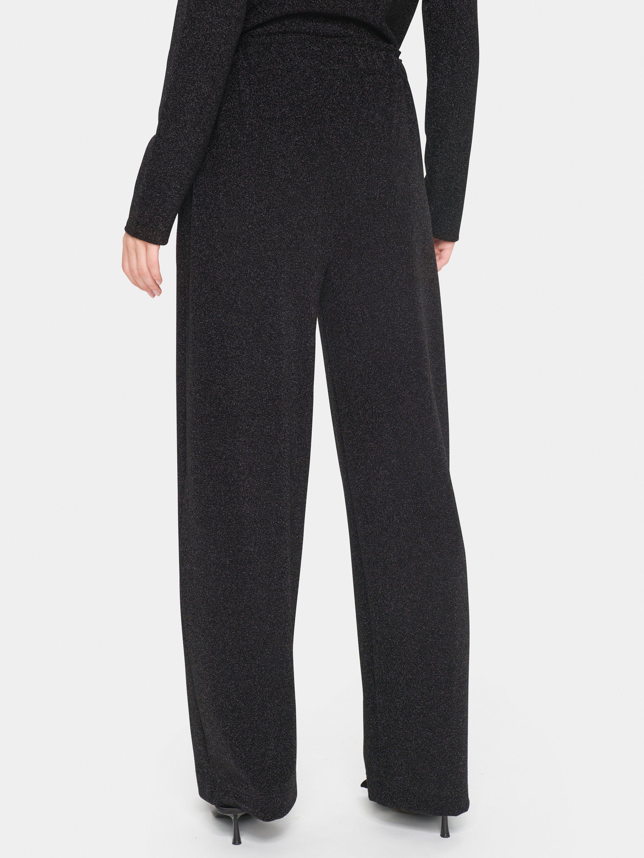 The Huma trousers are a sparkly and versatile pair of trousers, that will brigthen up any kind of top. They are high-waisted with an elastic waistband, and they are made in a sparkly and stretchy fabric. The trousers have a regular fit with straight legs, and they are full-length.