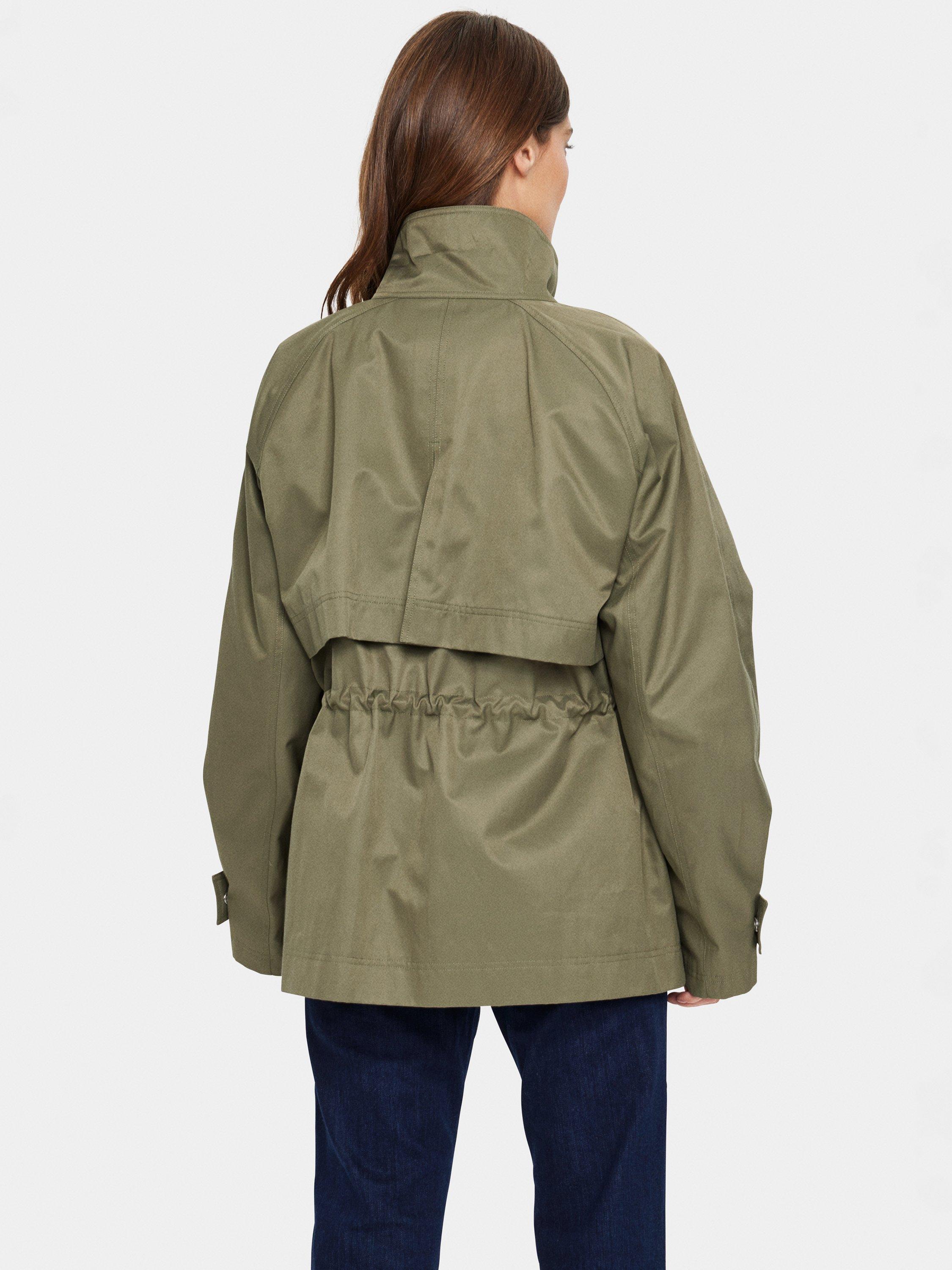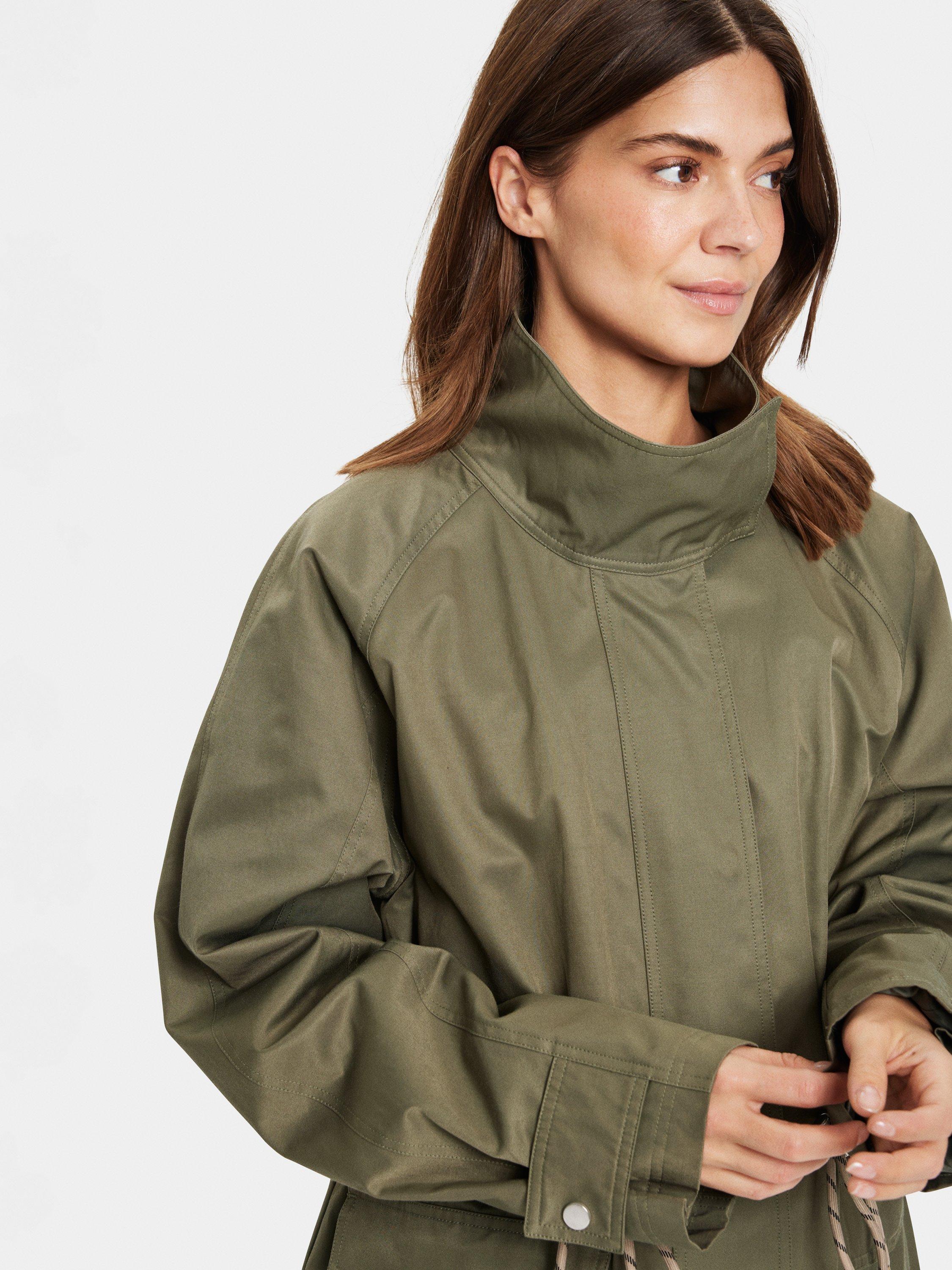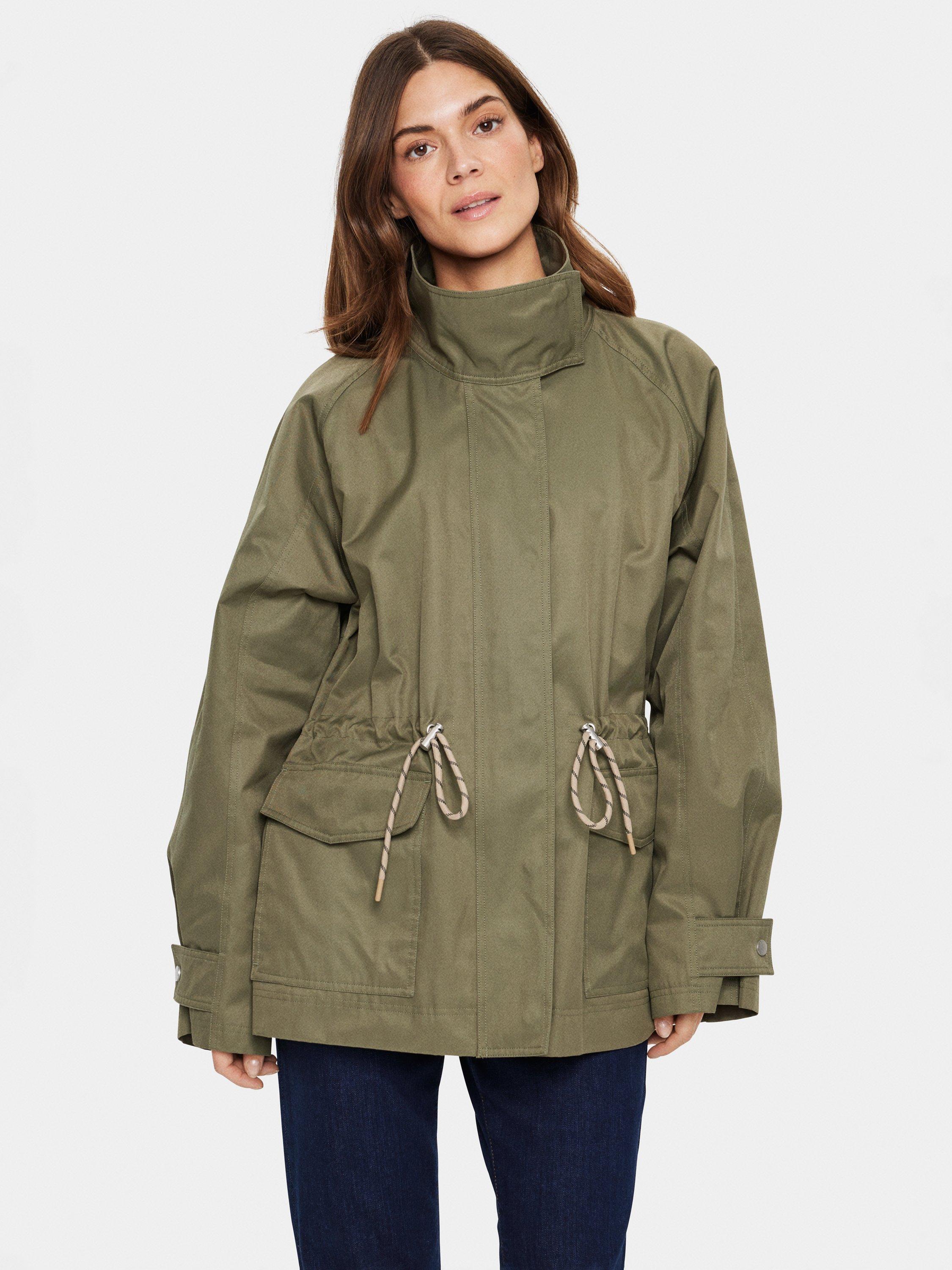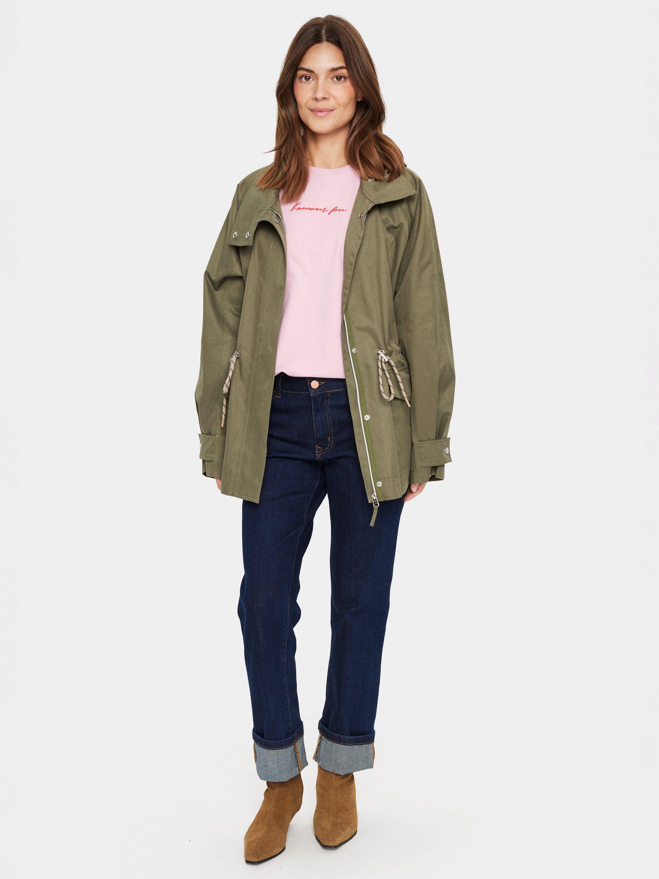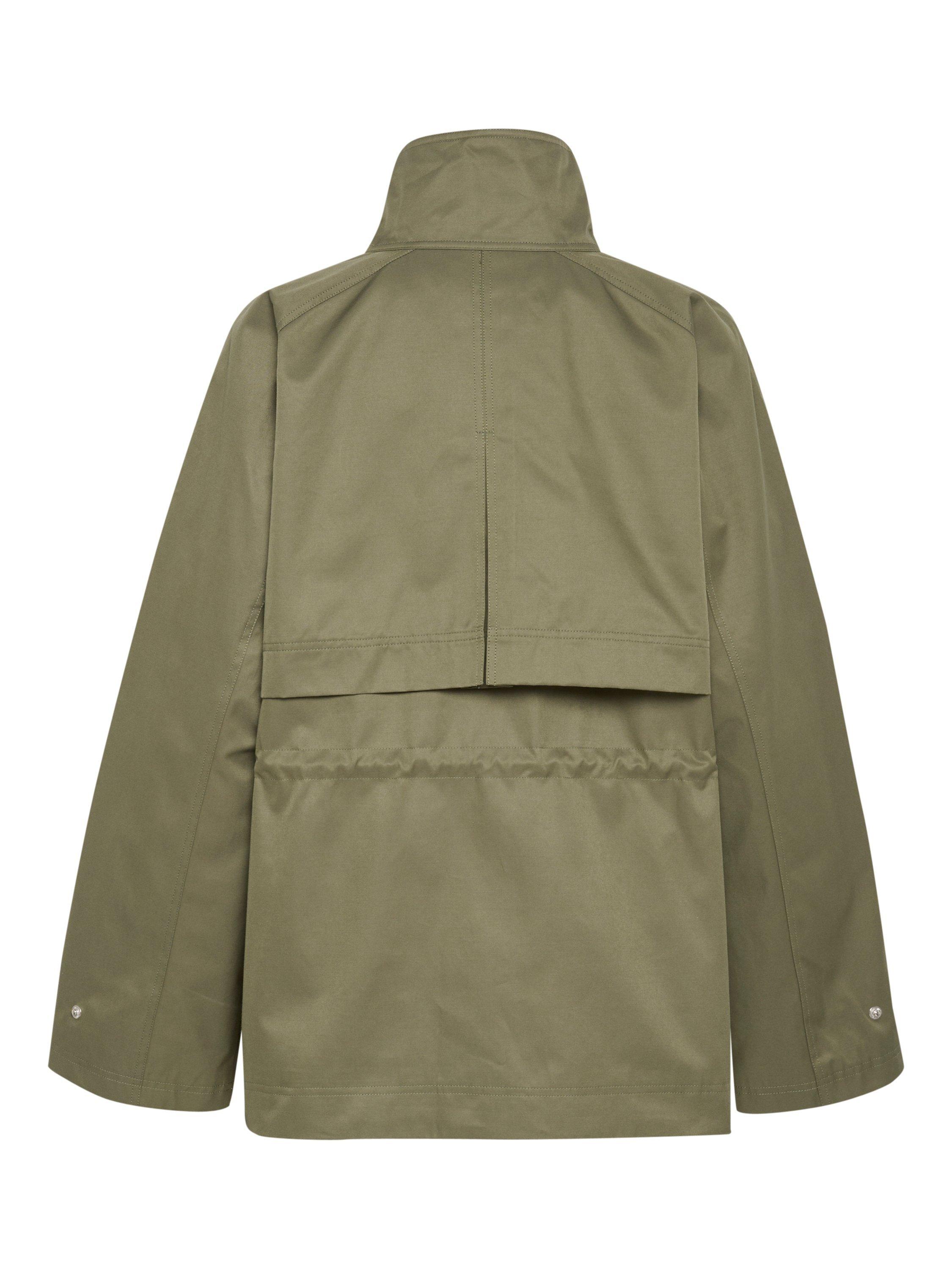 The Idris parka jacket is a cool and practical piece of outerwear - perfect for your everyday wardrobe. It has a high collar and zipper fastening, and it has a regular fit with a drawstring waist. The sleeves are long and wide raglan sleeves, and the jacket has a windflap at the back and is cut right below the hips.