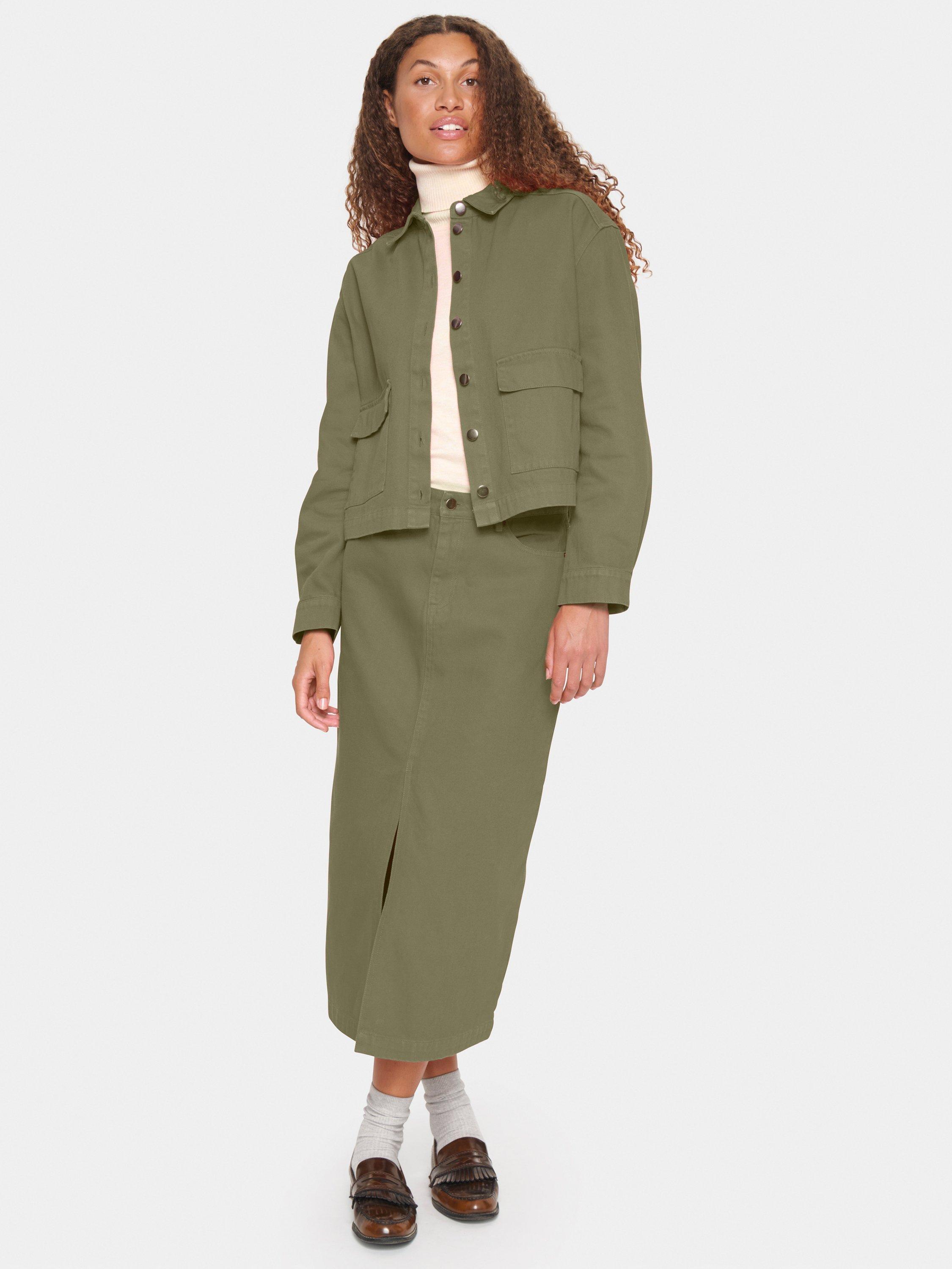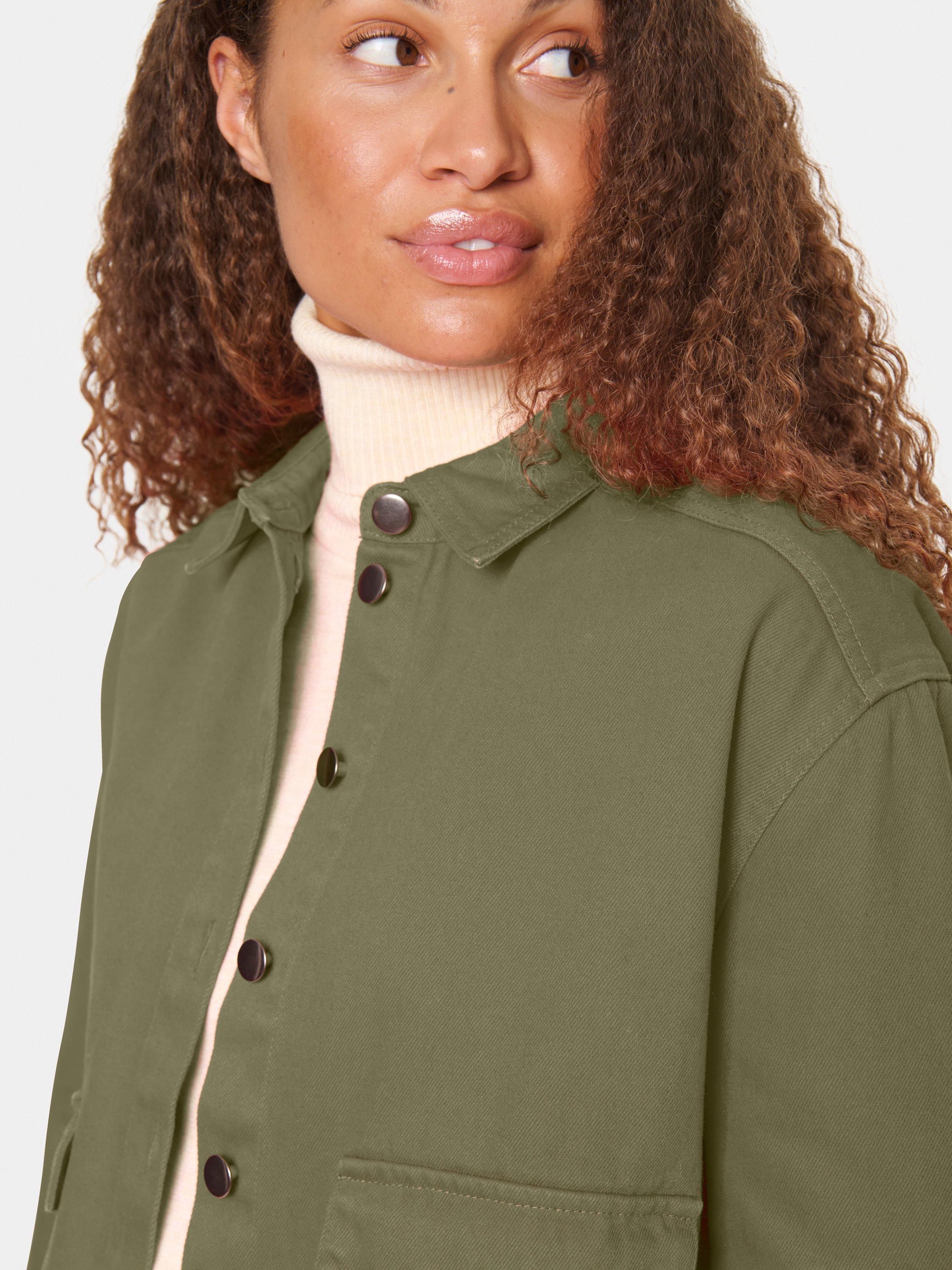 The Ilu denim jacket is a casual piece of outerwear and a must-have item in any wardrobe. It has a spread collar and button fastening, and it has a boxy fit and is cut above the hips. The sleeves are long with buttoned cuffs, and the jacket has patch front pockets with flaps.