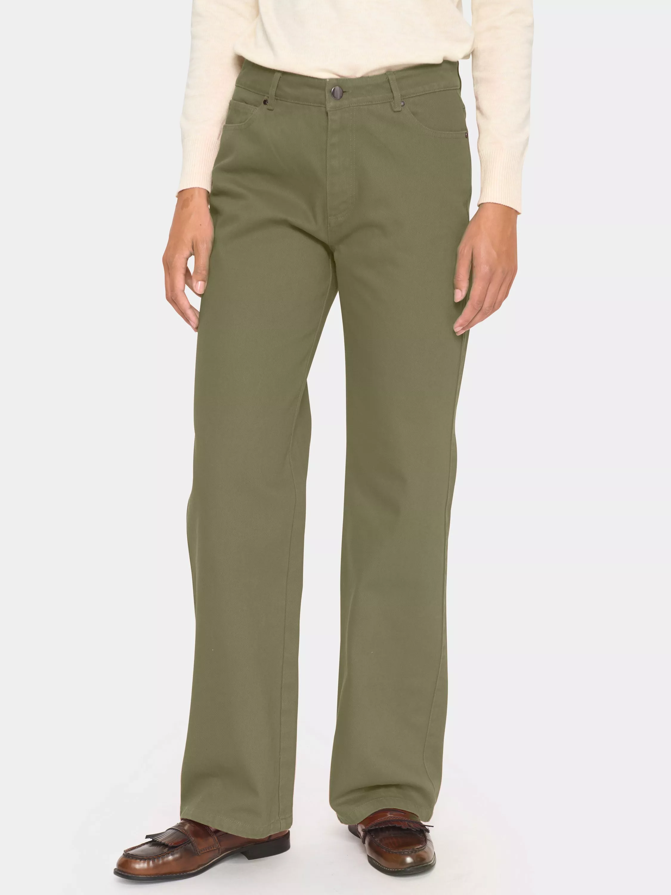The Ilu jeans are a simple pair of dyed jeans, and a must-have item in any wardrobe. They are high-waisted with a regular waistband and zip and button fastening, and they have a regular fit. The legs are wide, and the jeans have rounded front pockets with a coin pocket and patch back pockets.