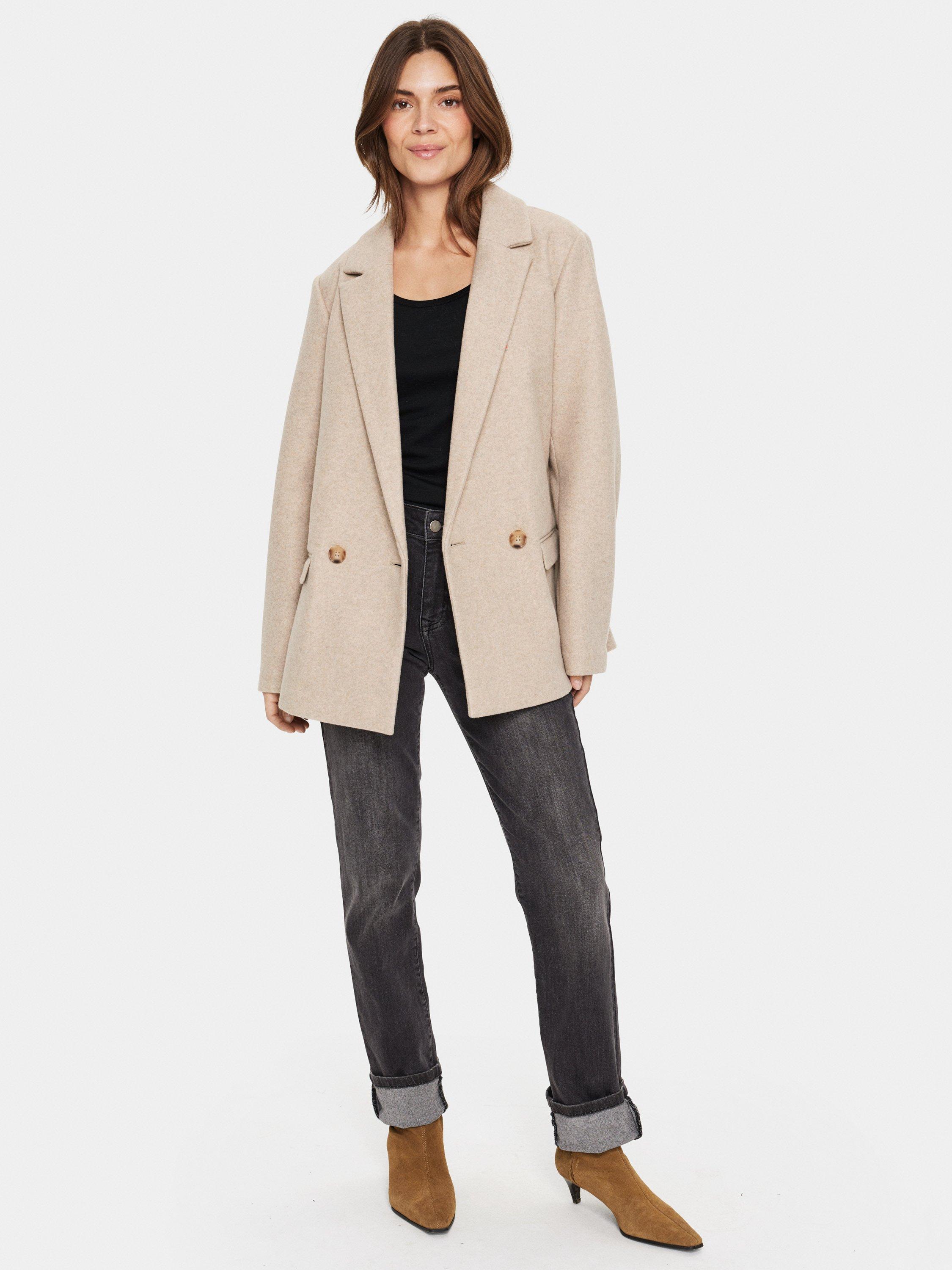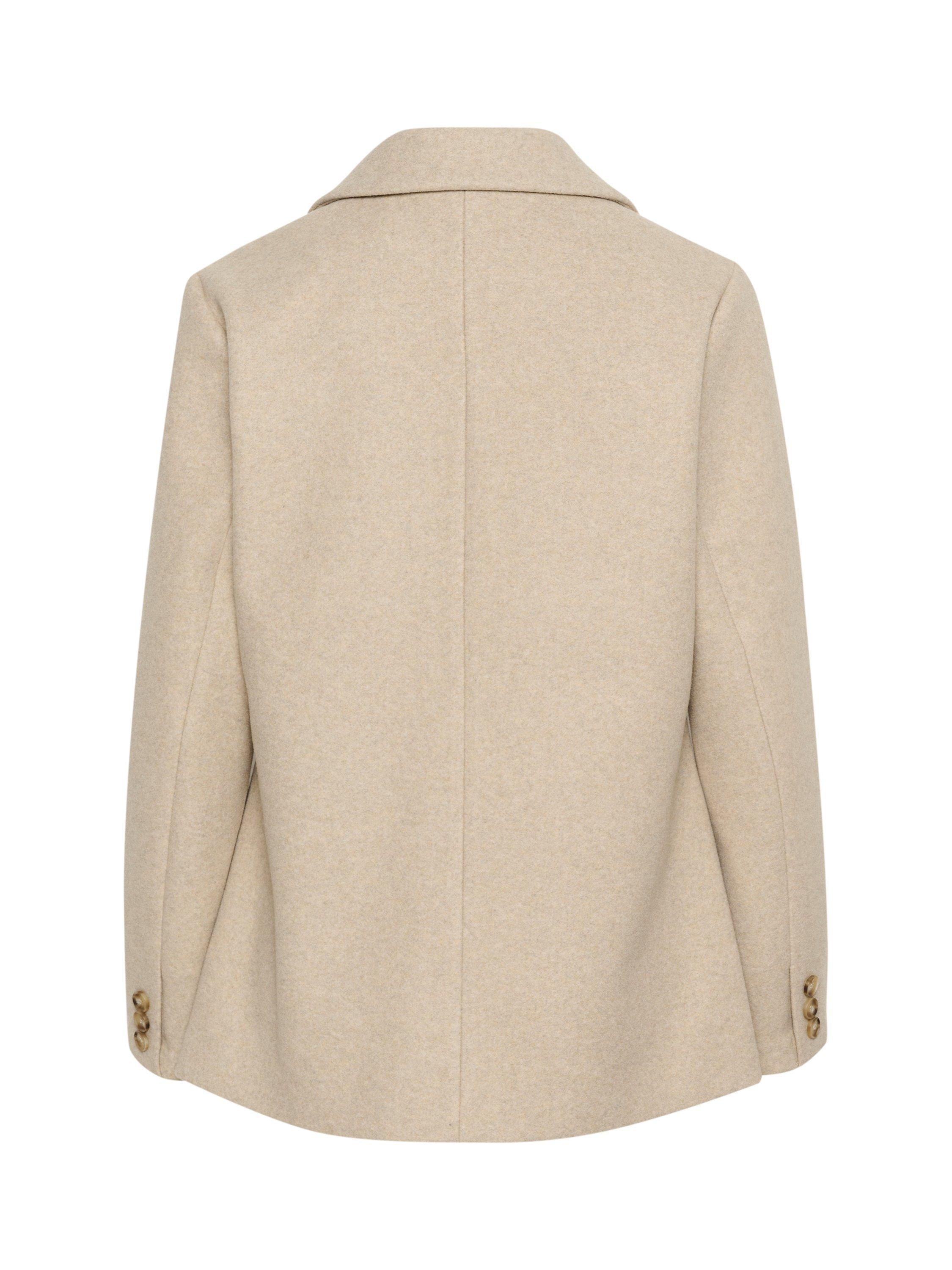 The Ilvy jacket is a warm and stylish blazer, that will elevate any outfit. It is double-breasted with a notch lapel and one set of buttons, and it has a regular fit. The sleeves are long with buttoned slits, and the jacket has flap pockets and is cut right below the hips.
