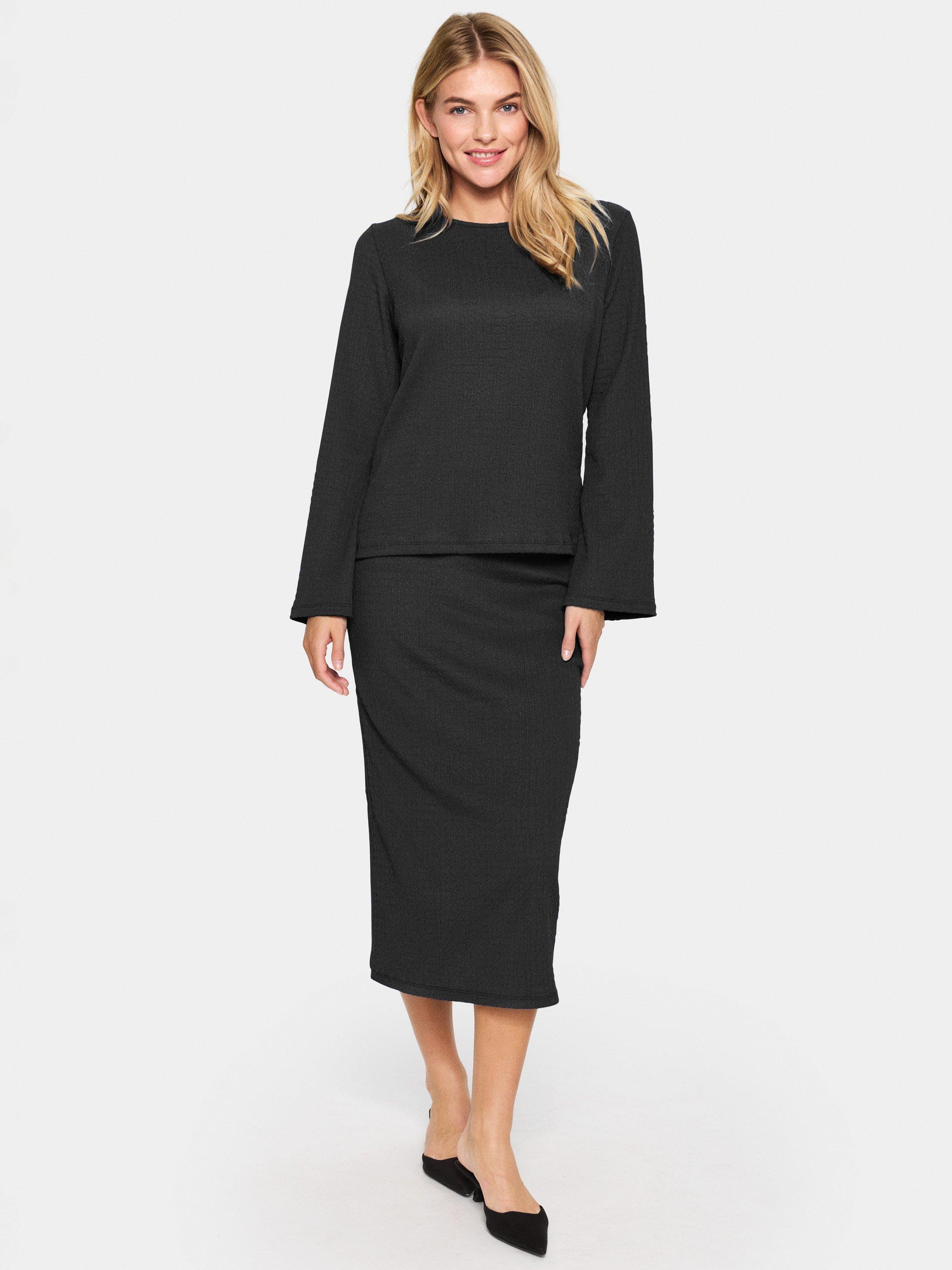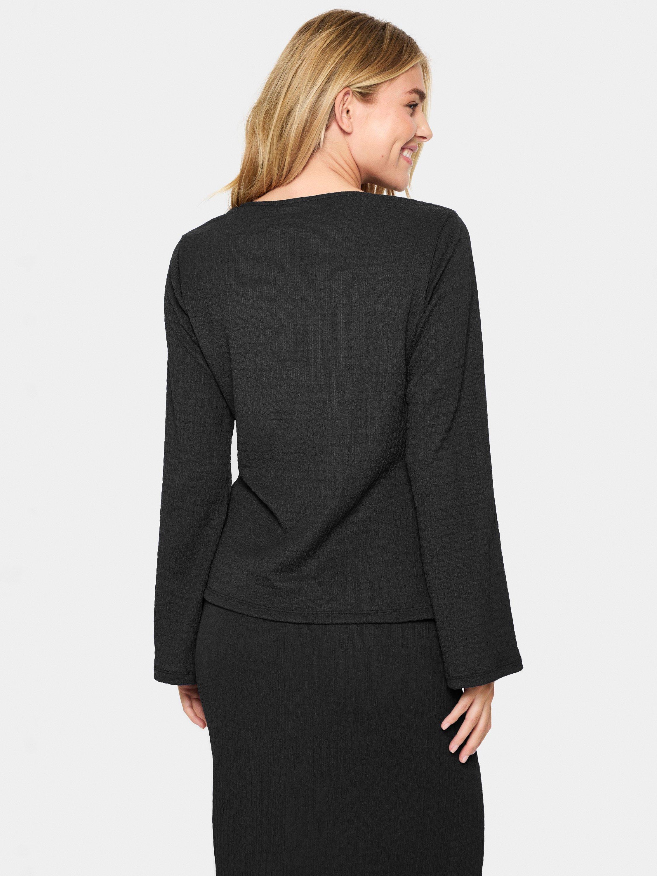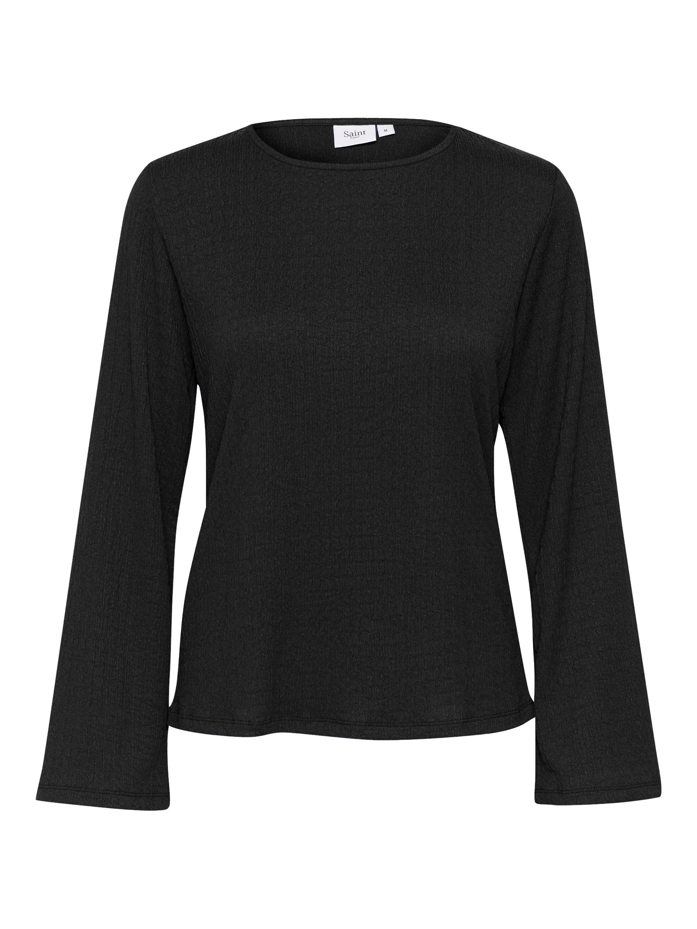 The Ilyssa blouse is a cute and versatile jersey top, that you can wear with anything. It has a round neck and a regular fit, and it is cut at the hips. The sleeves are long, and they have a flared fit.