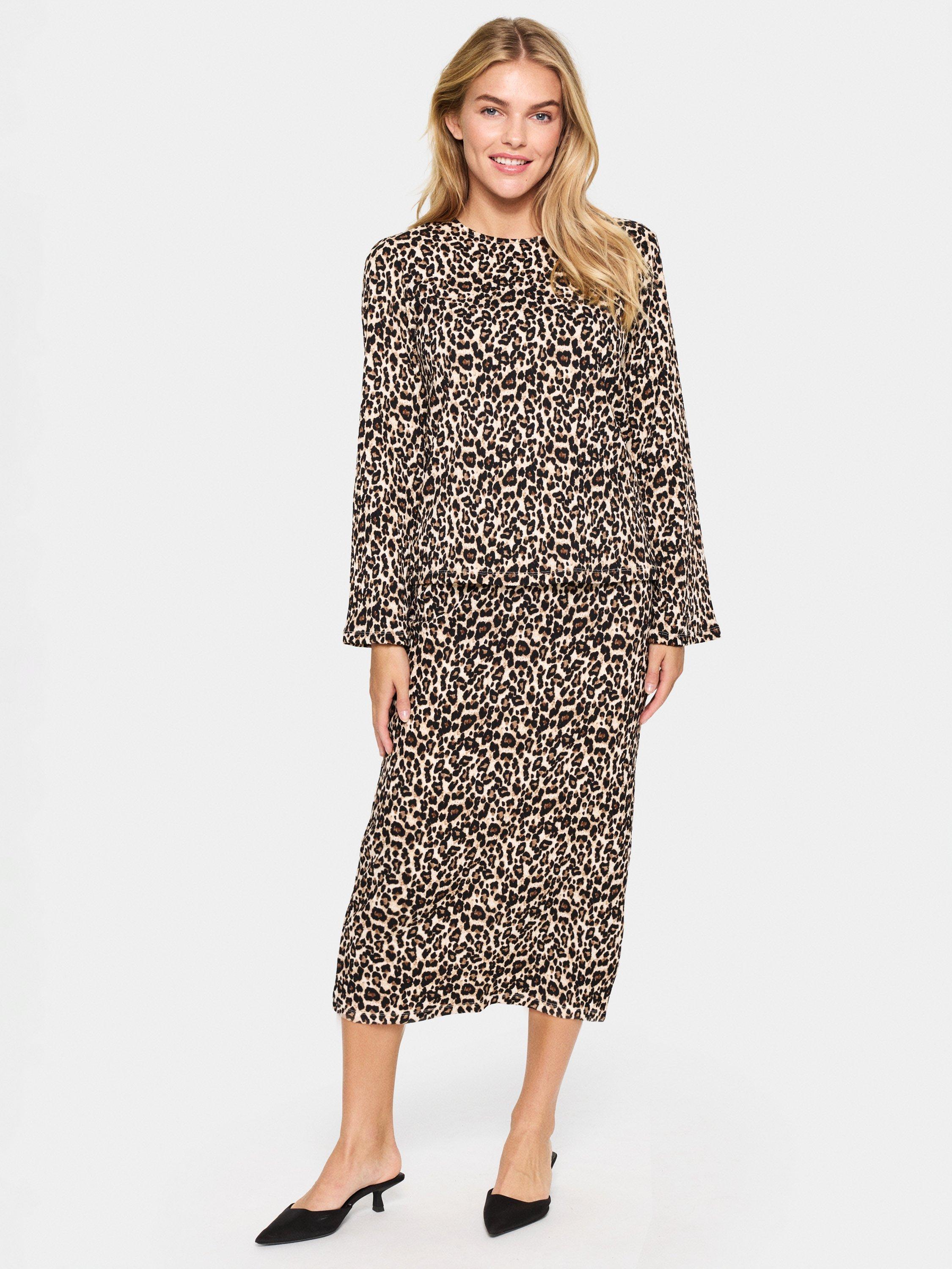 The Ilyssa blouse is a cute and versatile jersey top, that you can wear with anything. It has a round neck and a regular fit, and it is cut at the hips. The sleeves are long, and they have a flared fit.