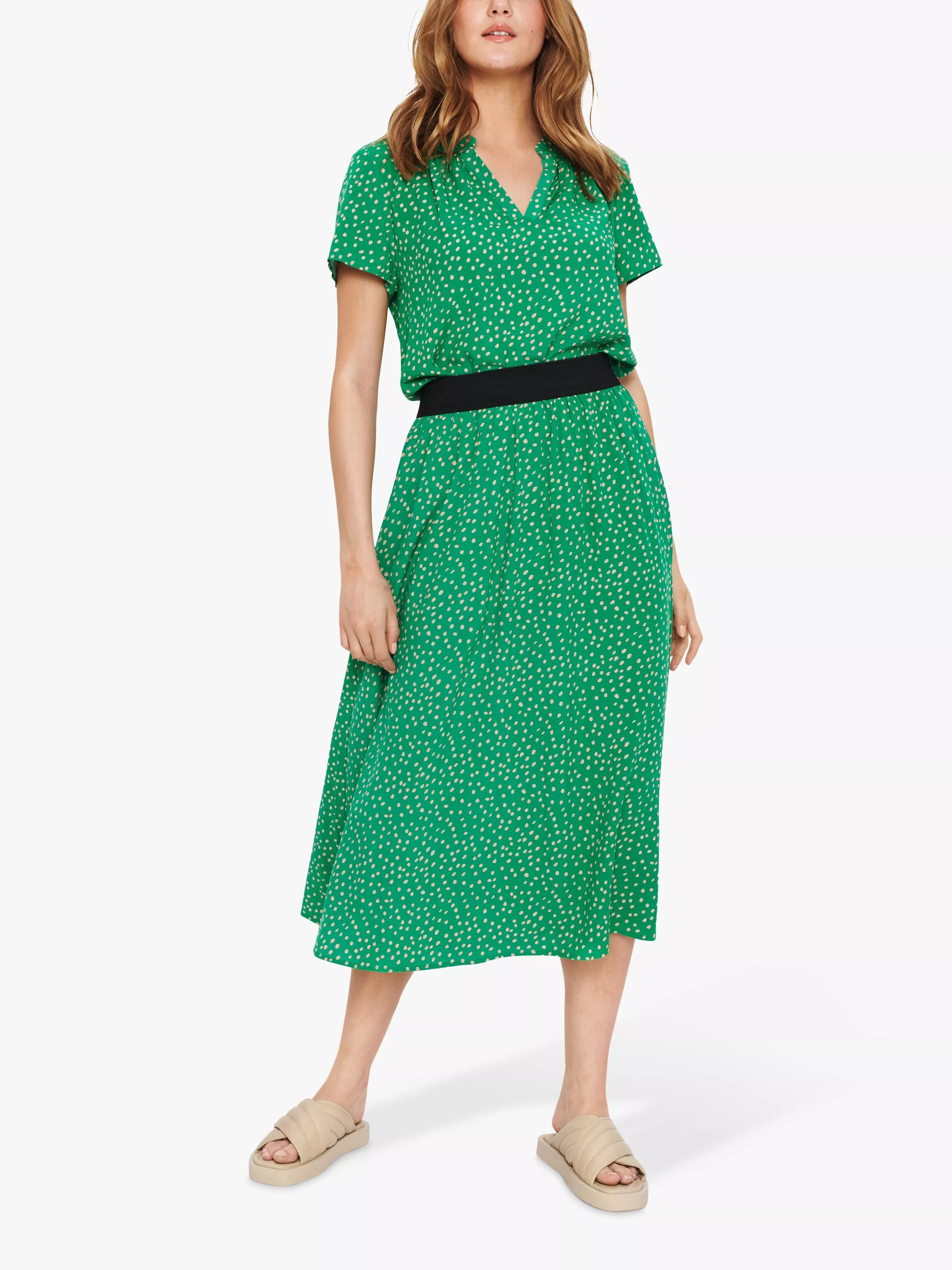A classic flared shape, this midi skirt by Saint Tropez is drenched with season-less spots.