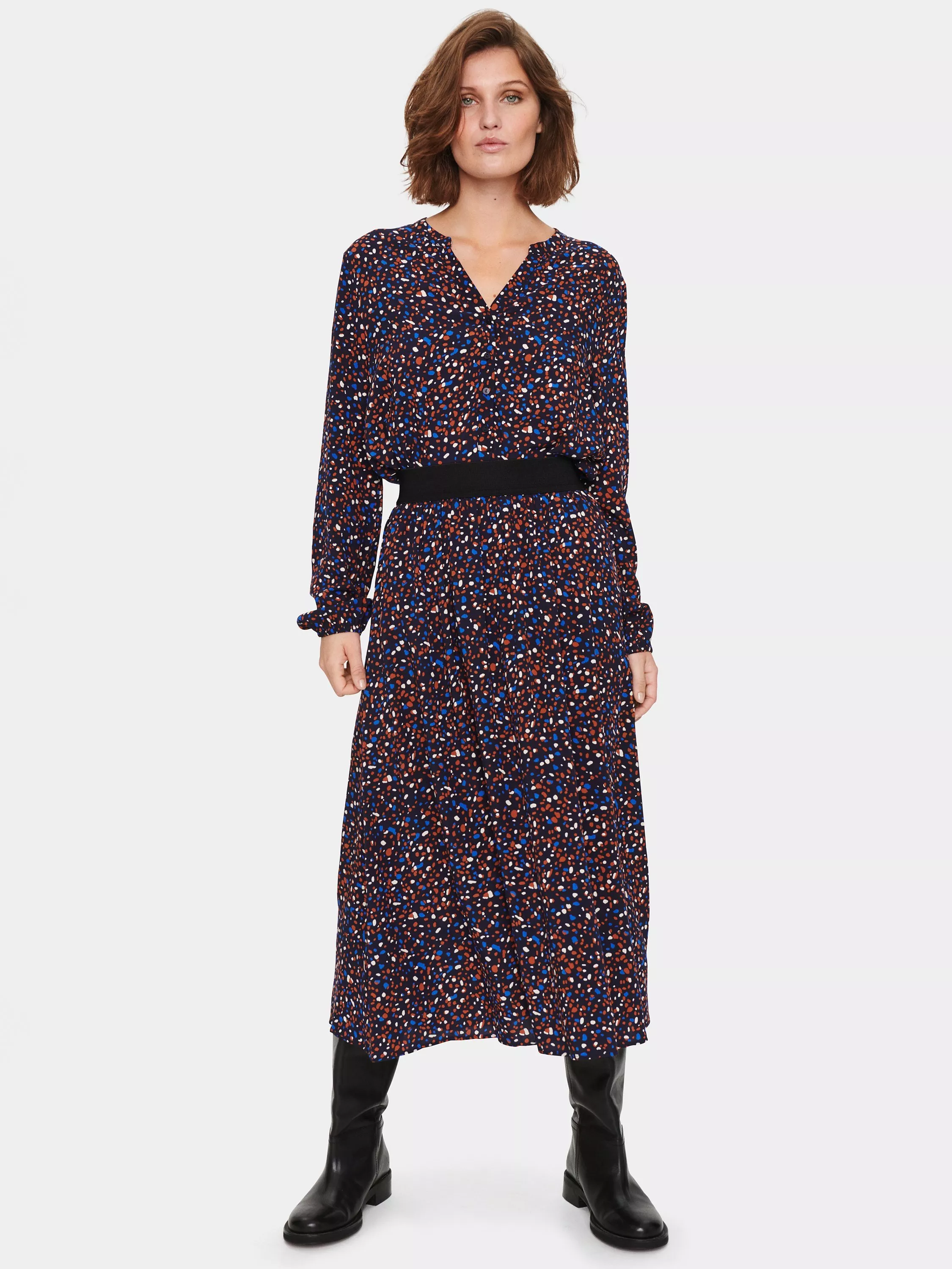 A classic flared shape, this midi skirt by Saint Tropez is drenched with season-less spots.