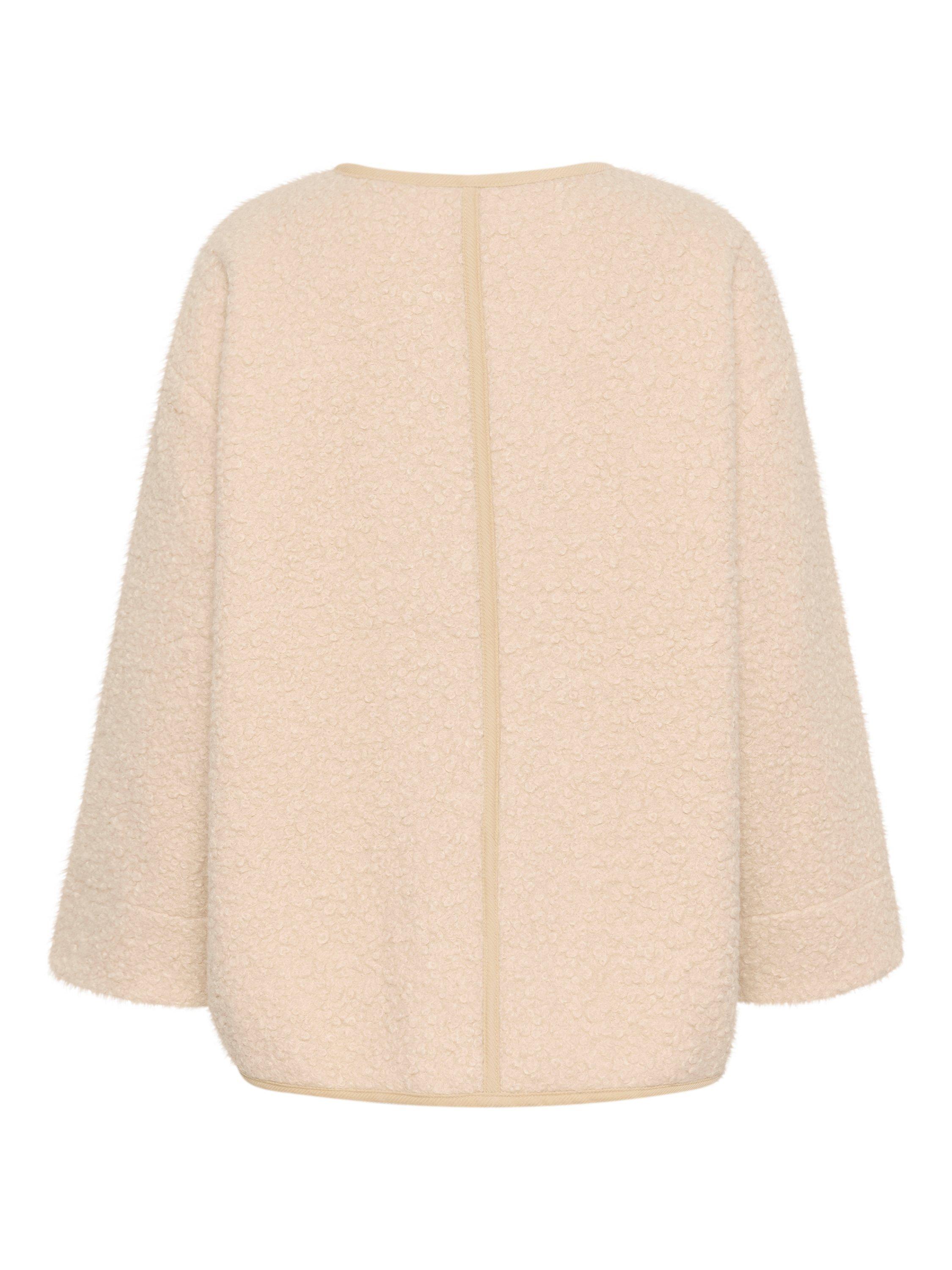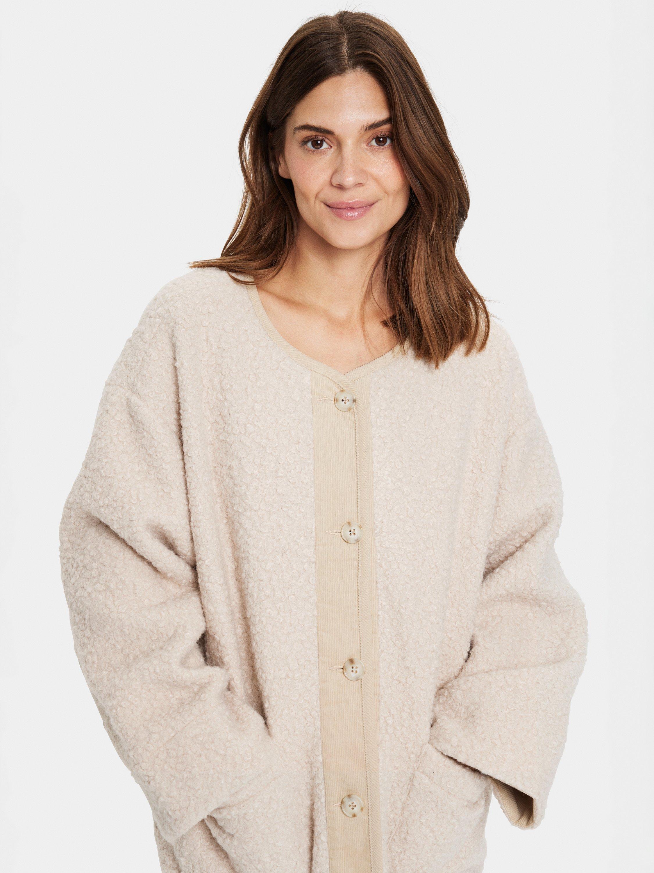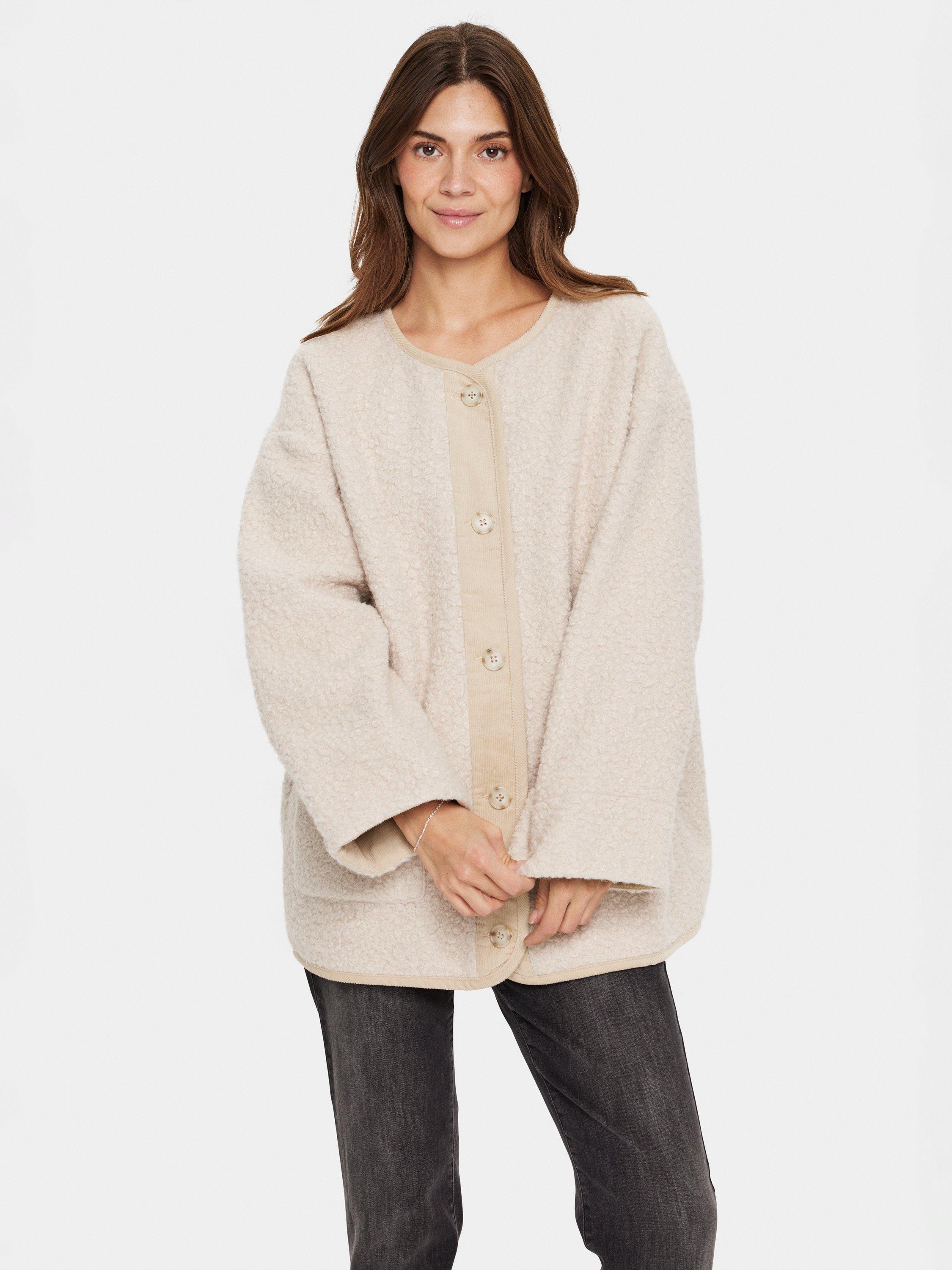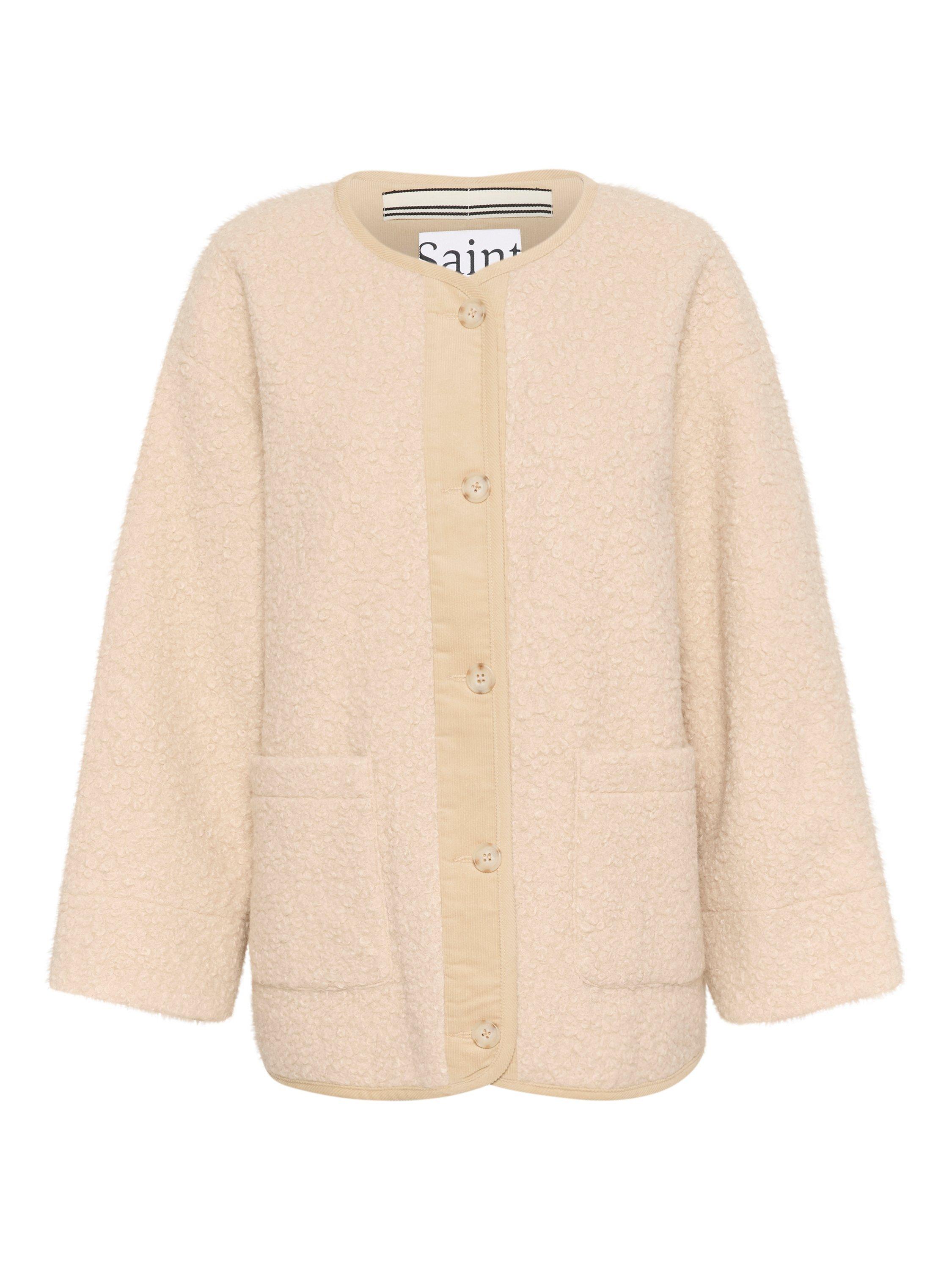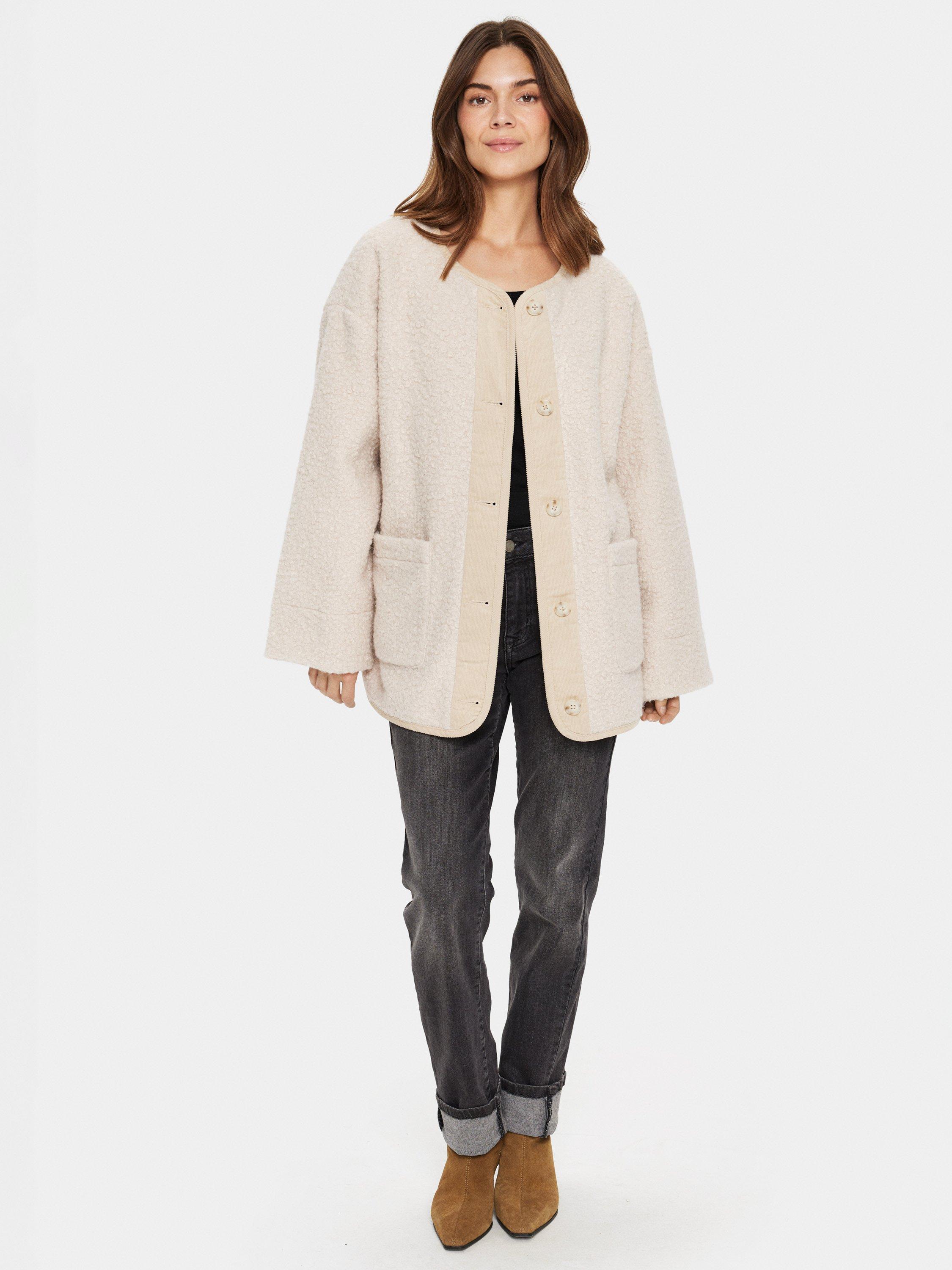 The Inley jacket is a casual and cute piece of outerwear, that will make any outfit feel cosy. It has a round neck and button fastening, and it is made in a soft teddy fabric. The jacket has a casual fit with wide shoulders, and it has long, wide sleeves and patch front pockets.