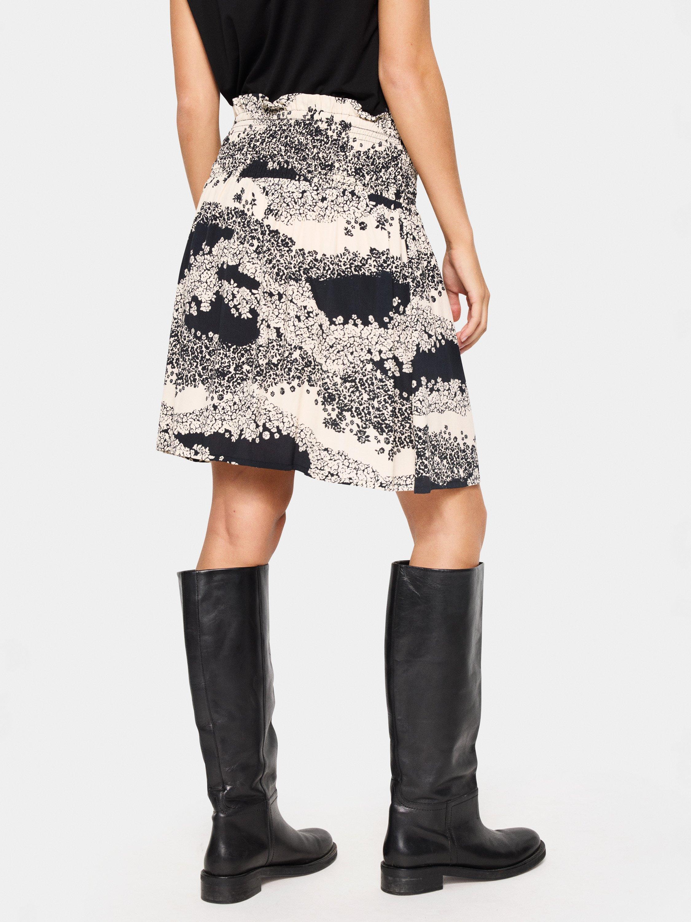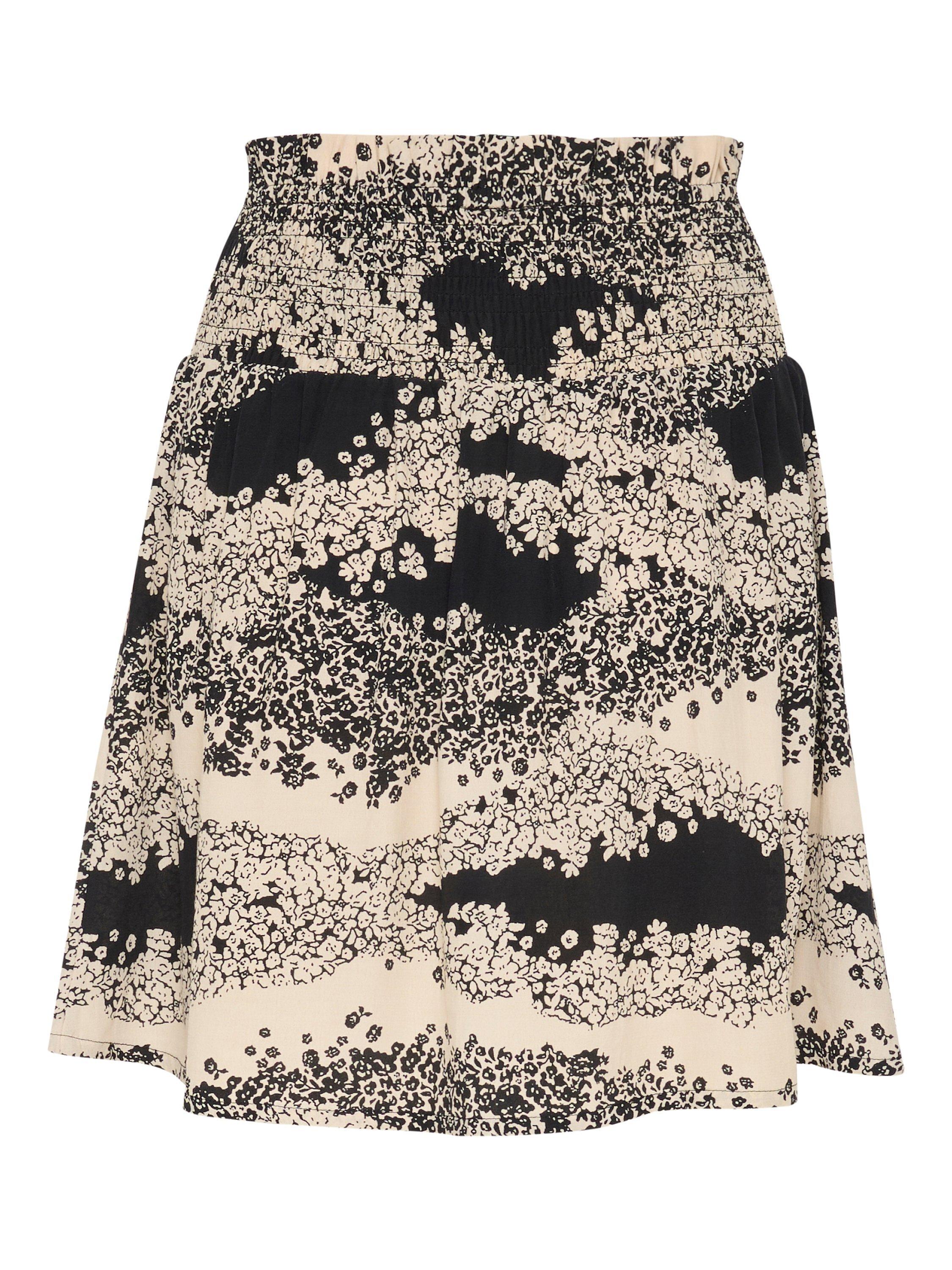 The Iselin skirt is a casual and fun style made in a beautiful print. It is high-waisted with a wide, elastic smock waist, and it has an A-line fit. The skirt is cut at the mid-thigh, and it is a great match with a simple top or Tee.