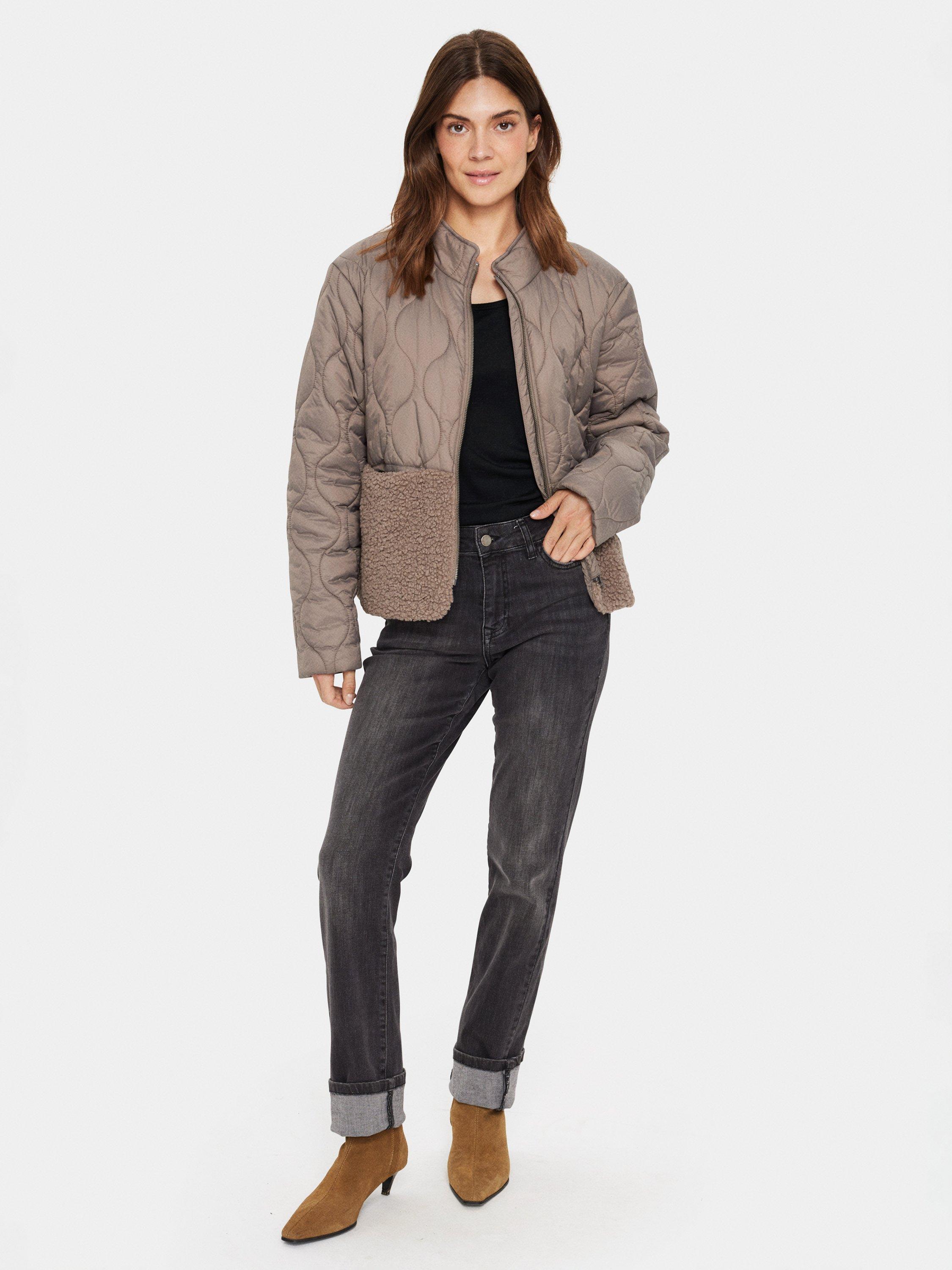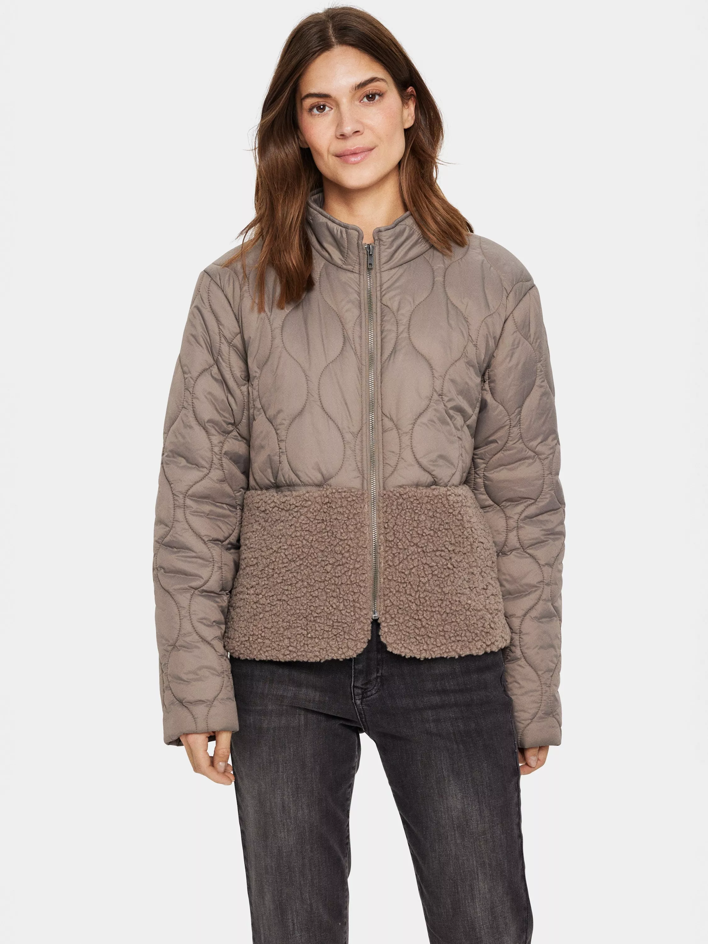 The Isodora jacket is a casual piece of outerwear, that will make you feel cosy all day long. It has a high neck and zipper fastening, and it has a regular fit and welted pockets. The top of the jacket is made in a lantern-patterned quilted fabric, and the bottom is made in a soft teddy fabric.