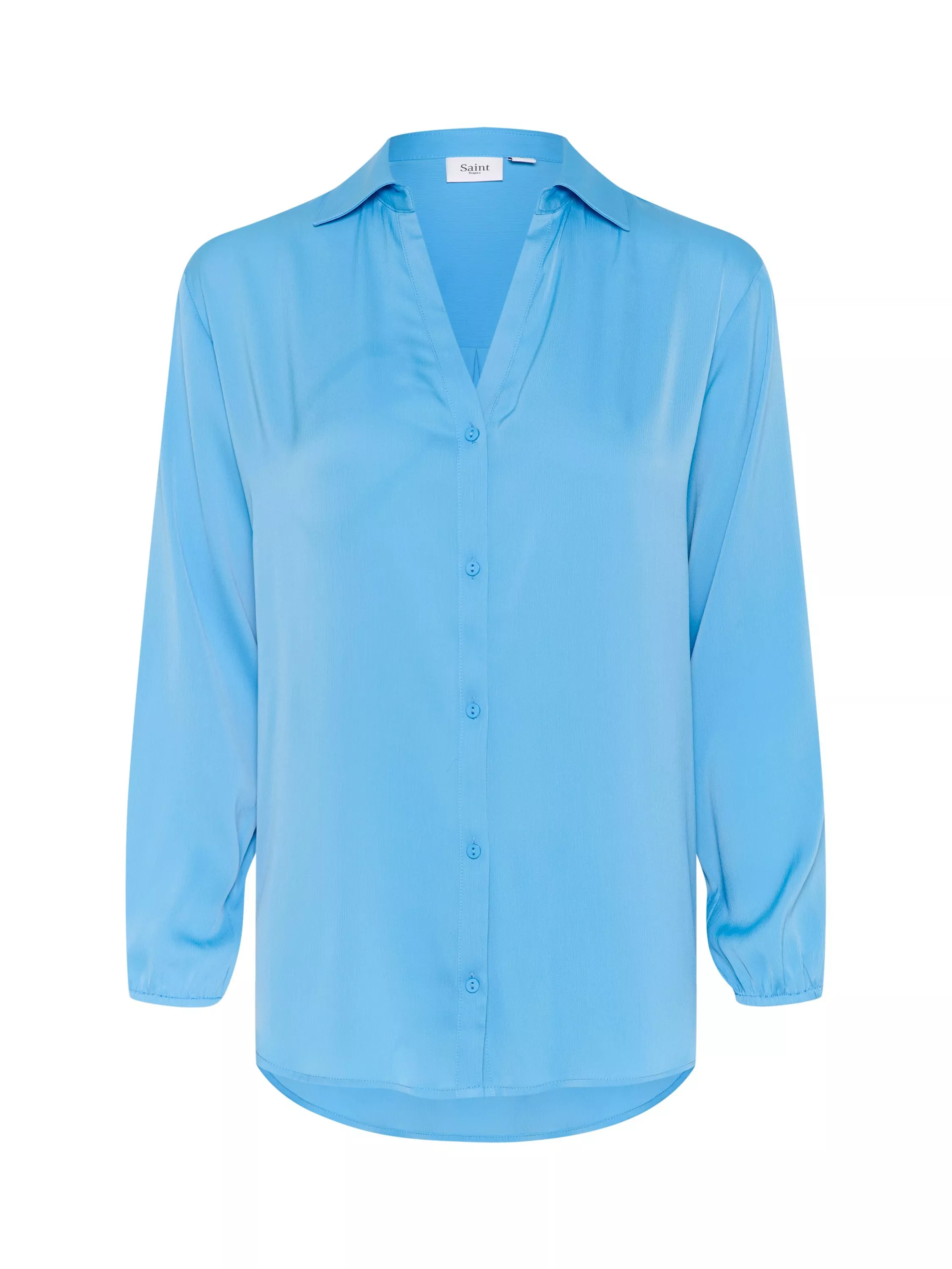 The Itina shirt is an elegant and versatile piece with endless styling options. It has a V-neck with a Johnny collar and button fastening, and it has a regular fit. The sleeves are long and loose-fitting with an elastic edge, and the shirt has a rounded hem.