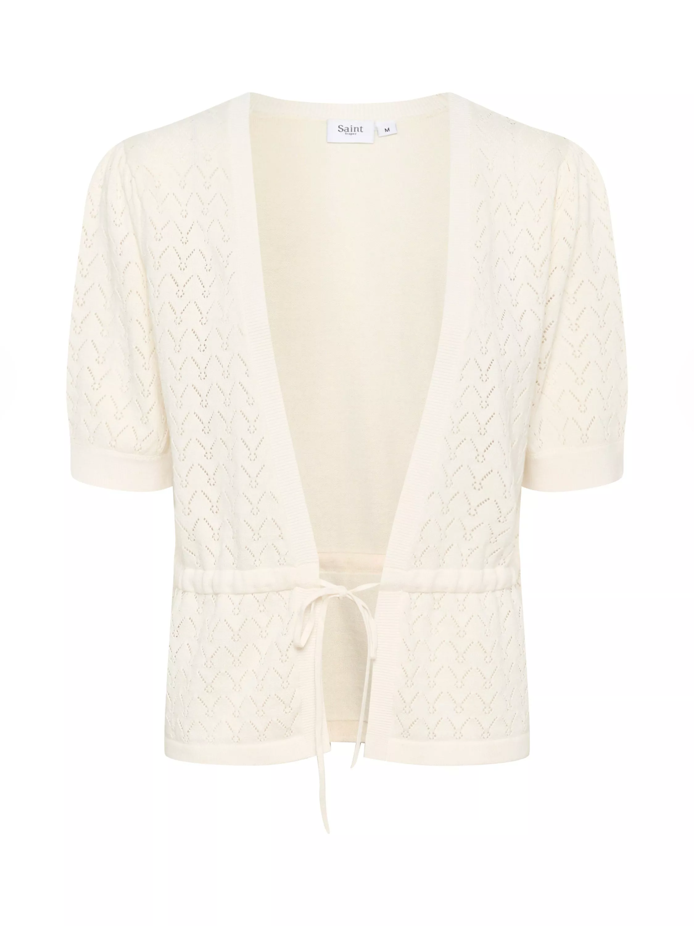 Slipping on for easy layering, this pointelle tie front cardigan from Saint Tropez is made of pure cotton for breathable all-day comfort.