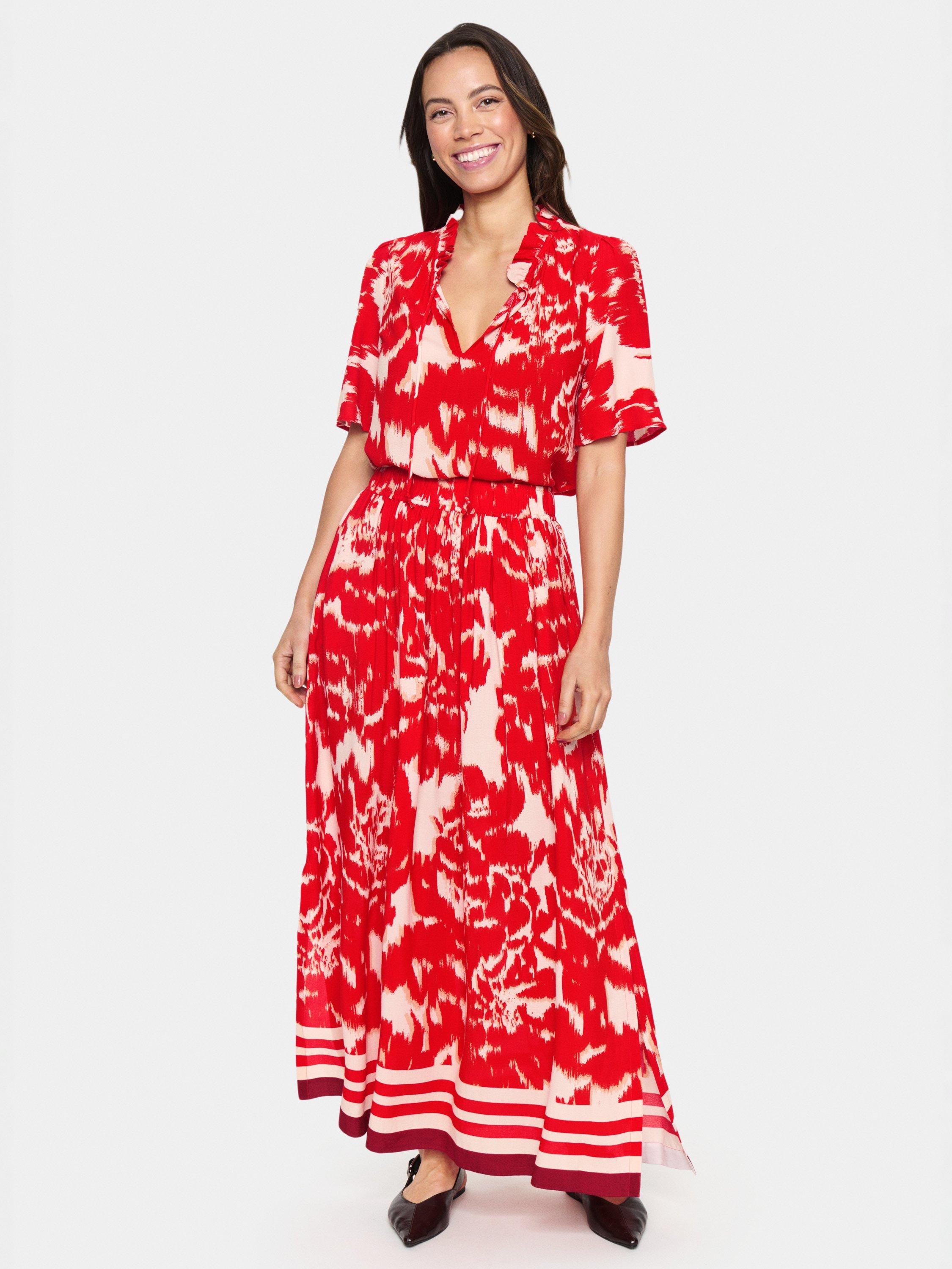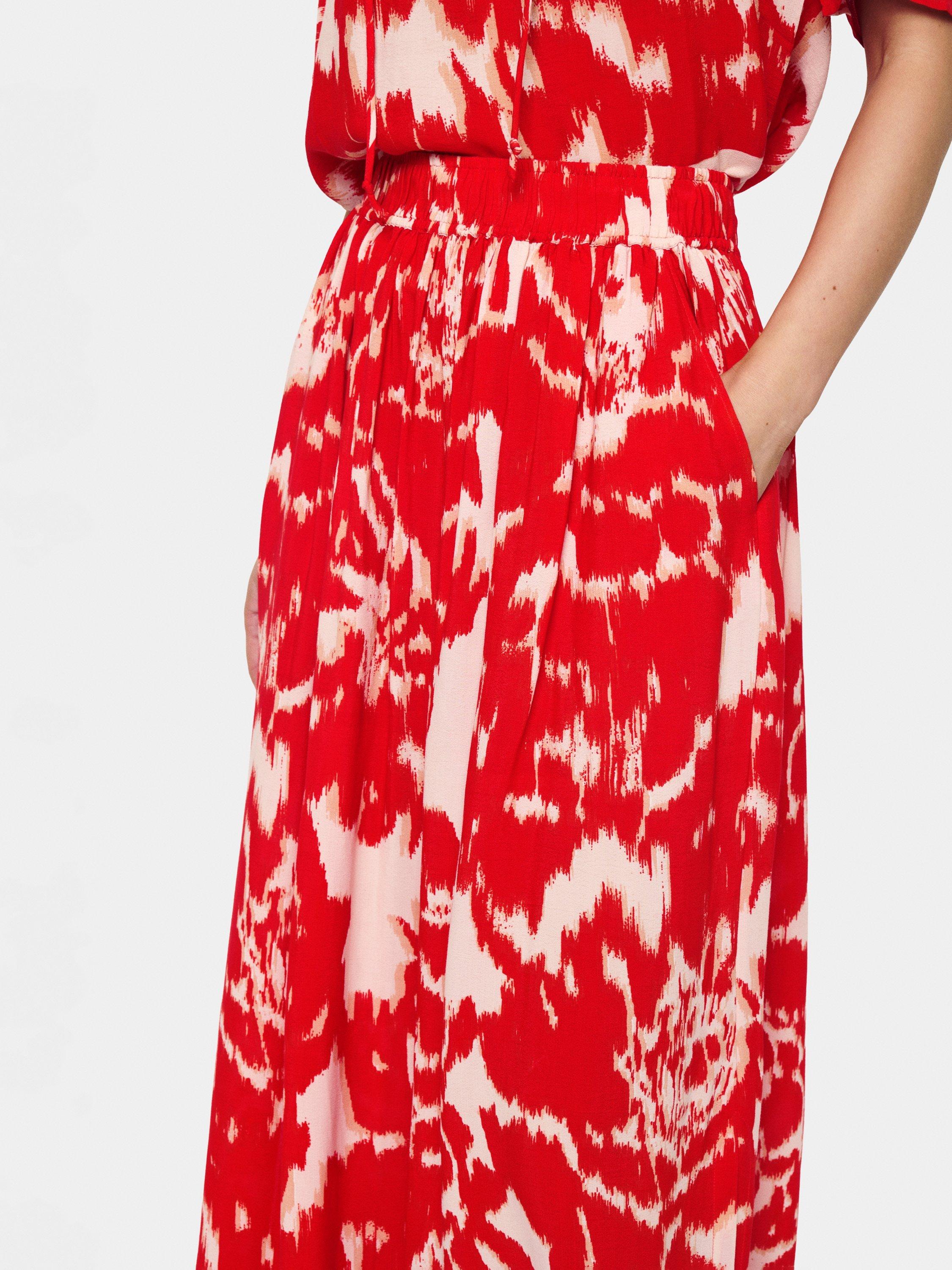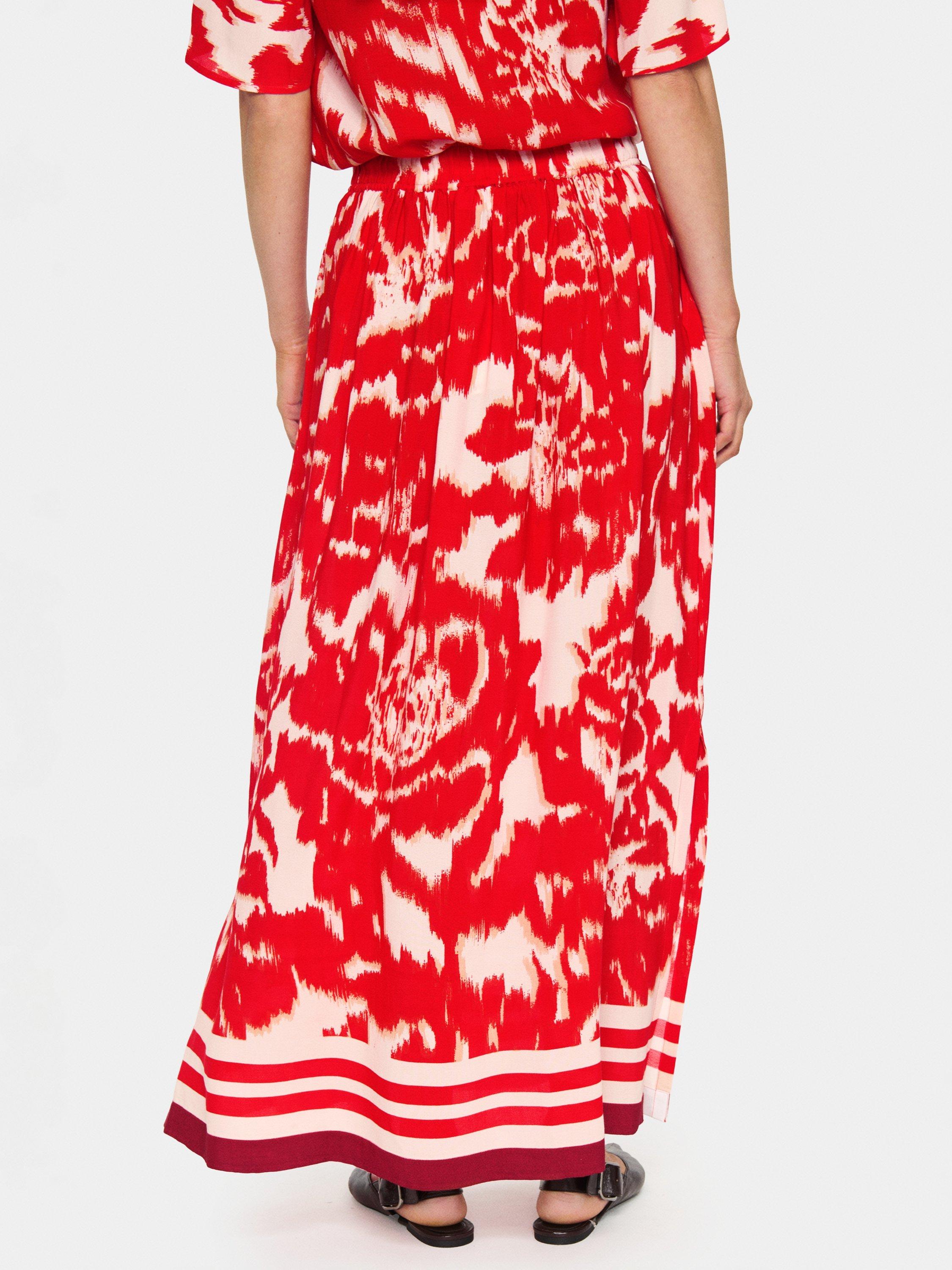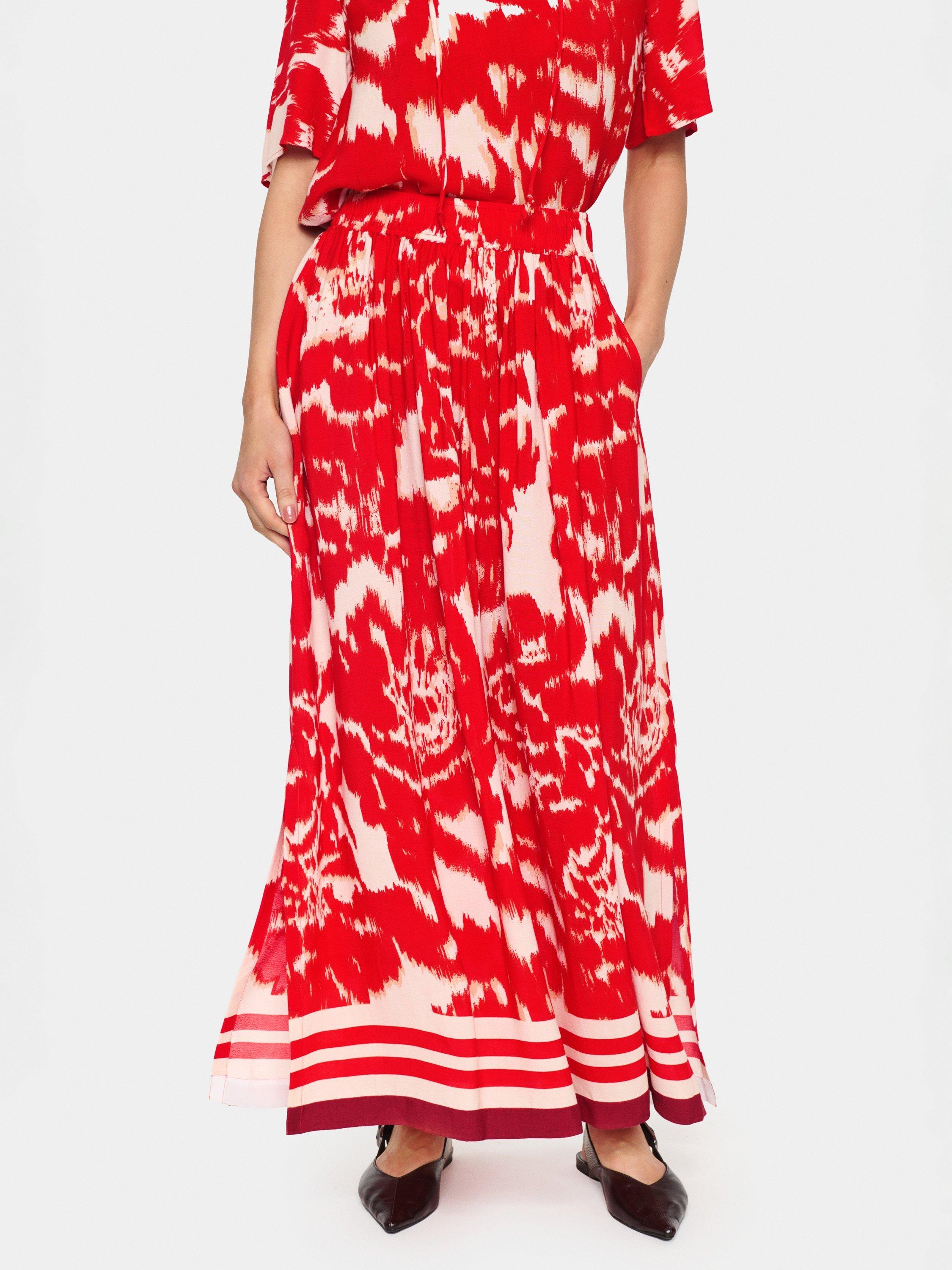 Juxtaposing a cinched waist with a flared silhouette, this maxi skirt from Saint Tropez is planted with abstract florals and features side seam pockets.